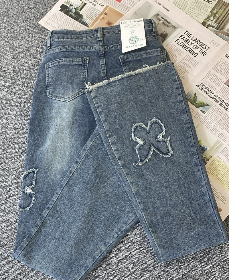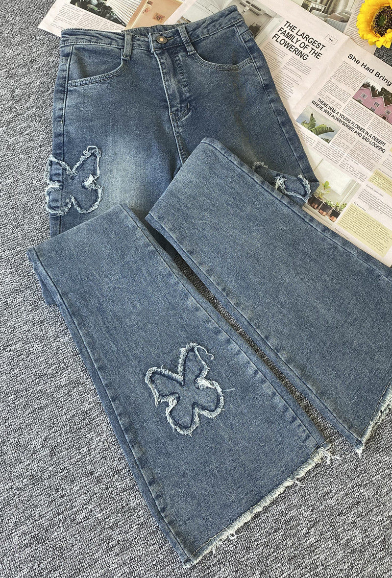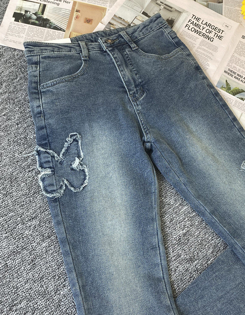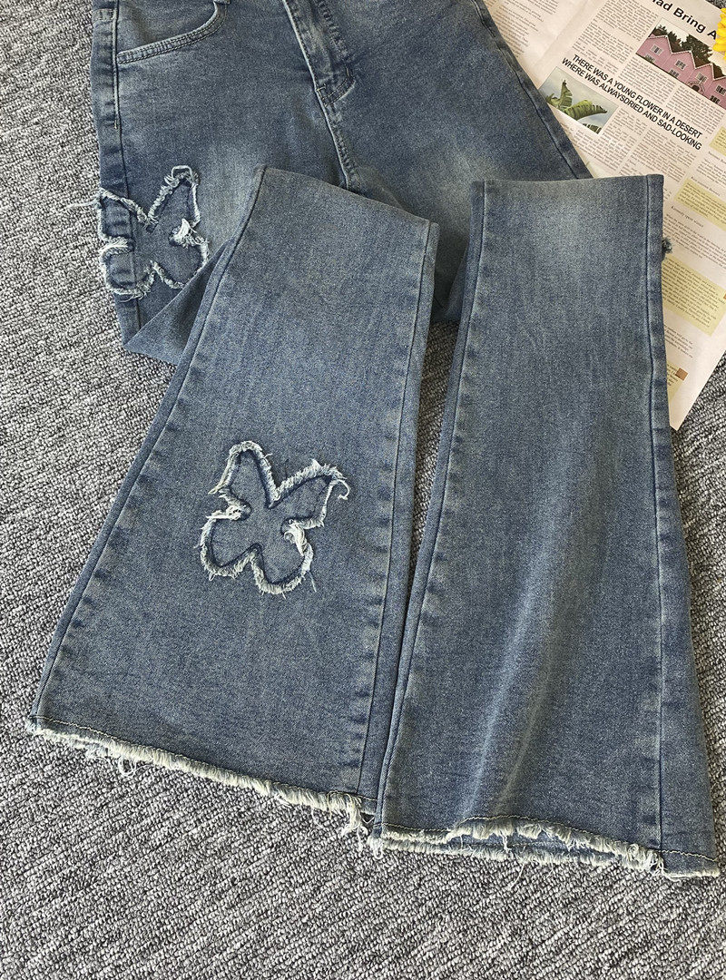 微喇叭牛仔褲女設計感小眾復古港風千禧辣妹穿搭高腰顯瘦毛邊褲子