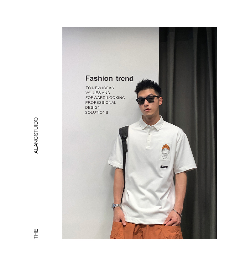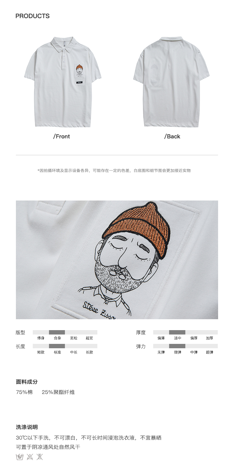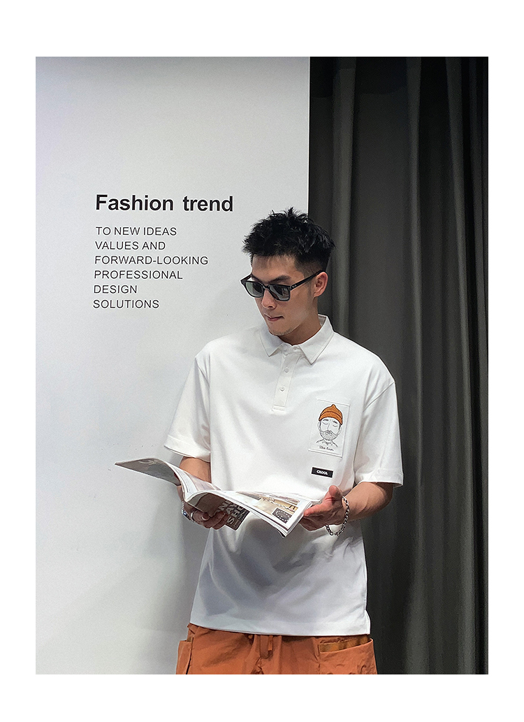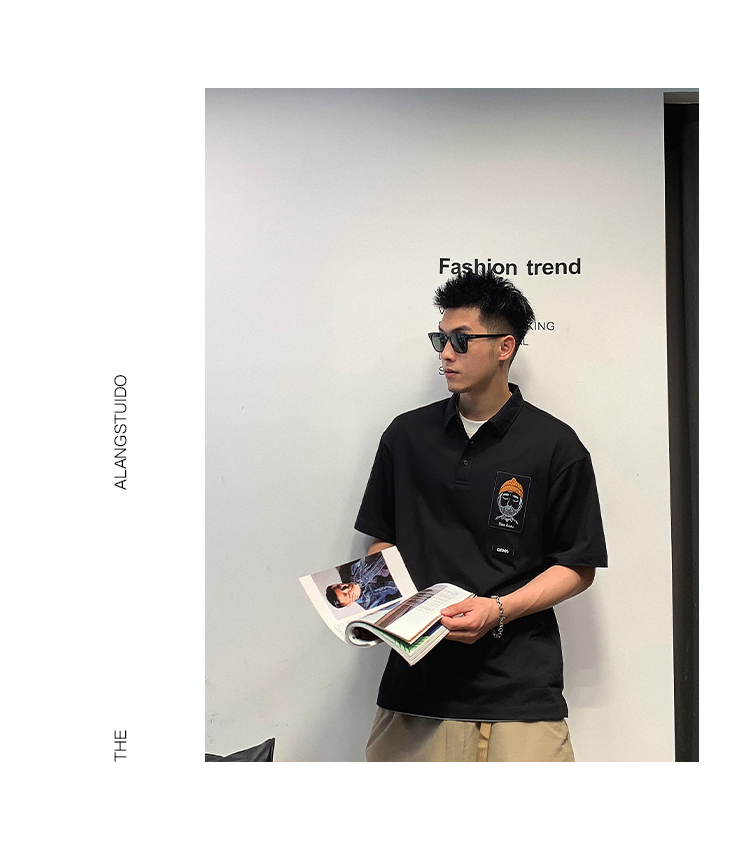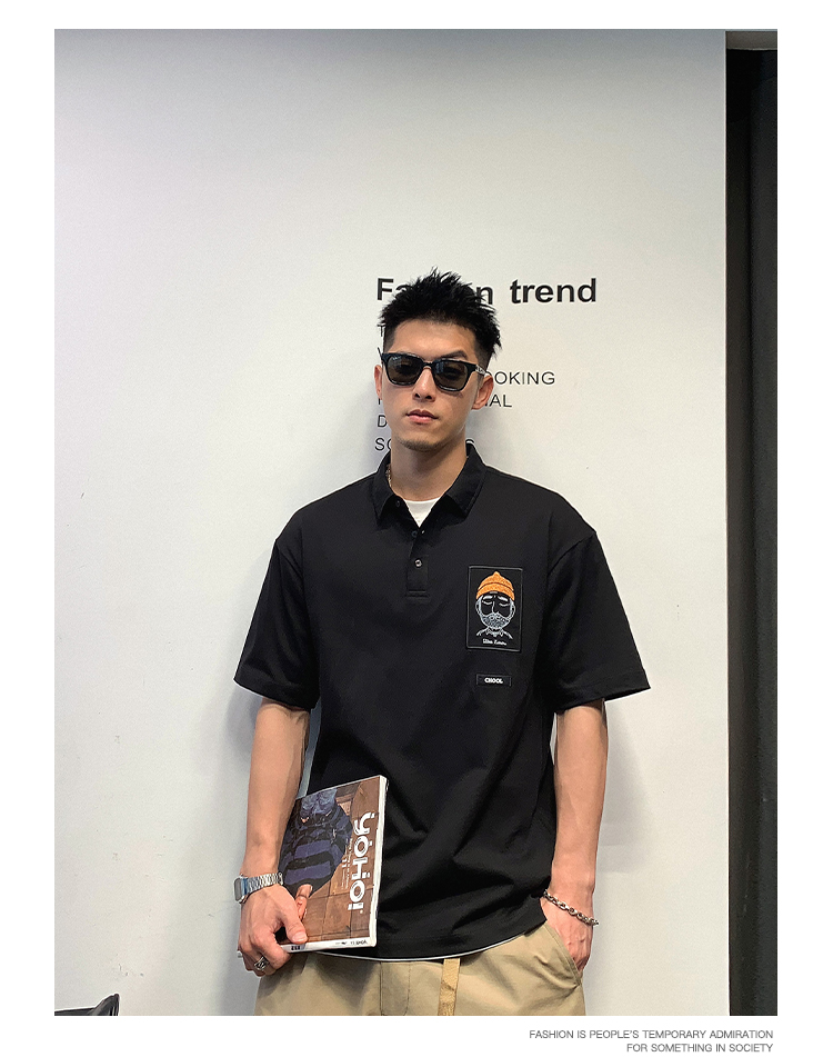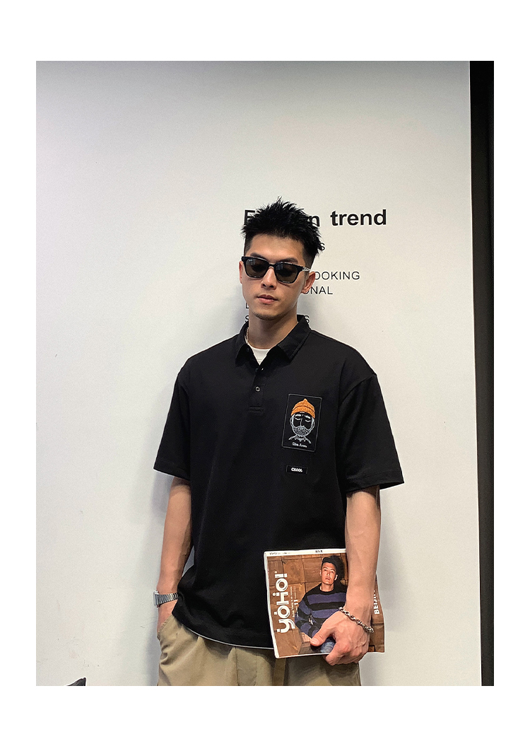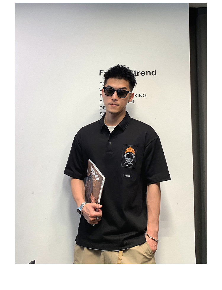 徐太浪夏季翻領短袖polo衫男美式潮牌休閒卡通印花純色寬鬆五分袖