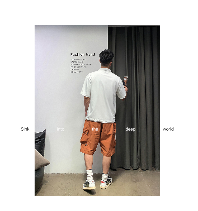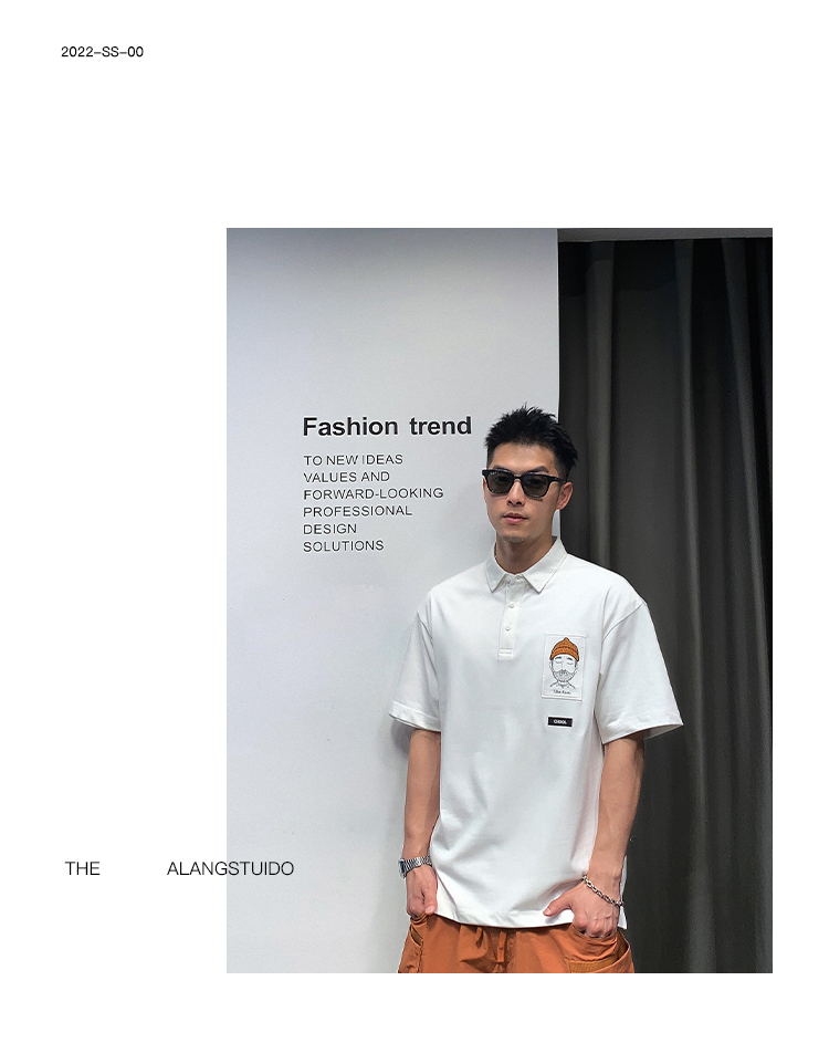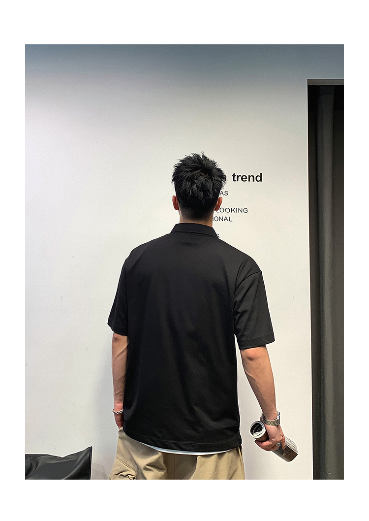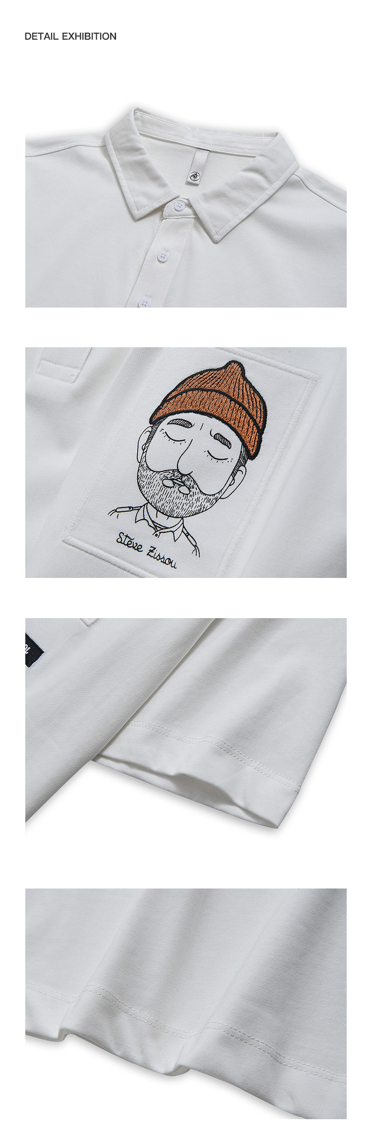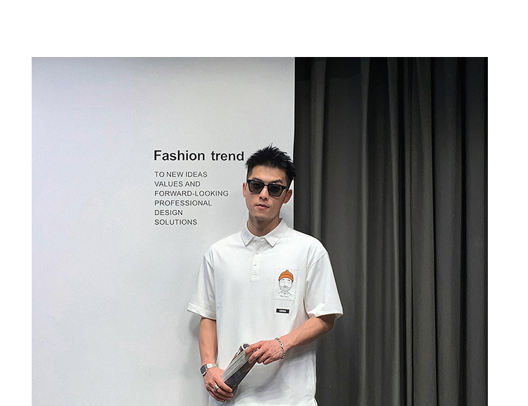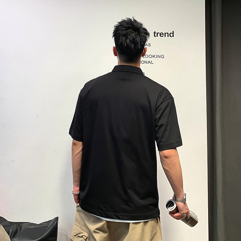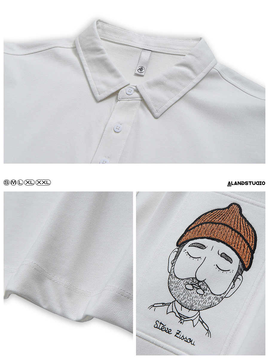 徐太浪夏季翻領短袖polo衫男美式潮牌休閒卡通印花純色寬鬆五分袖