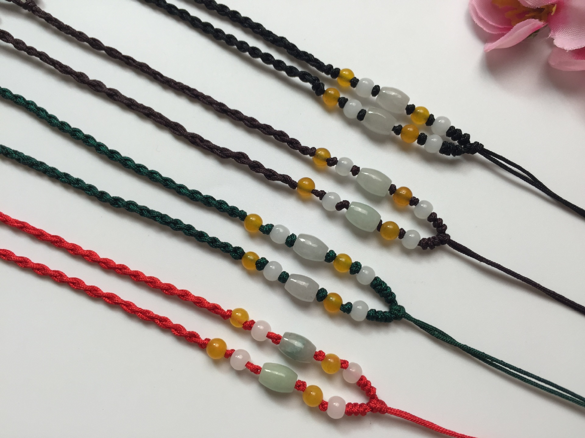 【材质工艺】翡翠米珠+黄玉小珠+72号玉线编织+白色小玻璃珠尾珠