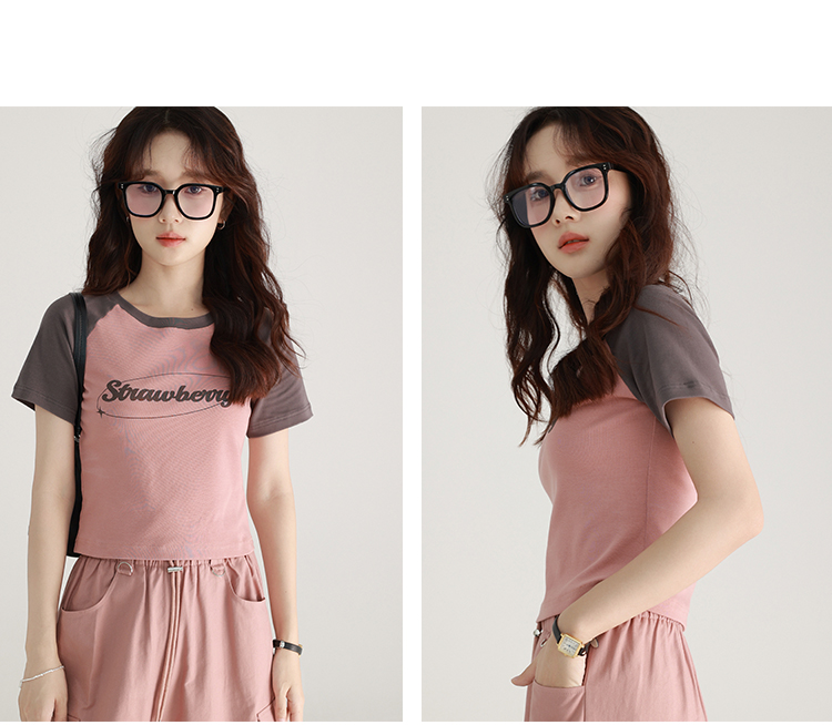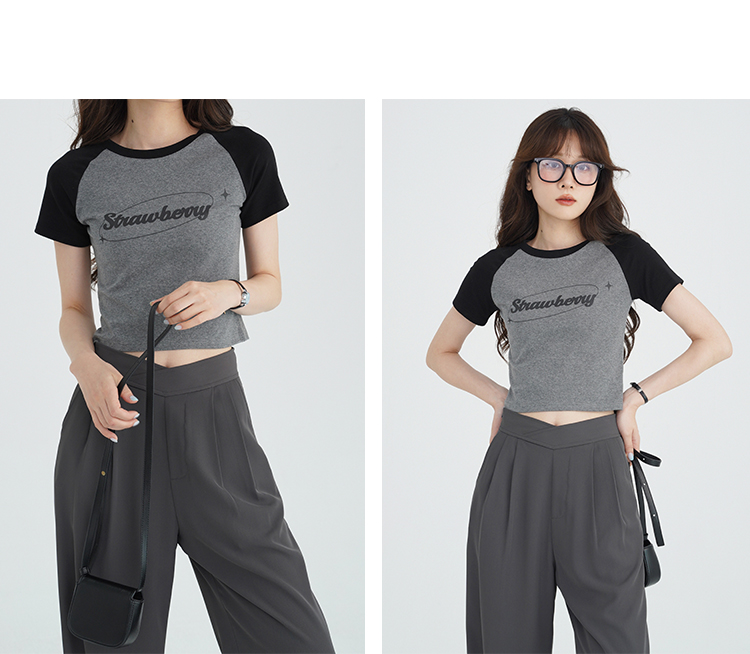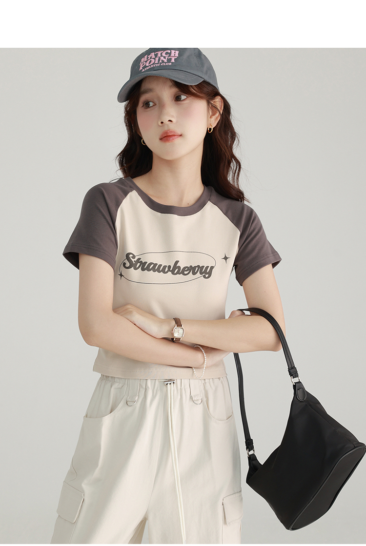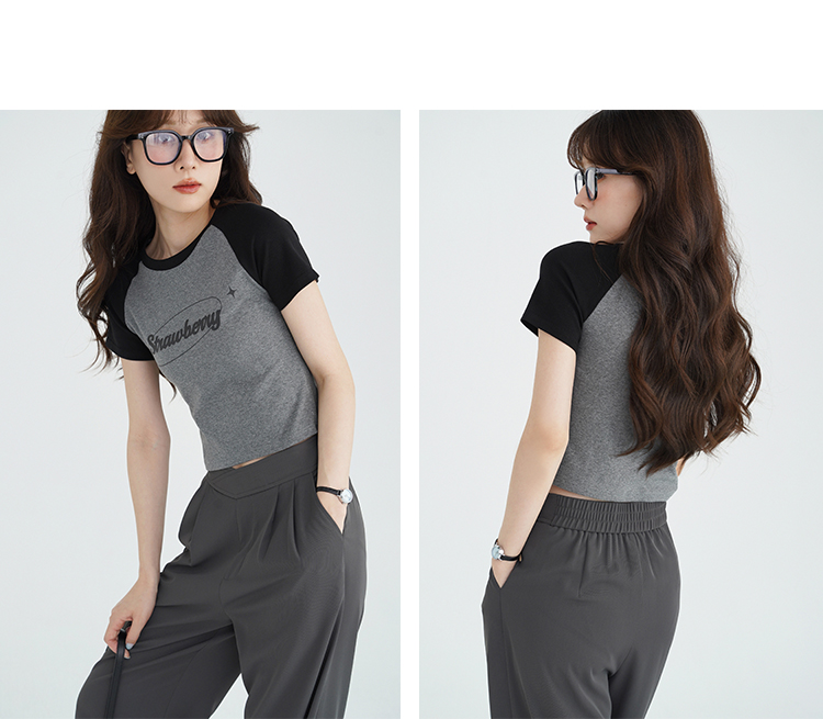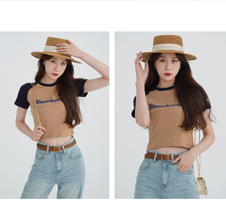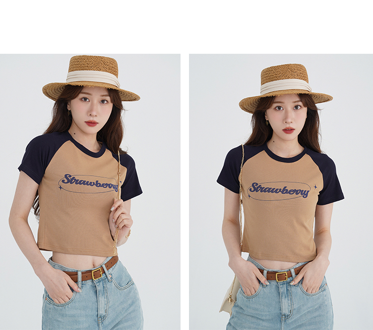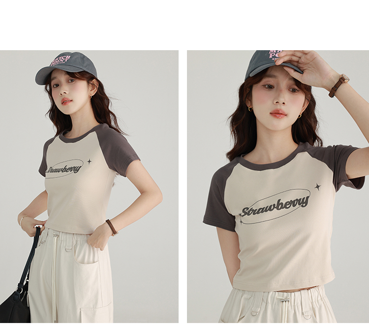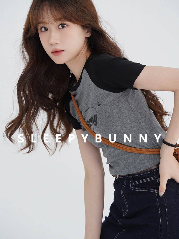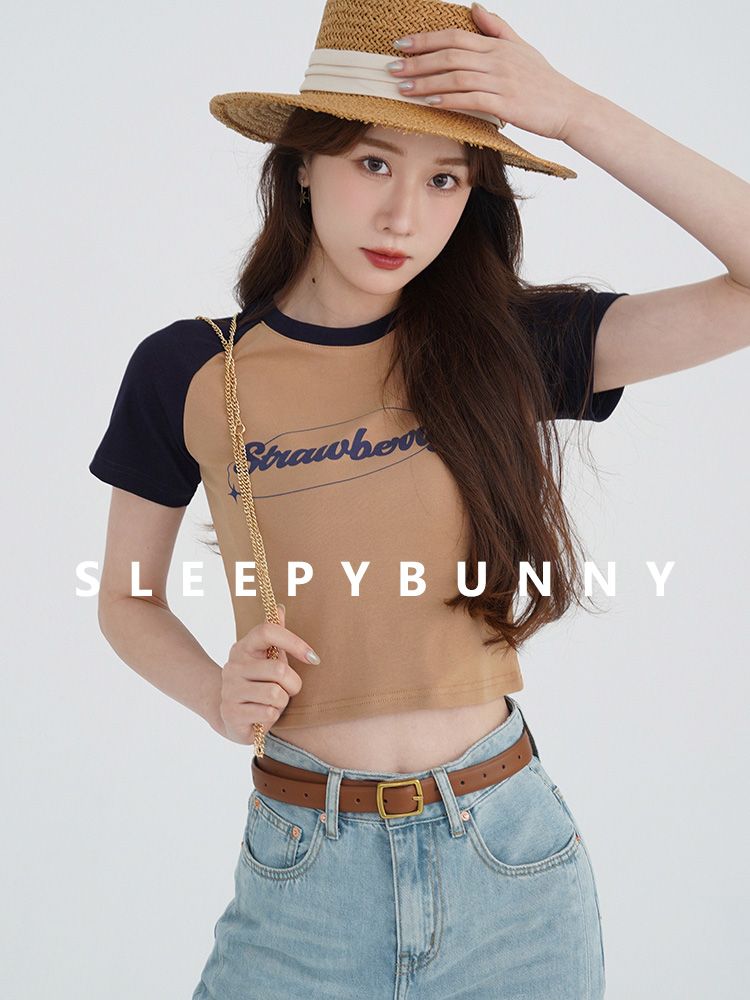瞌睡兔 短袖露臍上衣夏季美式復古小個子辣妹正肩印花修身短款T恤