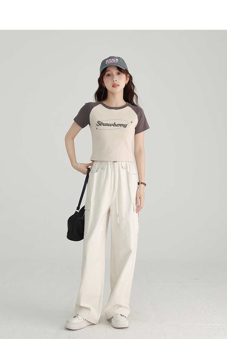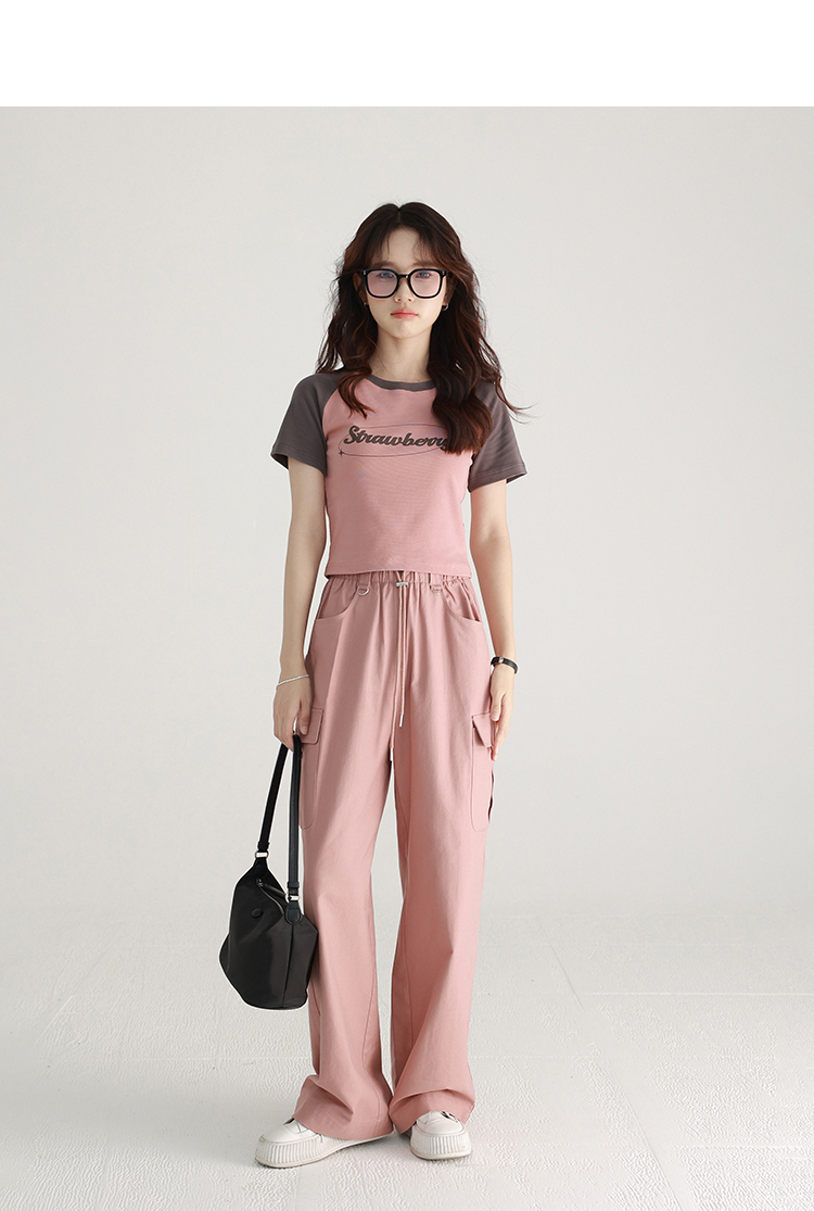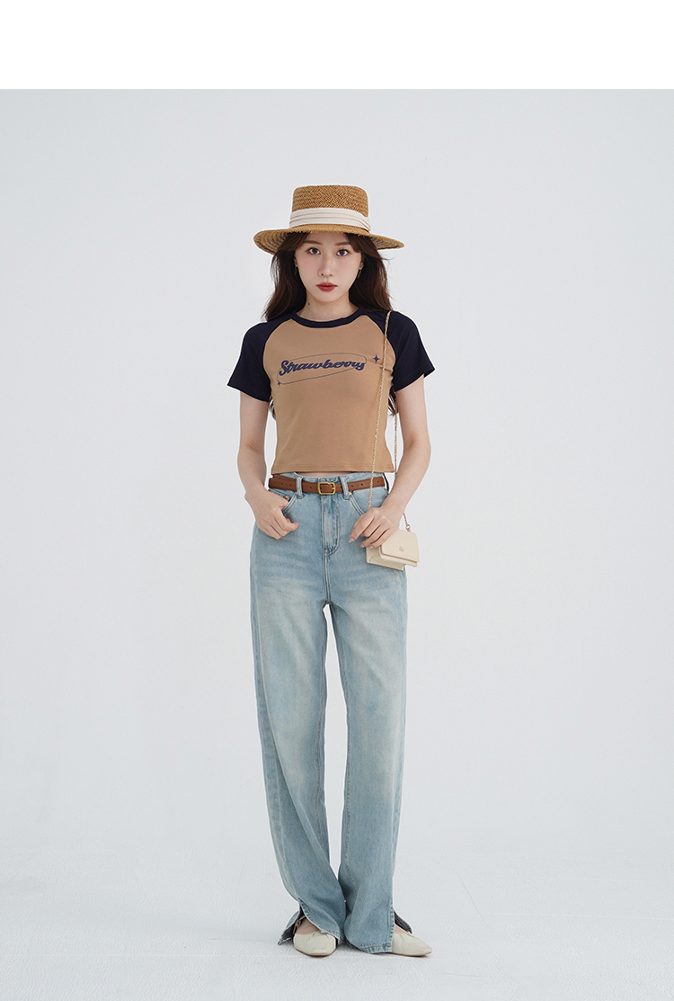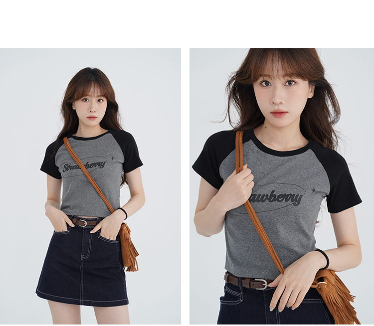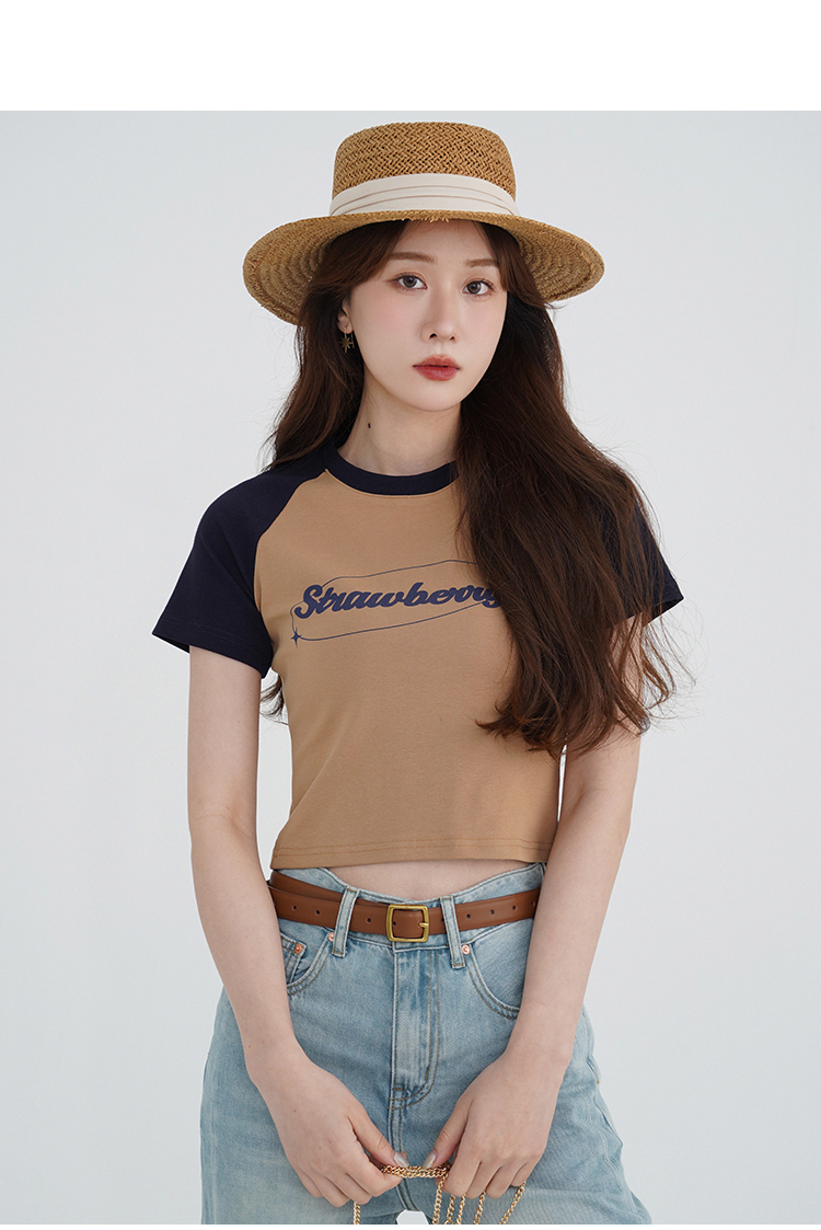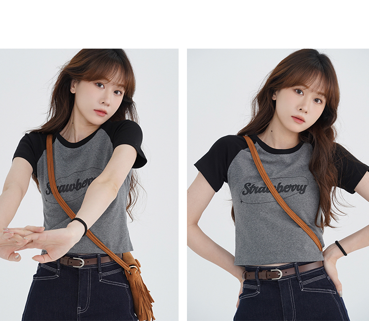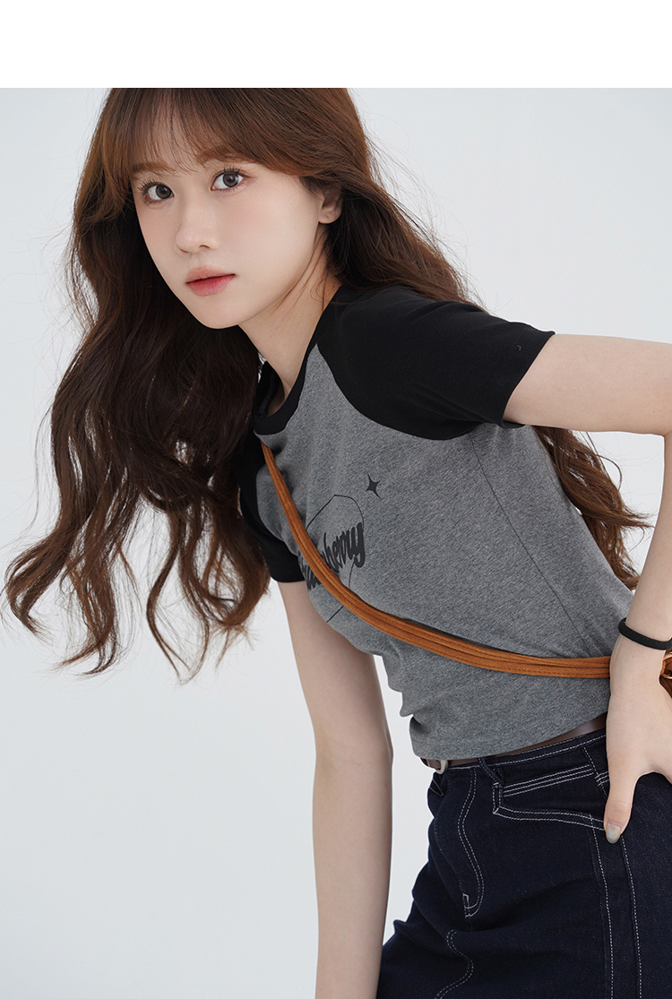 瞌睡兔 短袖露臍上衣夏季美式復古小個子辣妹正肩印花修身短款T恤