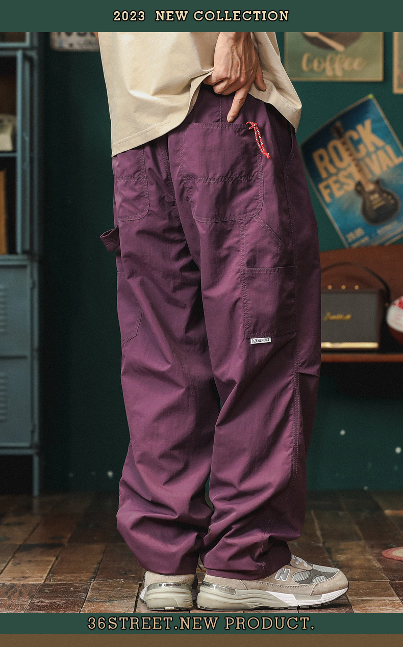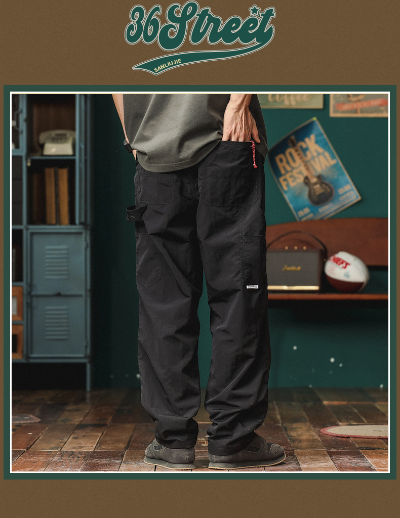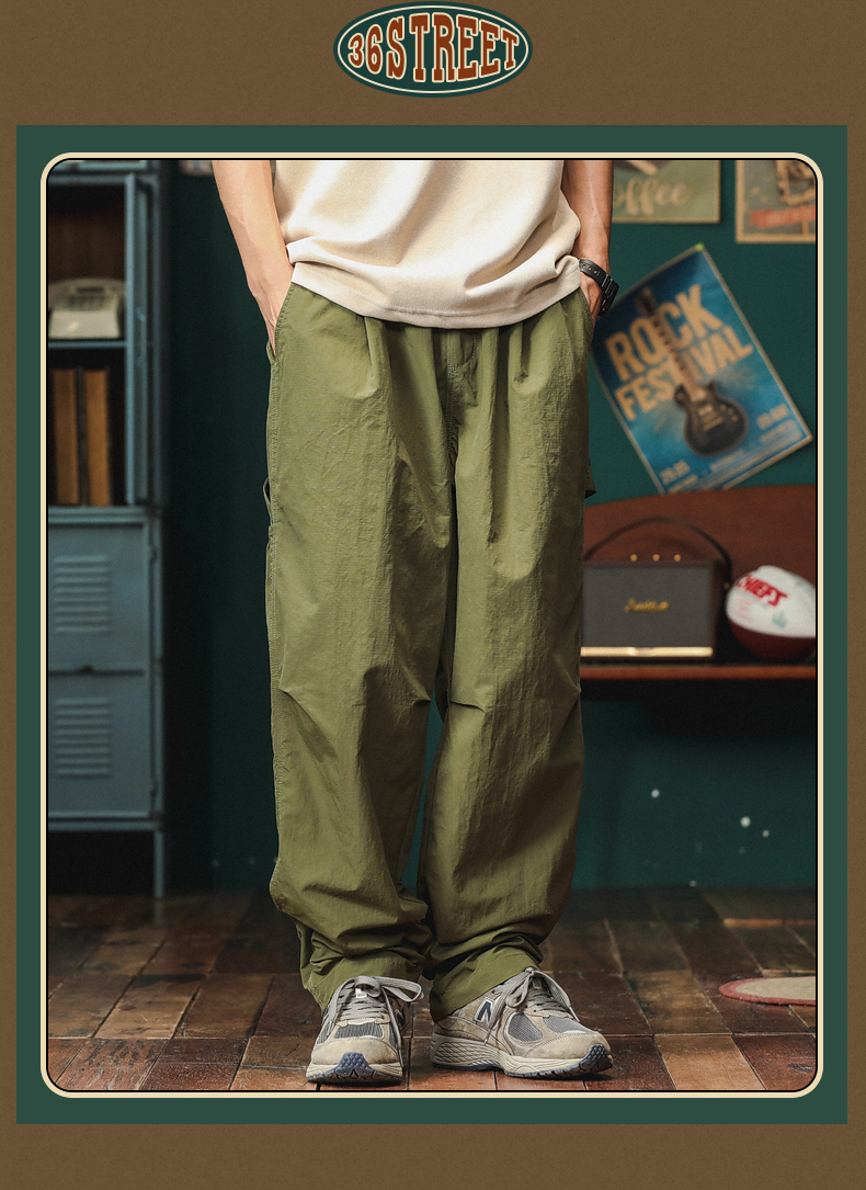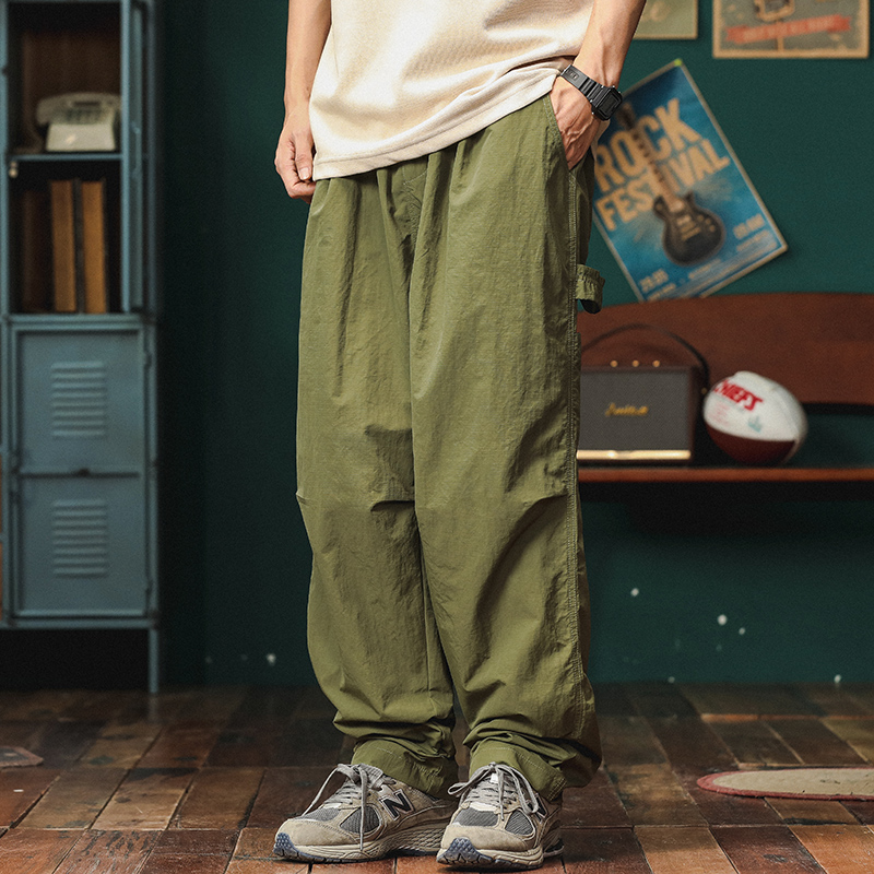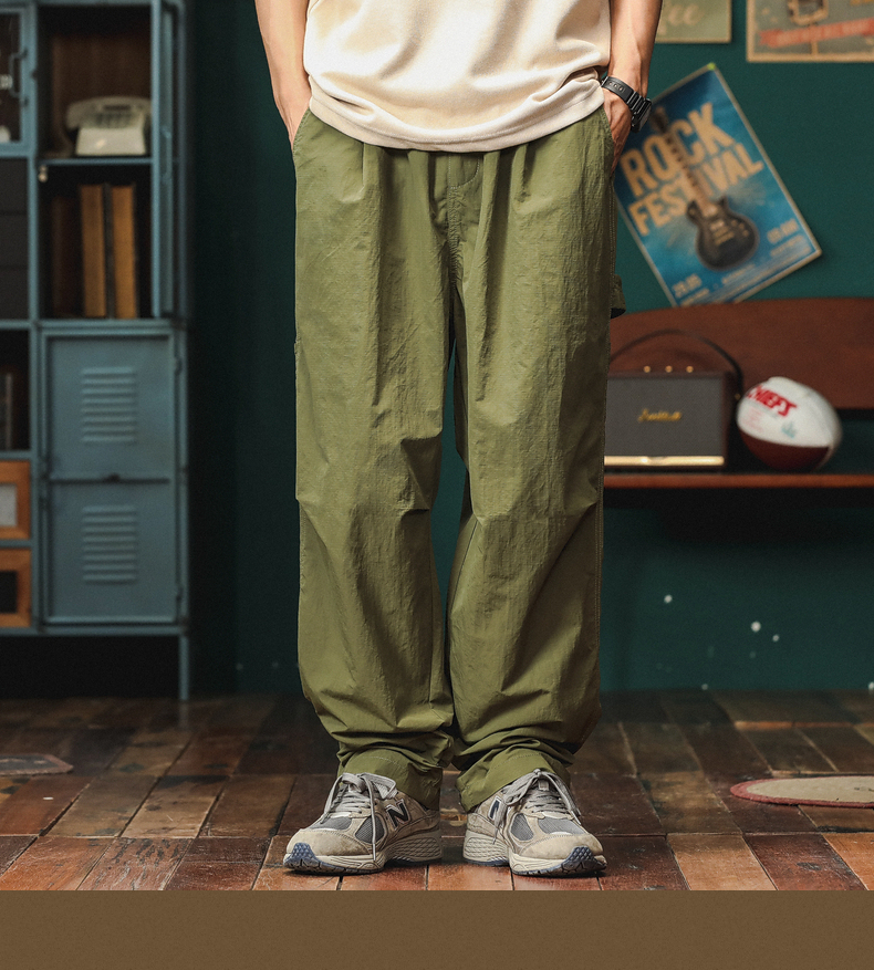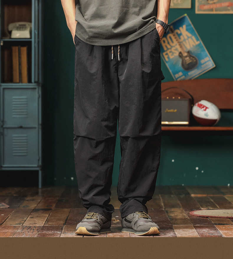 日系戶外傘兵褲男寬鬆機能工裝褲薄款防潑水休閒褲登山錐形衝鋒褲