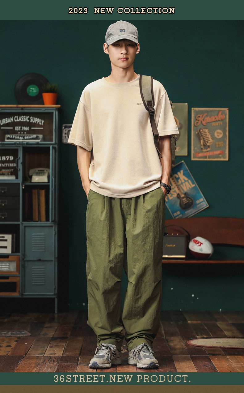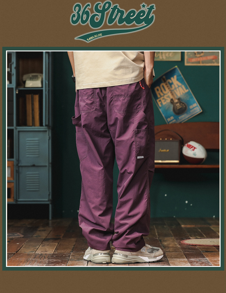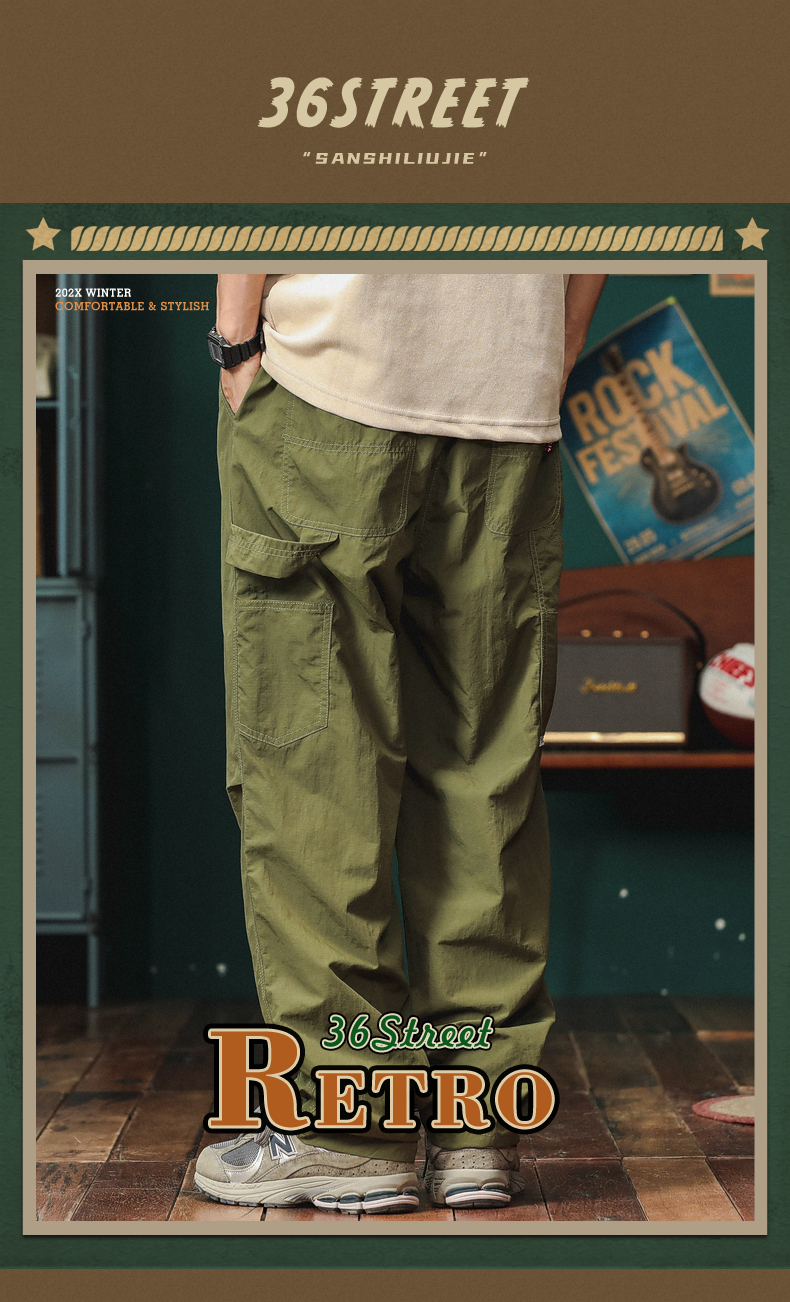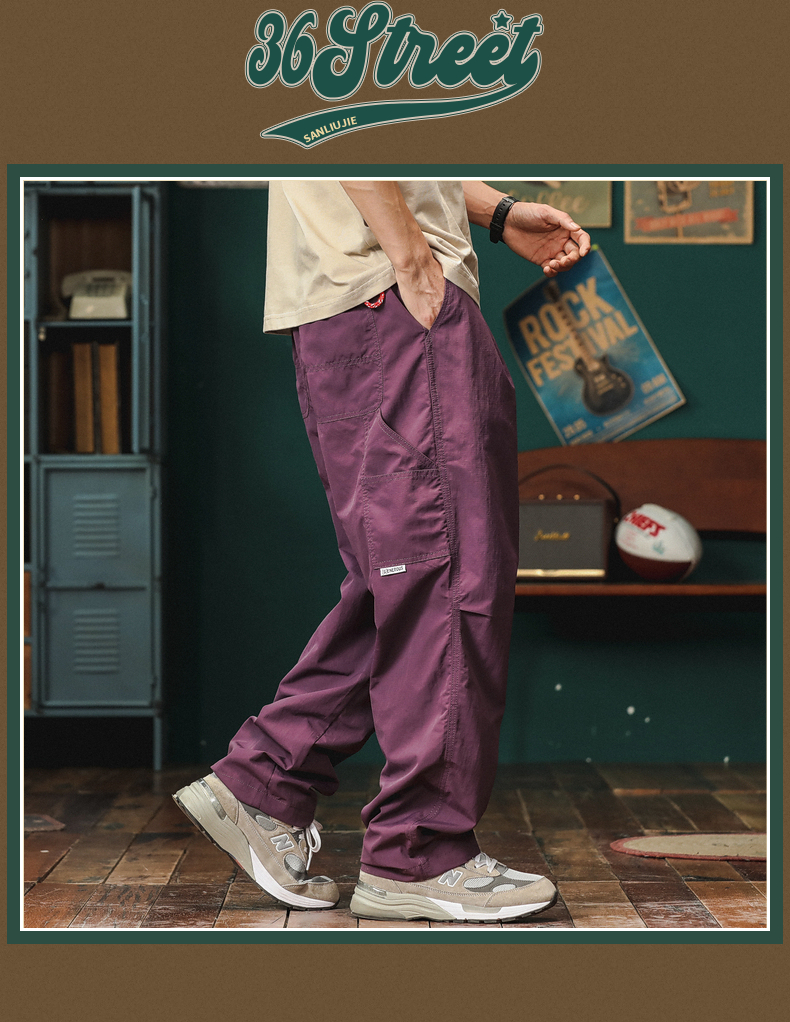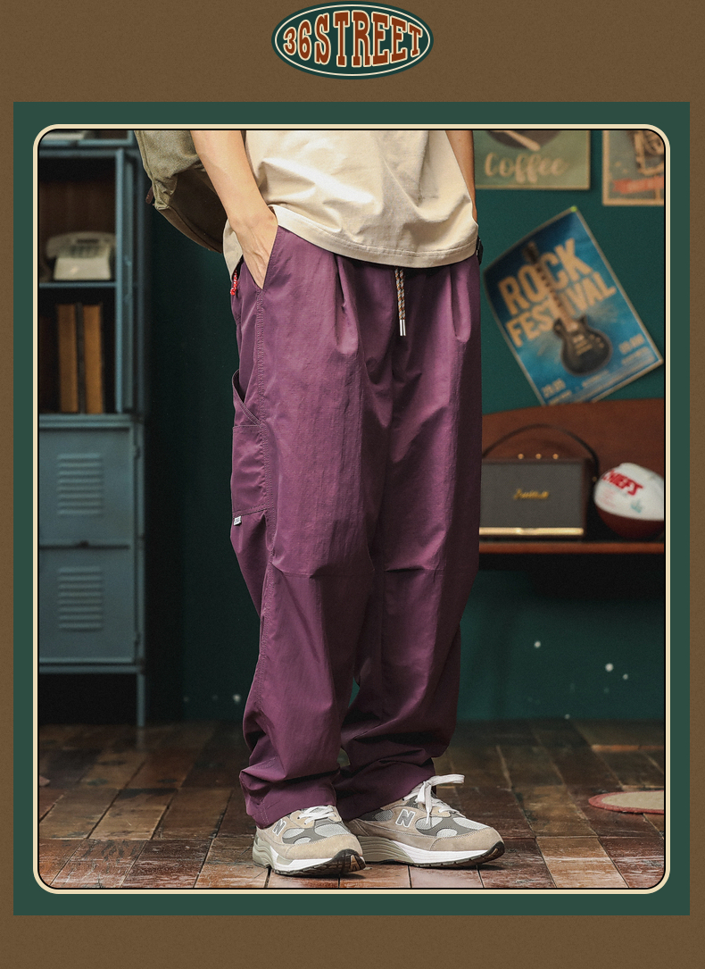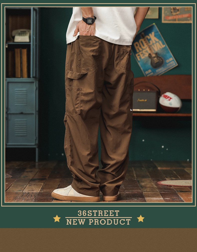 日系戶外傘兵褲男寬鬆機能工裝褲薄款防潑水休閒褲登山錐形衝鋒褲