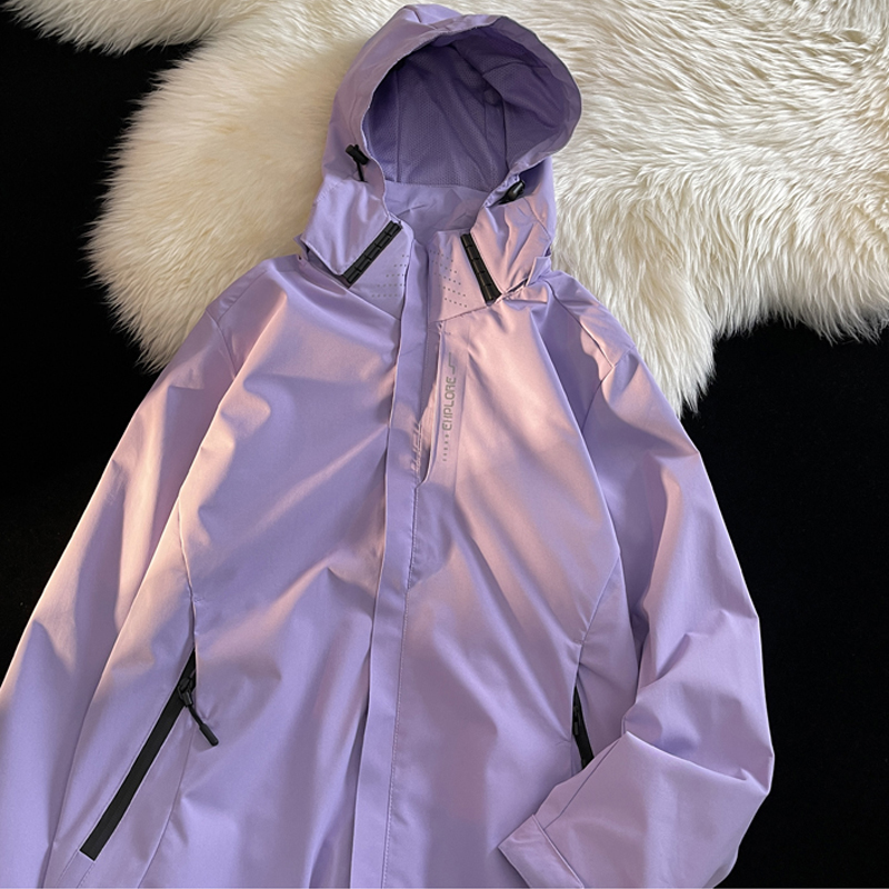 春季美式vibe衝鋒衣女防水防風香芋紫色外套oversize小眾機能夾克