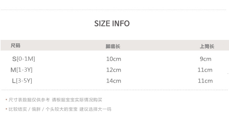 童袜尺码 S 0-1岁,M 1-3岁,L 3-5岁