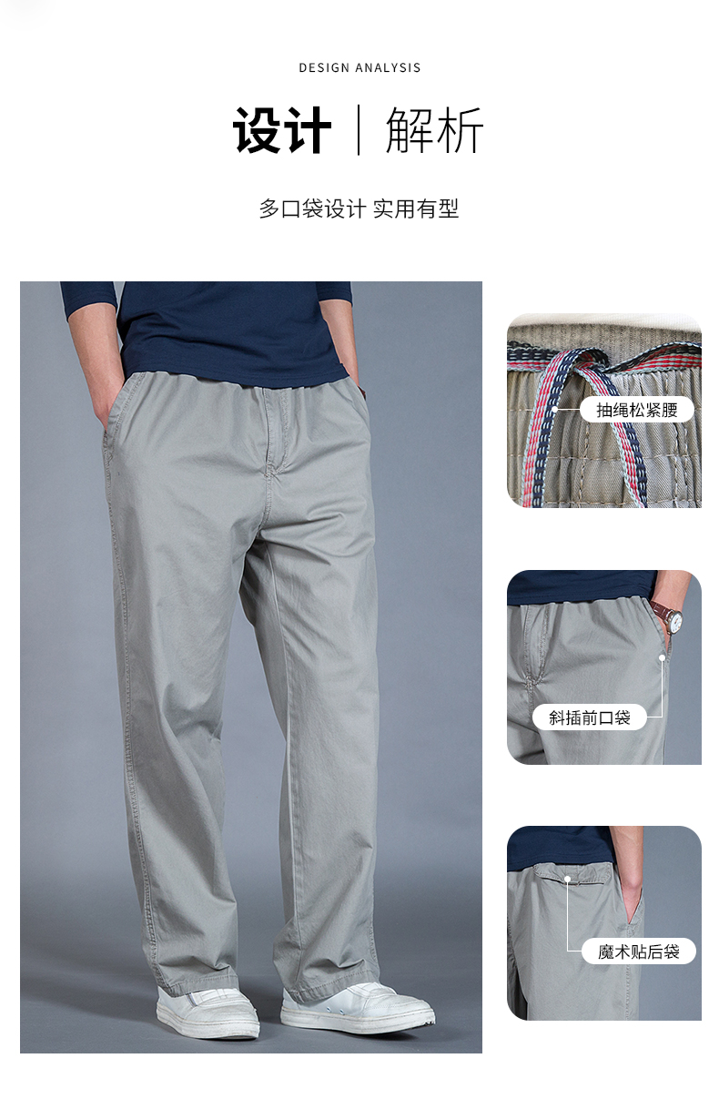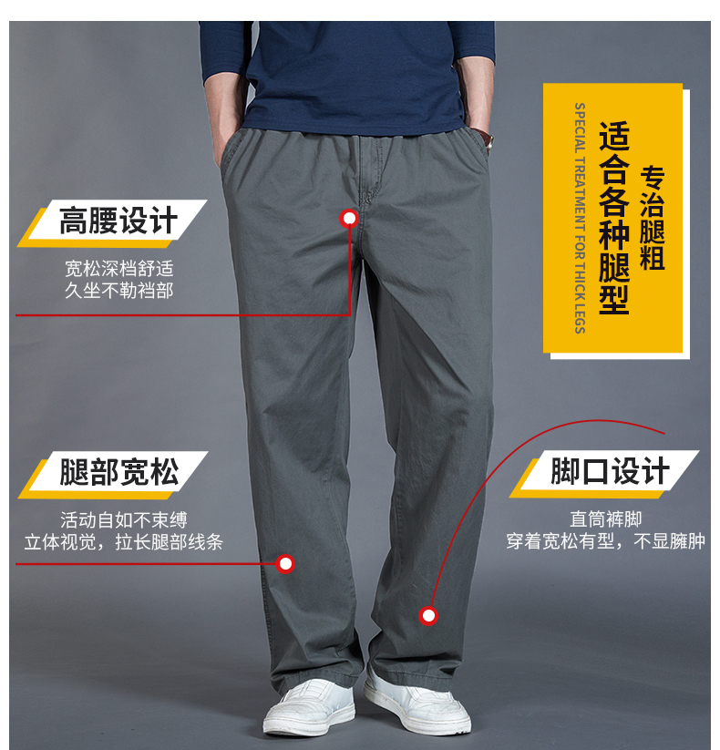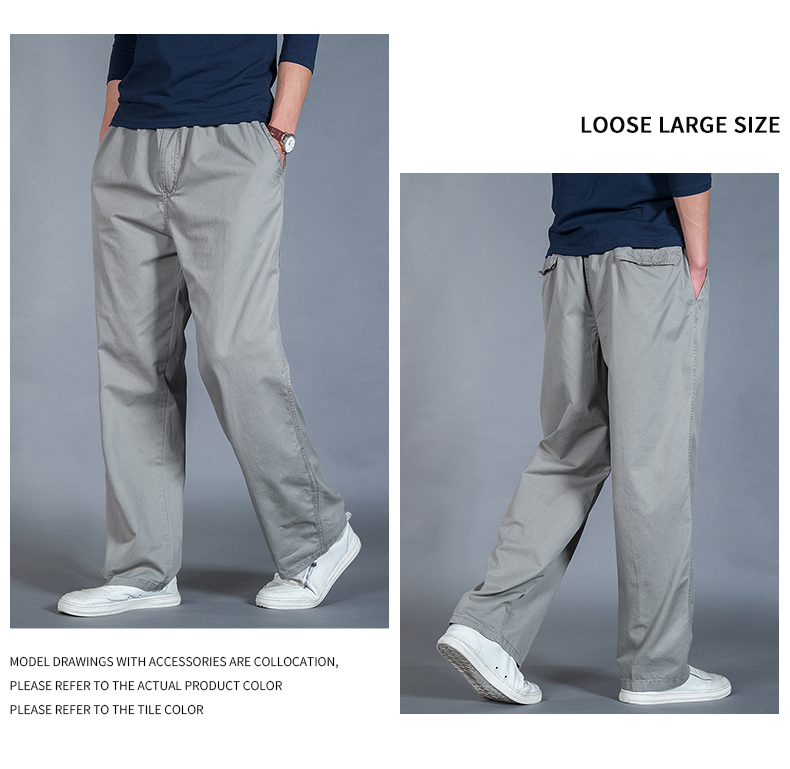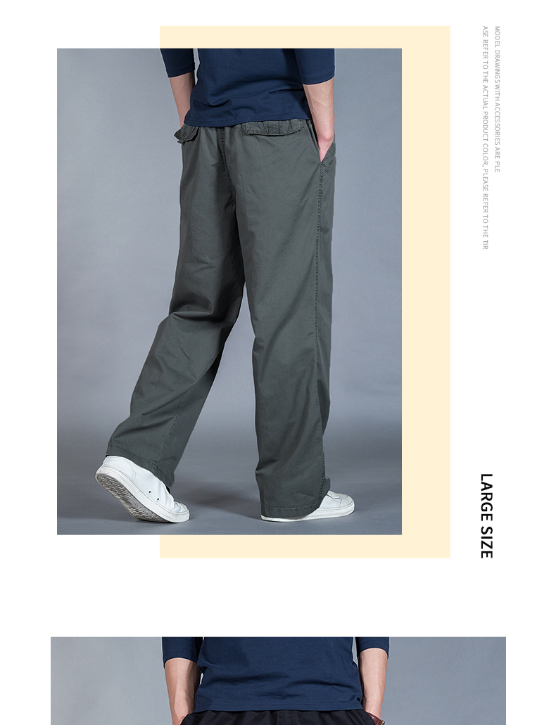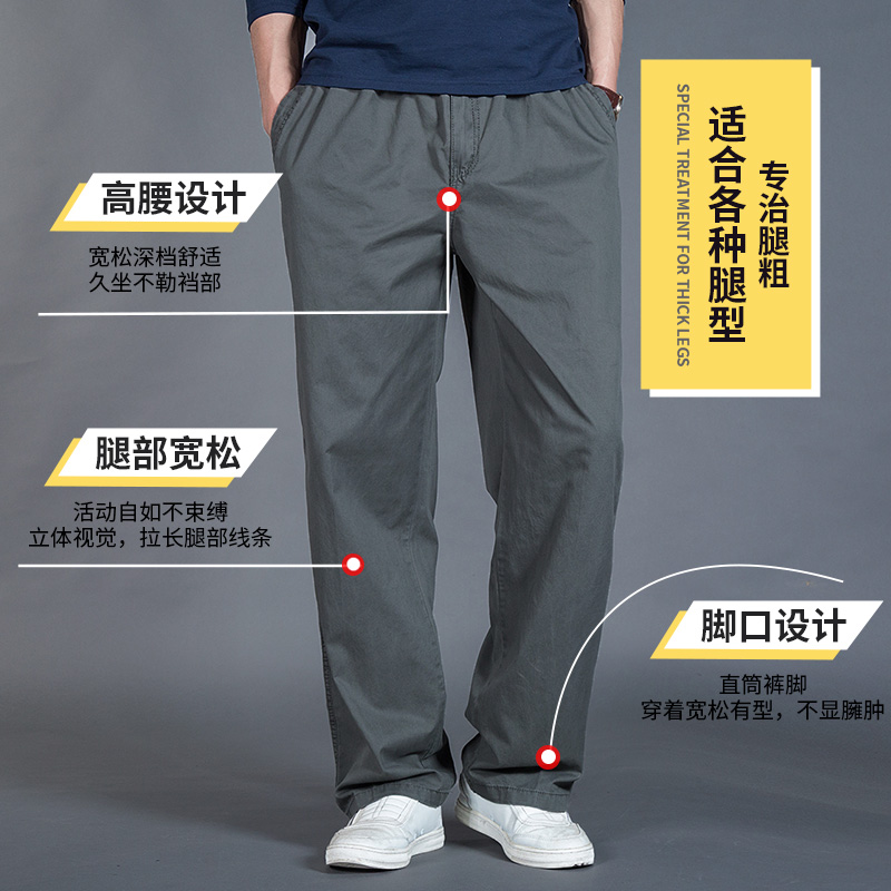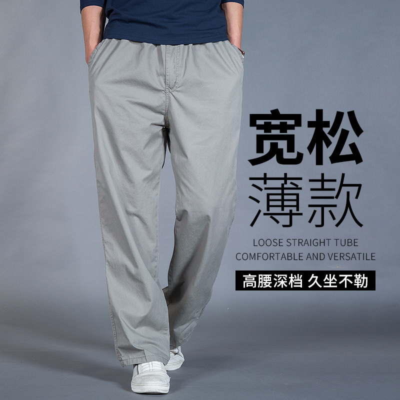 男士休閒褲夏季薄款純棉大尺碼男褲中年爸爸褲子男款寬鬆直筒工裝褲