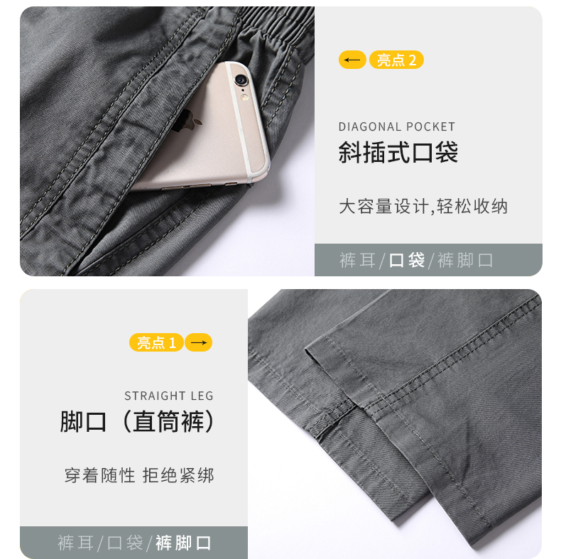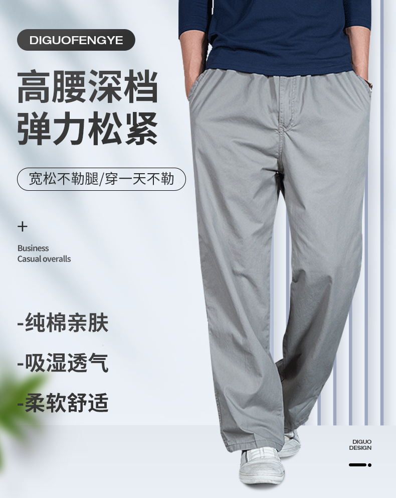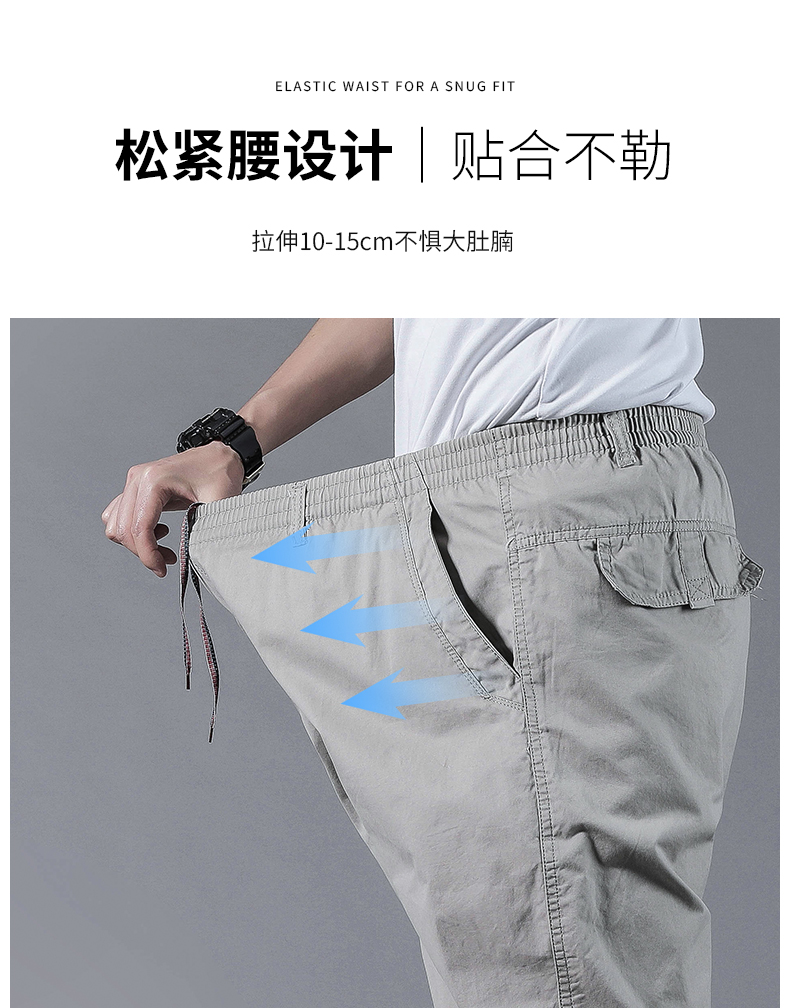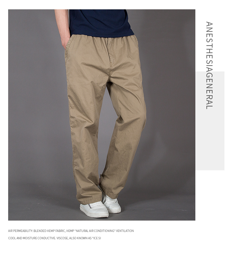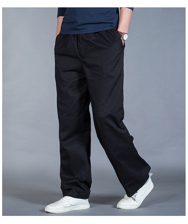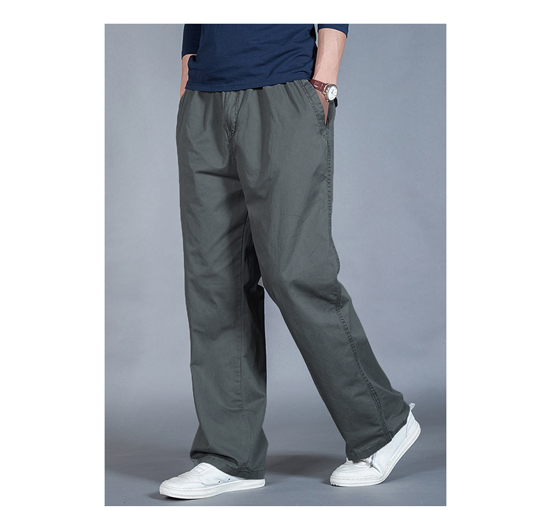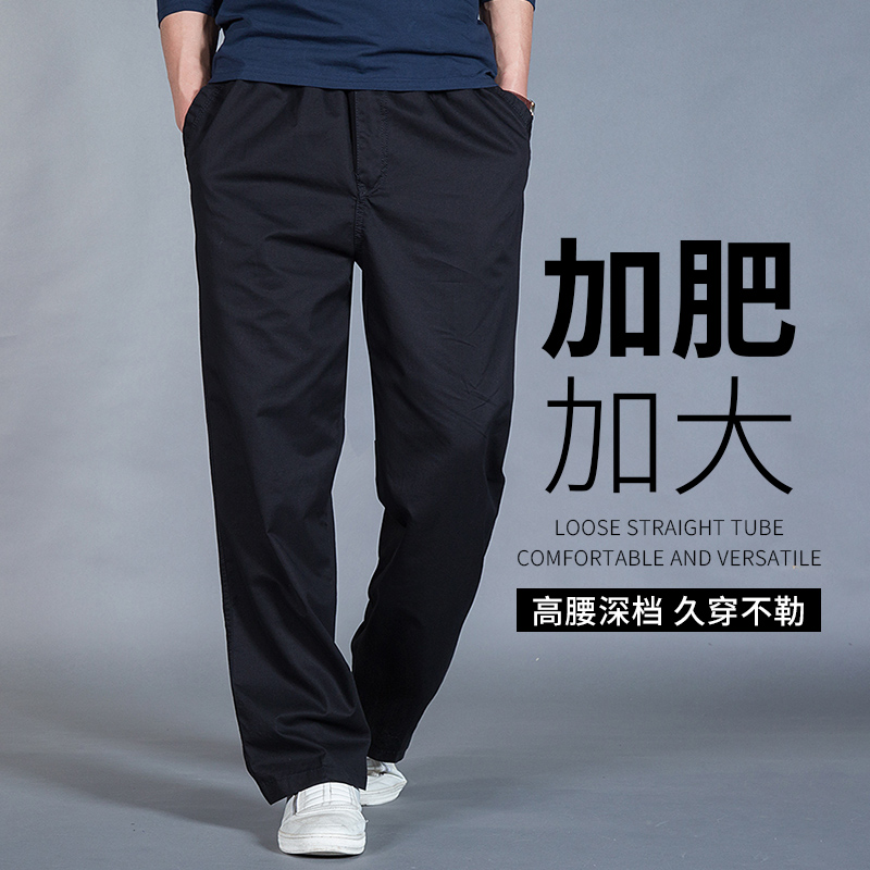 男士休閒褲夏季薄款純棉大尺碼男褲中年爸爸褲子男款寬鬆直筒工裝褲