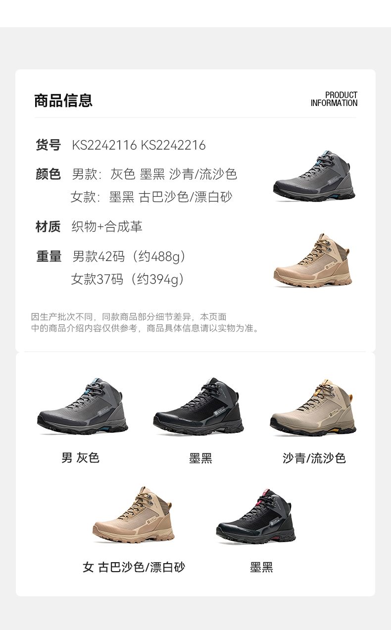 凱樂石登山鞋男女防水徒步鞋 中筒耐磨戶外運動鞋地平線KS2312337