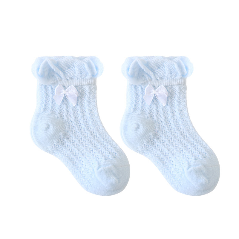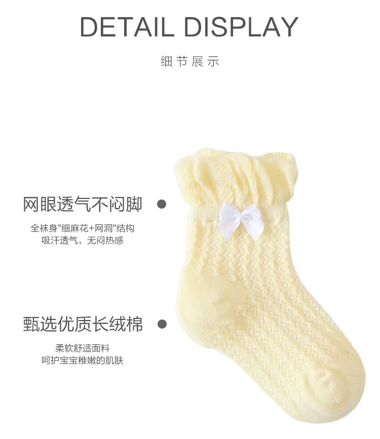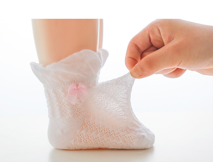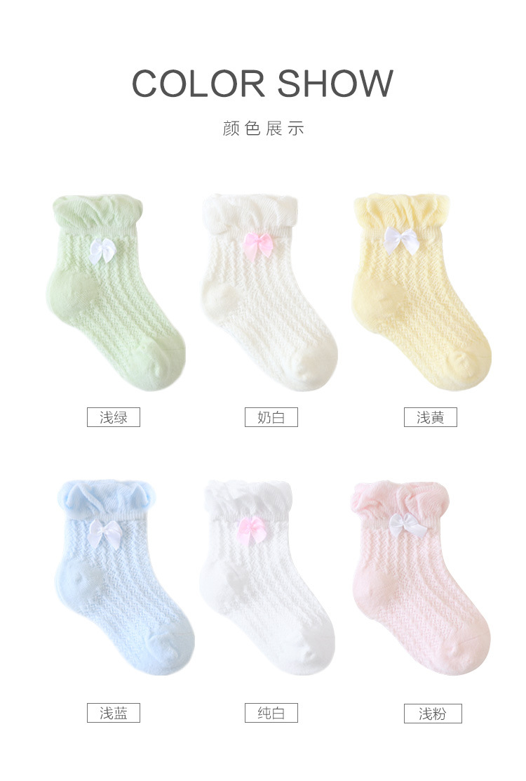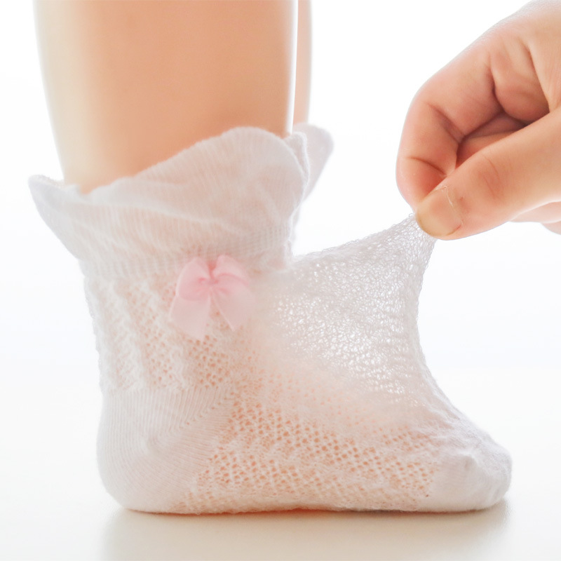 21年夏季网眼薄款婴儿袜子新生儿宝宝女童袜子泡泡口蝴蝶结儿童袜
