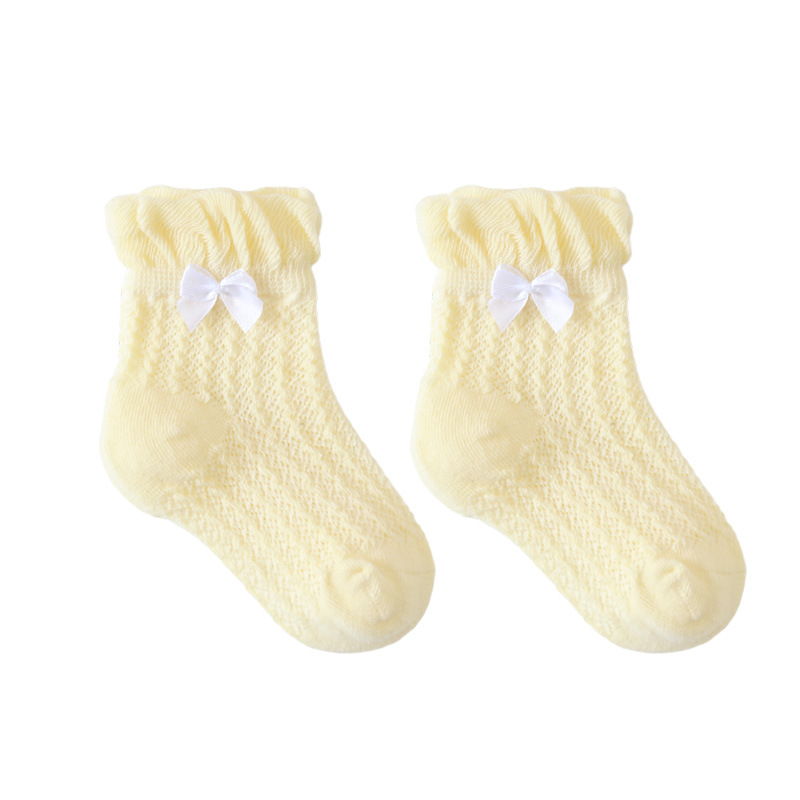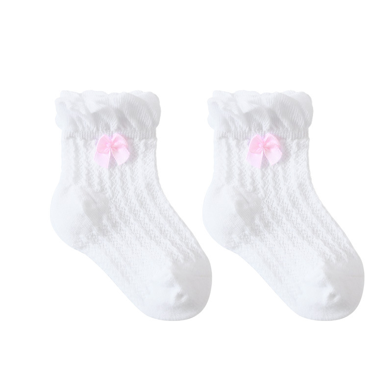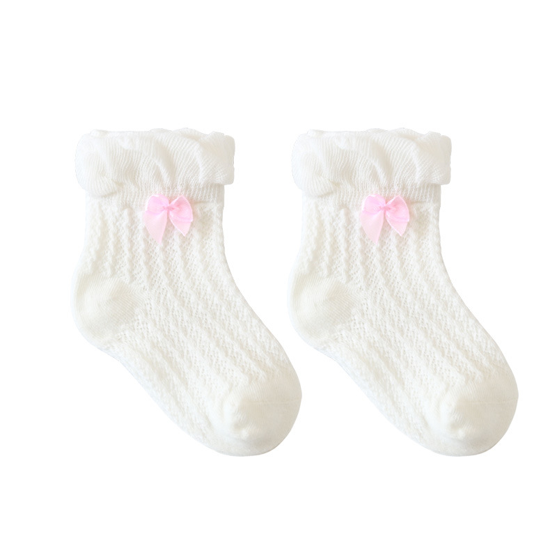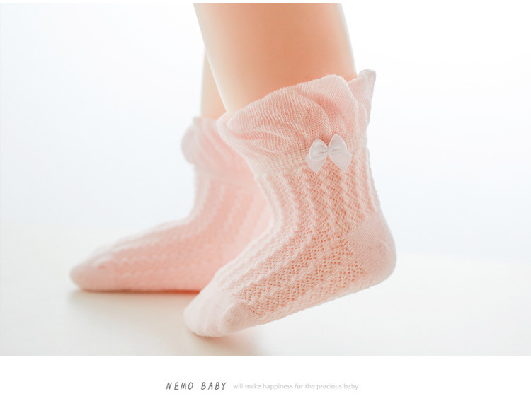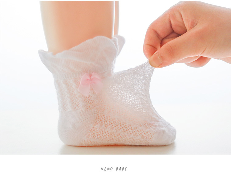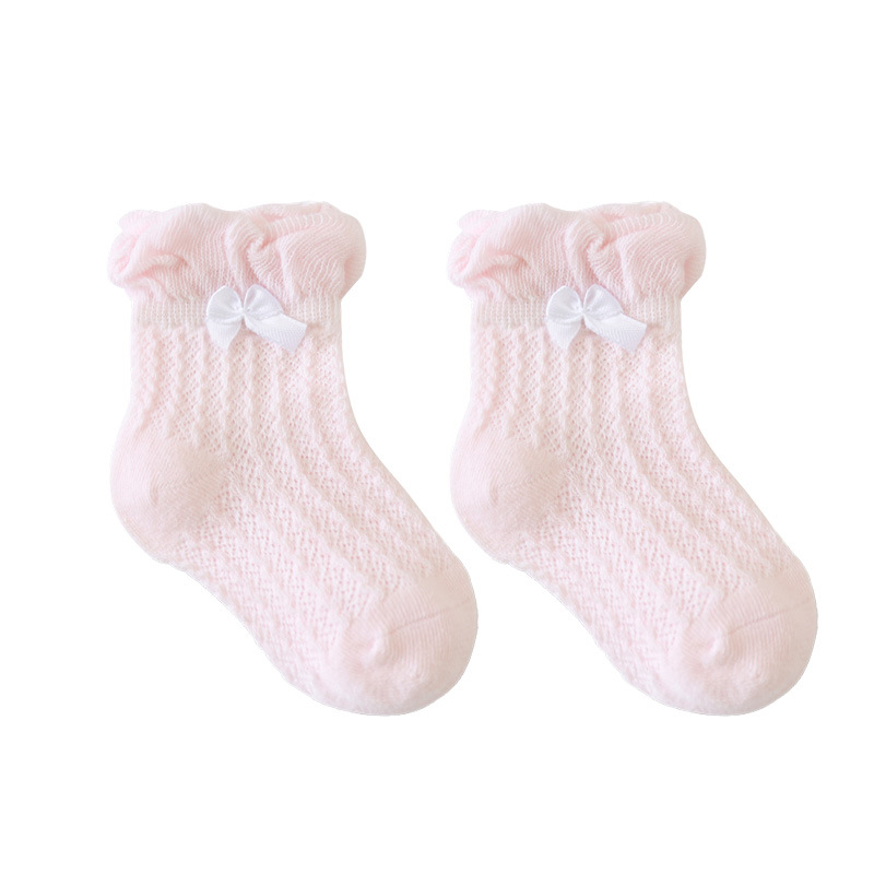 21年夏季网眼薄款婴儿袜子新生儿宝宝女童袜子泡泡口蝴蝶结儿童袜