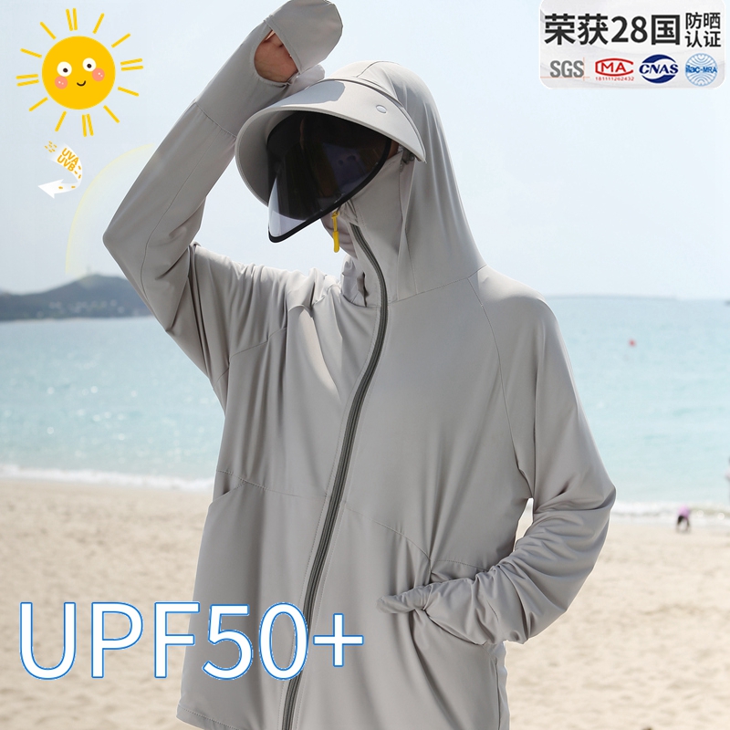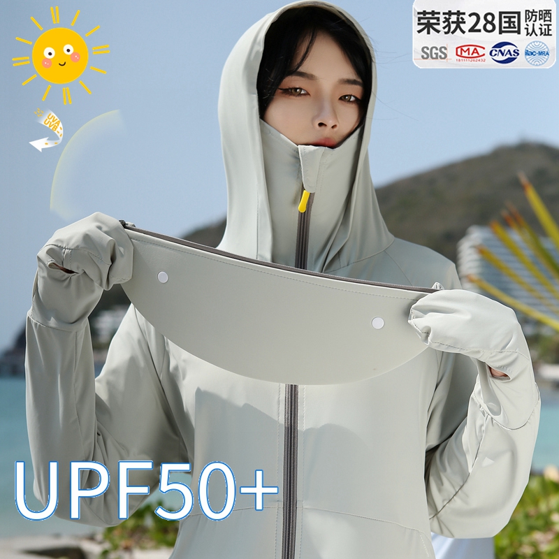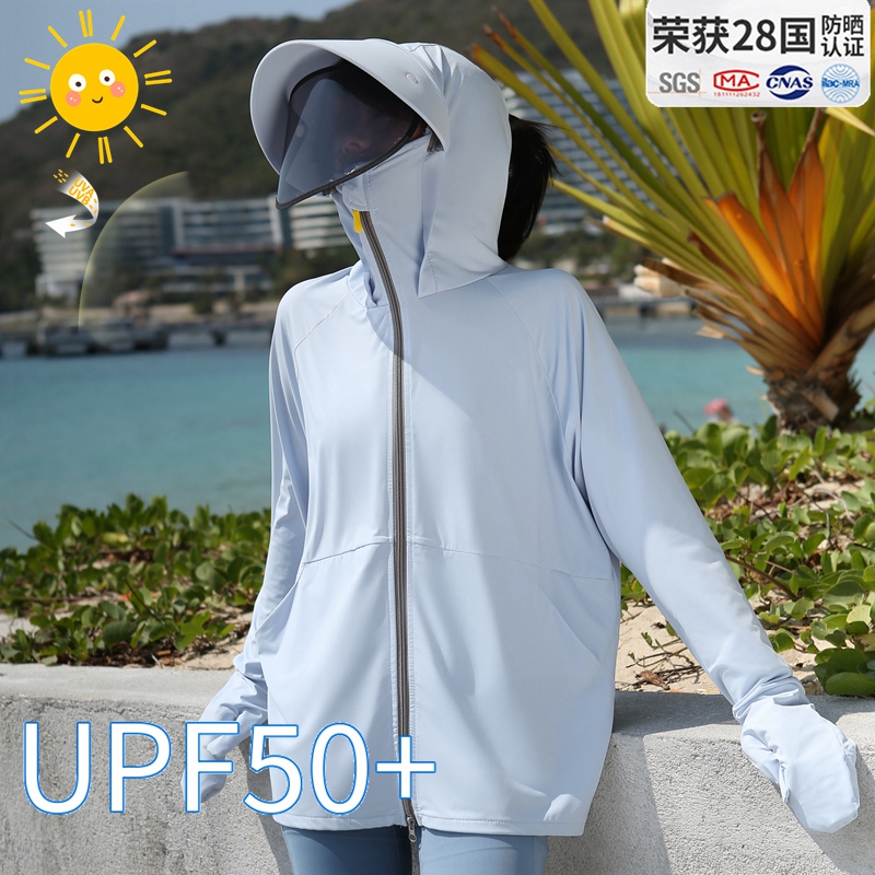 指尖防曬衣女夏抗UV冰絲開衫大帽簷遮臉一體防曬服開車電動車