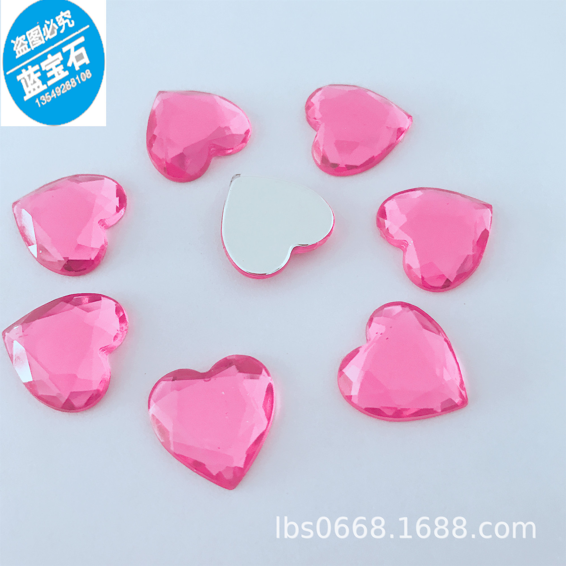 桃心钻 粉色 台湾亚克力钻 超闪 爱心银底 儿童玩具贴钻 饰品配件