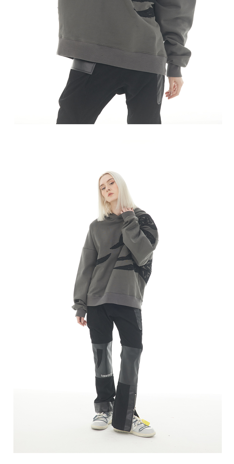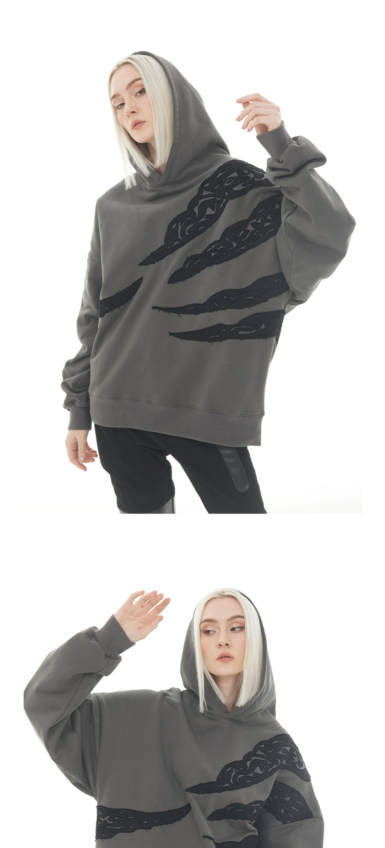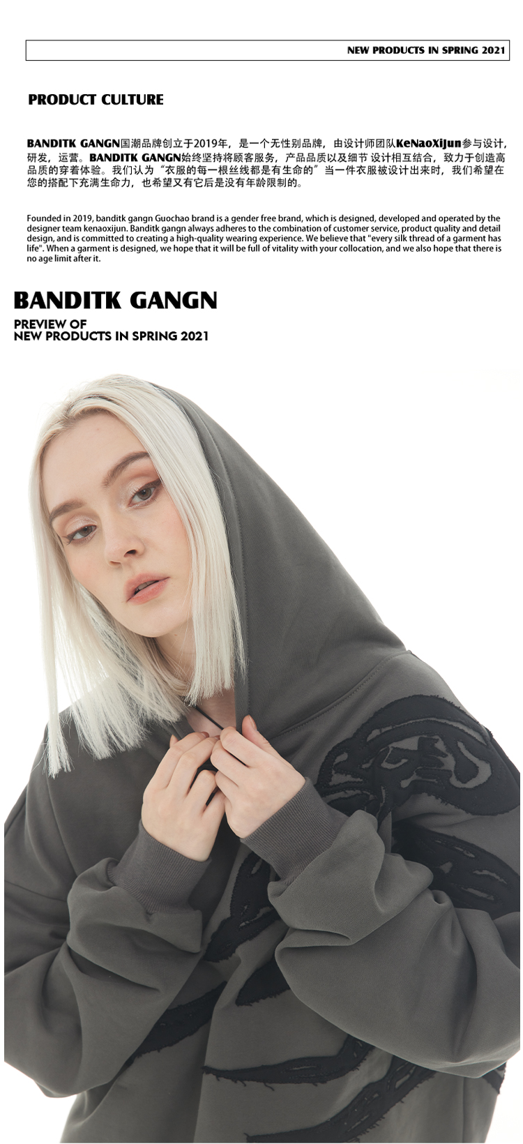 BANDITK GANGN惡魔之爪灰色連帽運動衫女國潮ins美式高街原創設計感