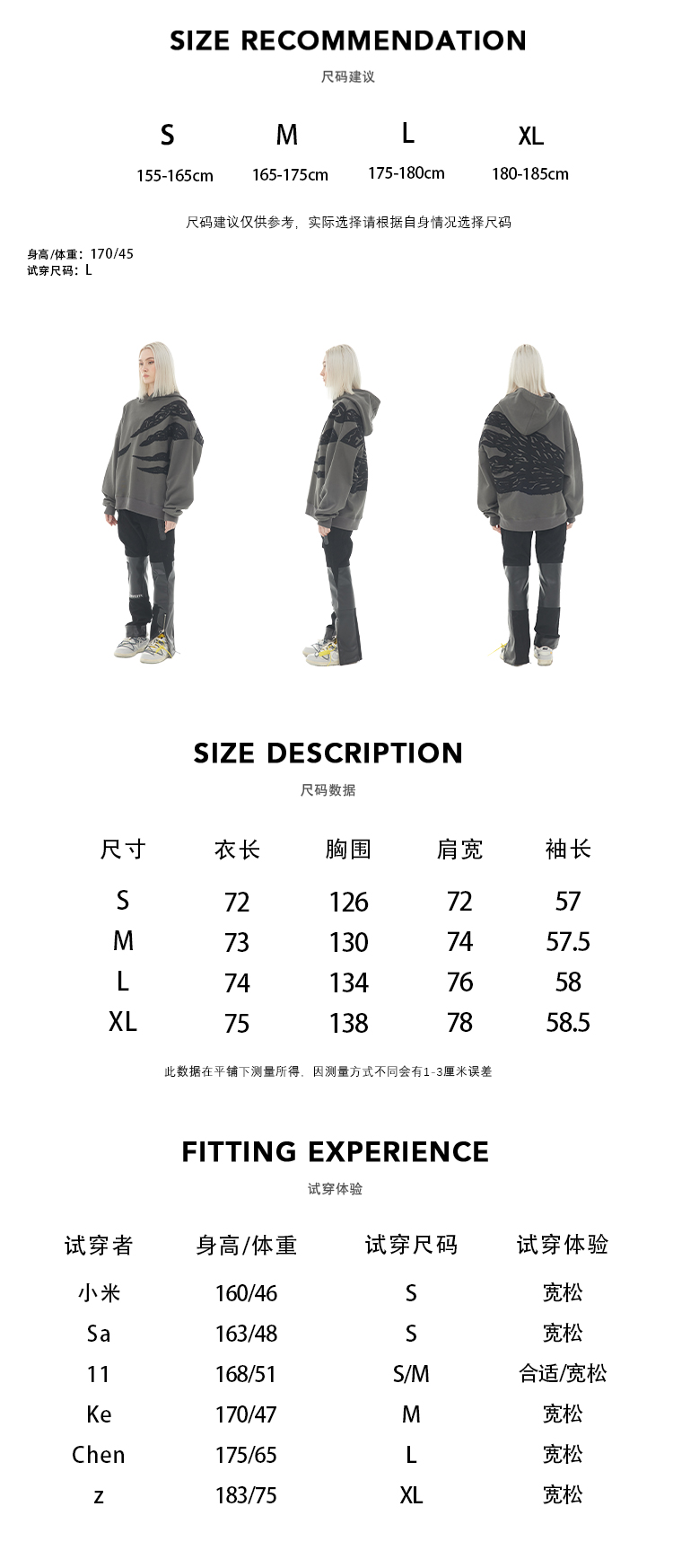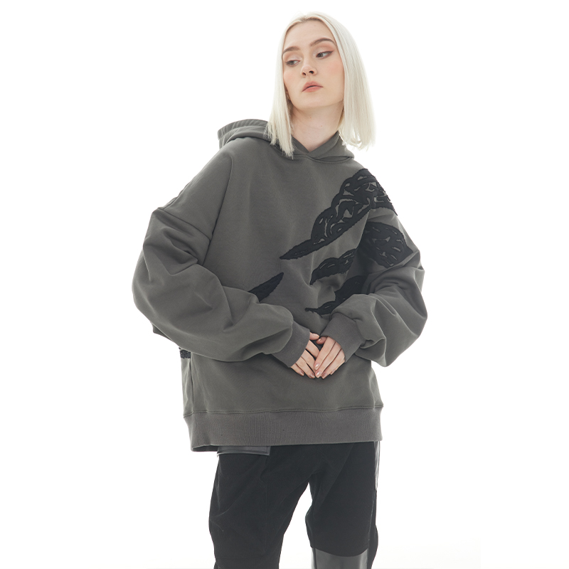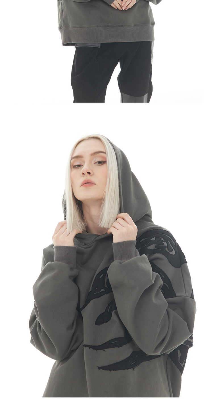 BANDITK GANGN惡魔之爪灰色連帽運動衫女國潮ins美式高街原創設計感