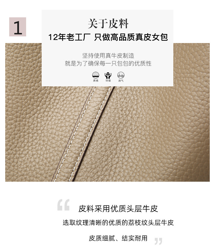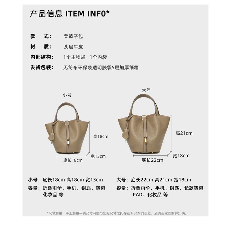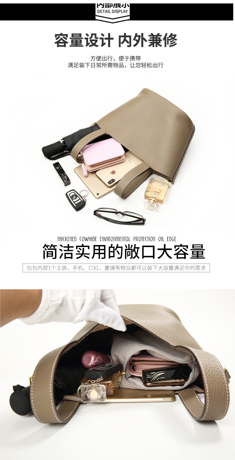 新款头层牛皮真皮手提中年妈妈包 简约时尚水桶大容量菜篮子女包