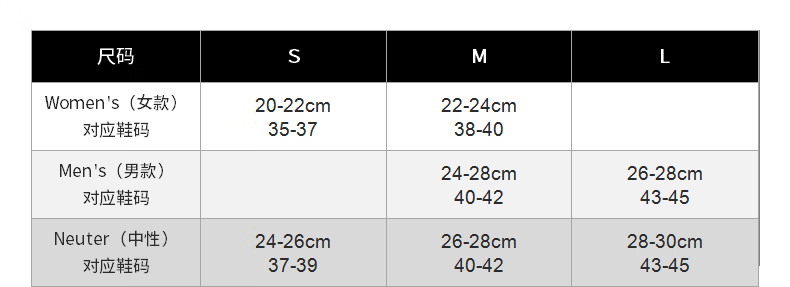 尺碼 S(35-38碼) M(38-42碼) L(42-45碼)