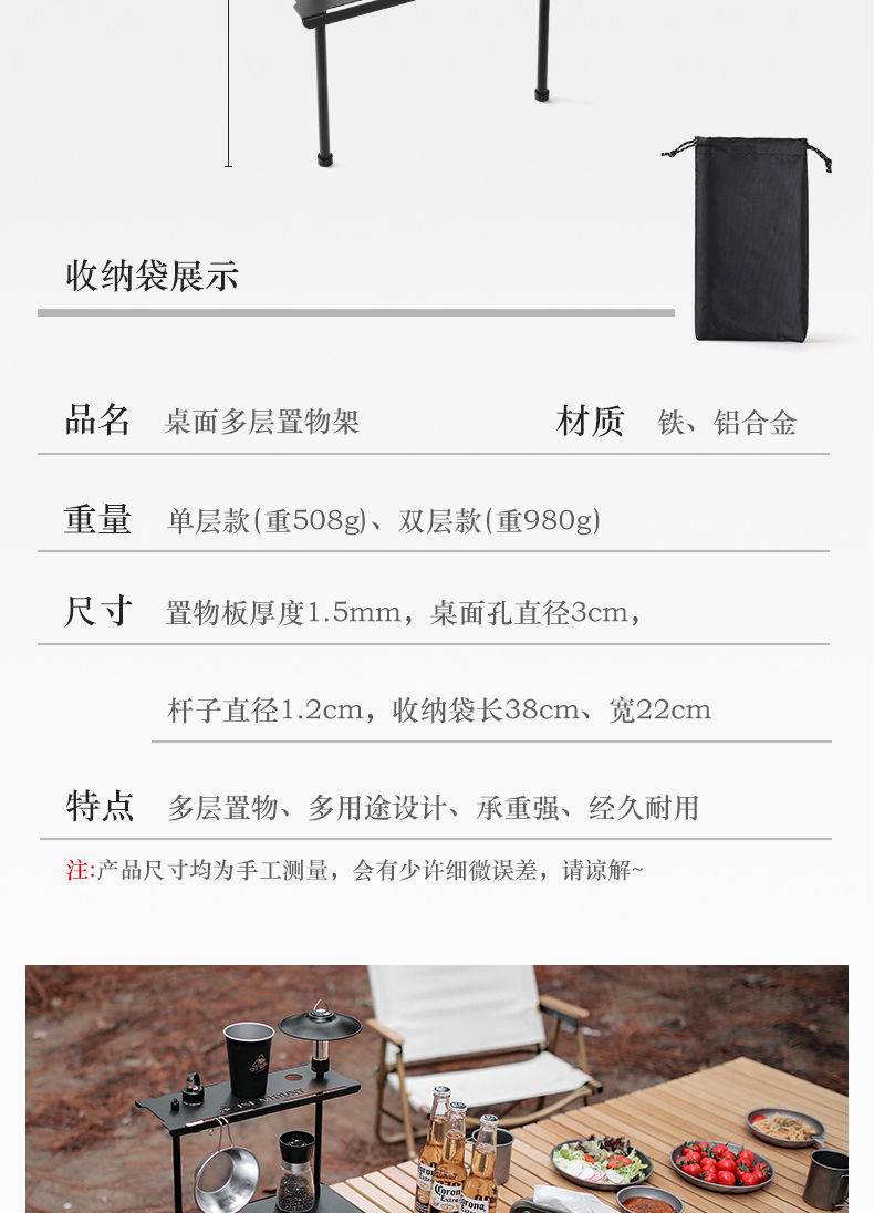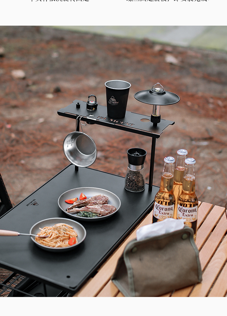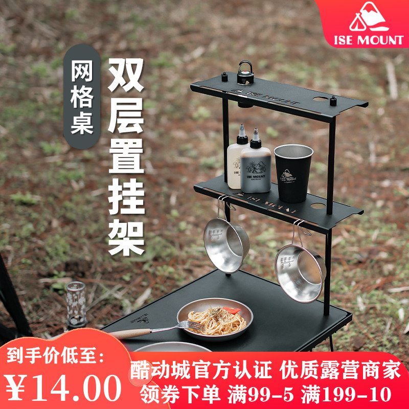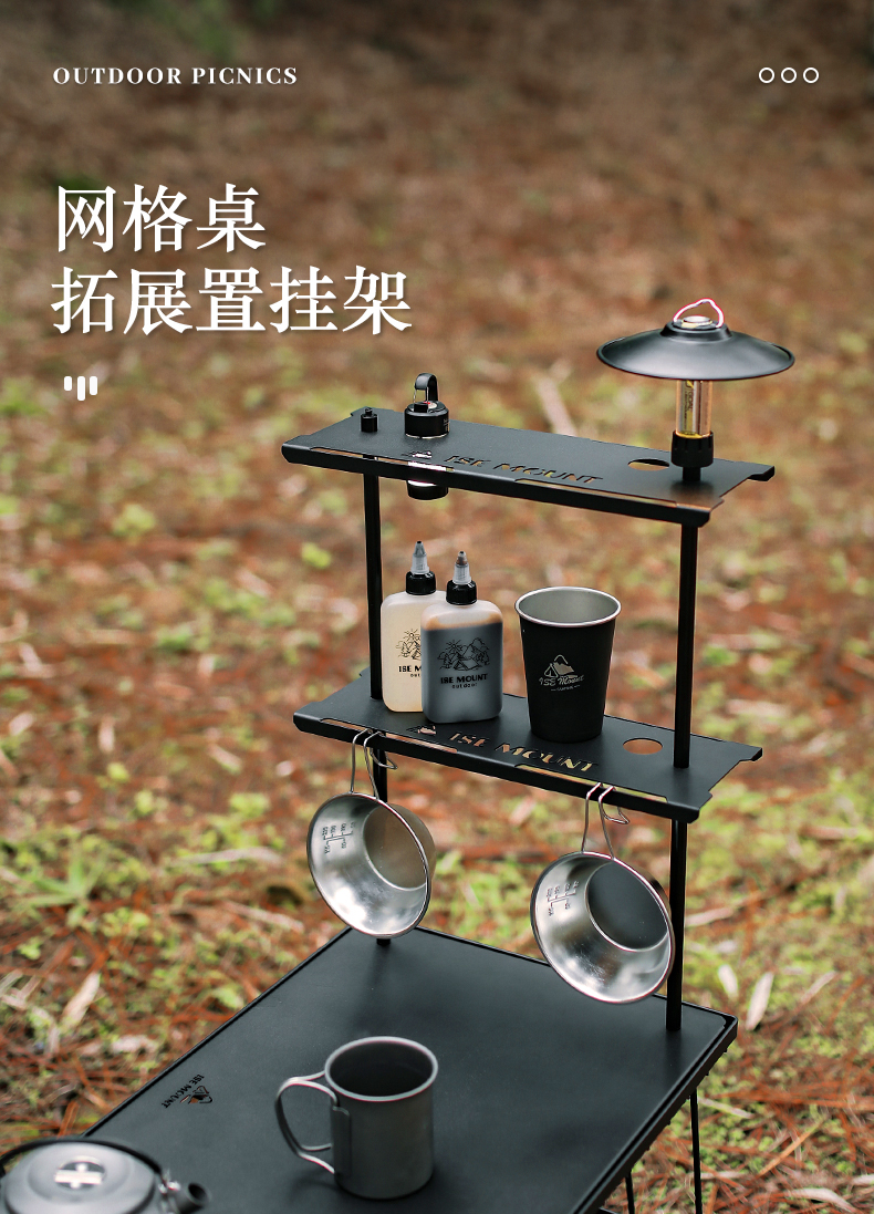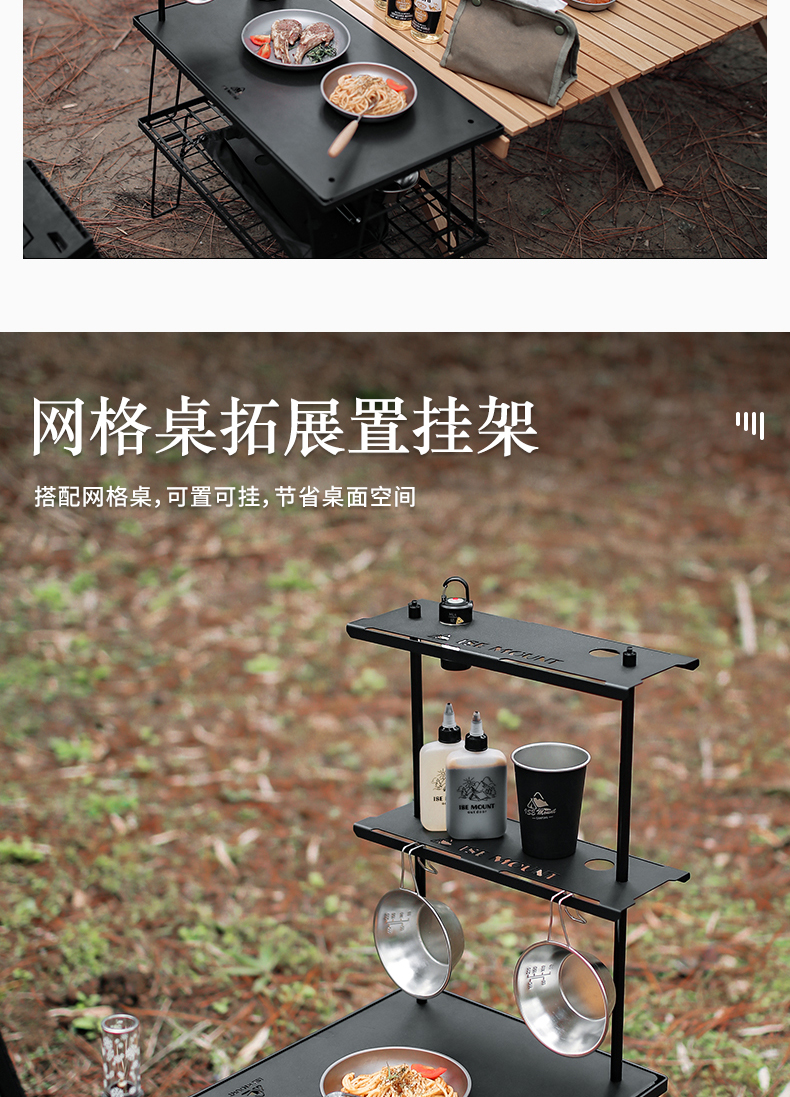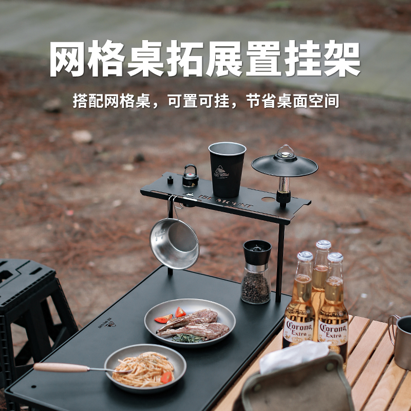 戶外網格桌支架單雙層託盤可拆卸鋼板露營可攜式多功能桌面置物架