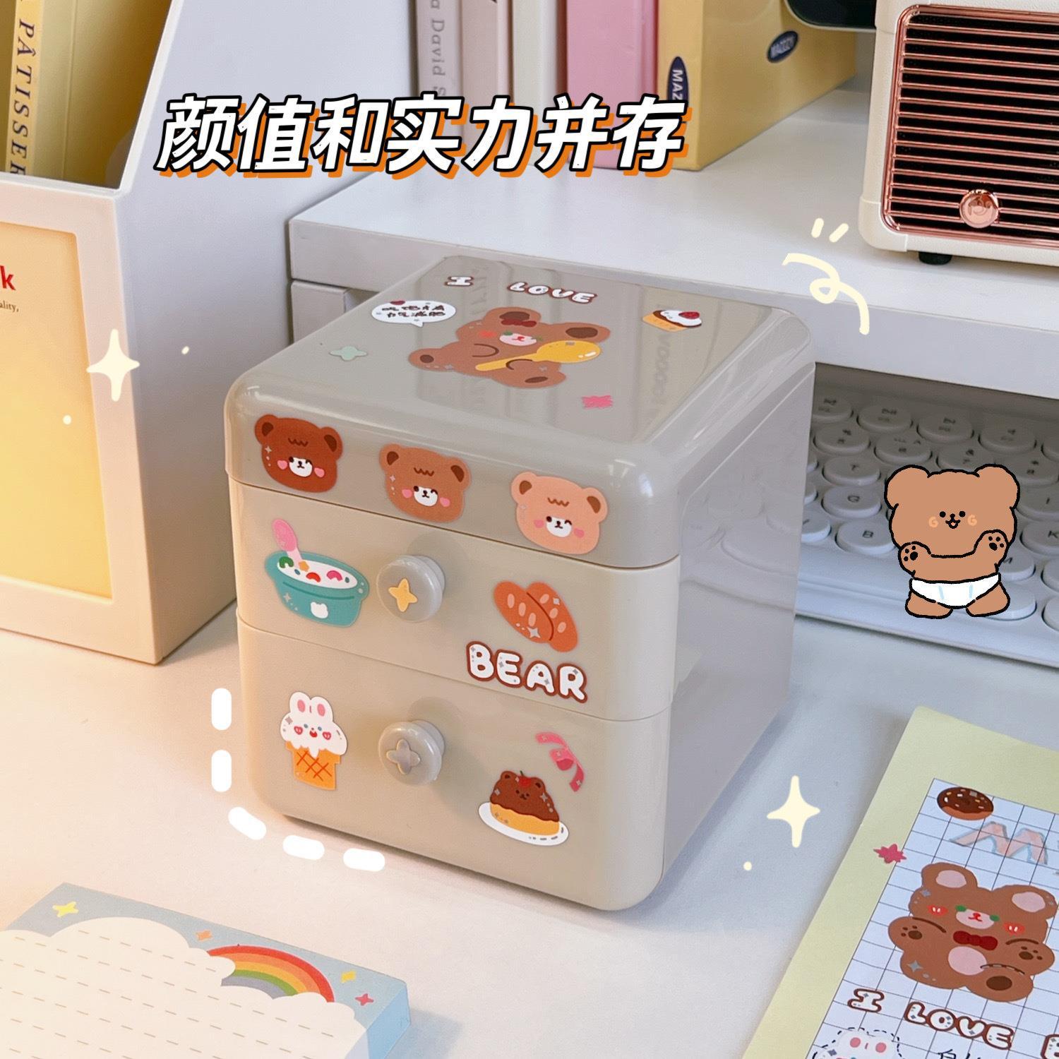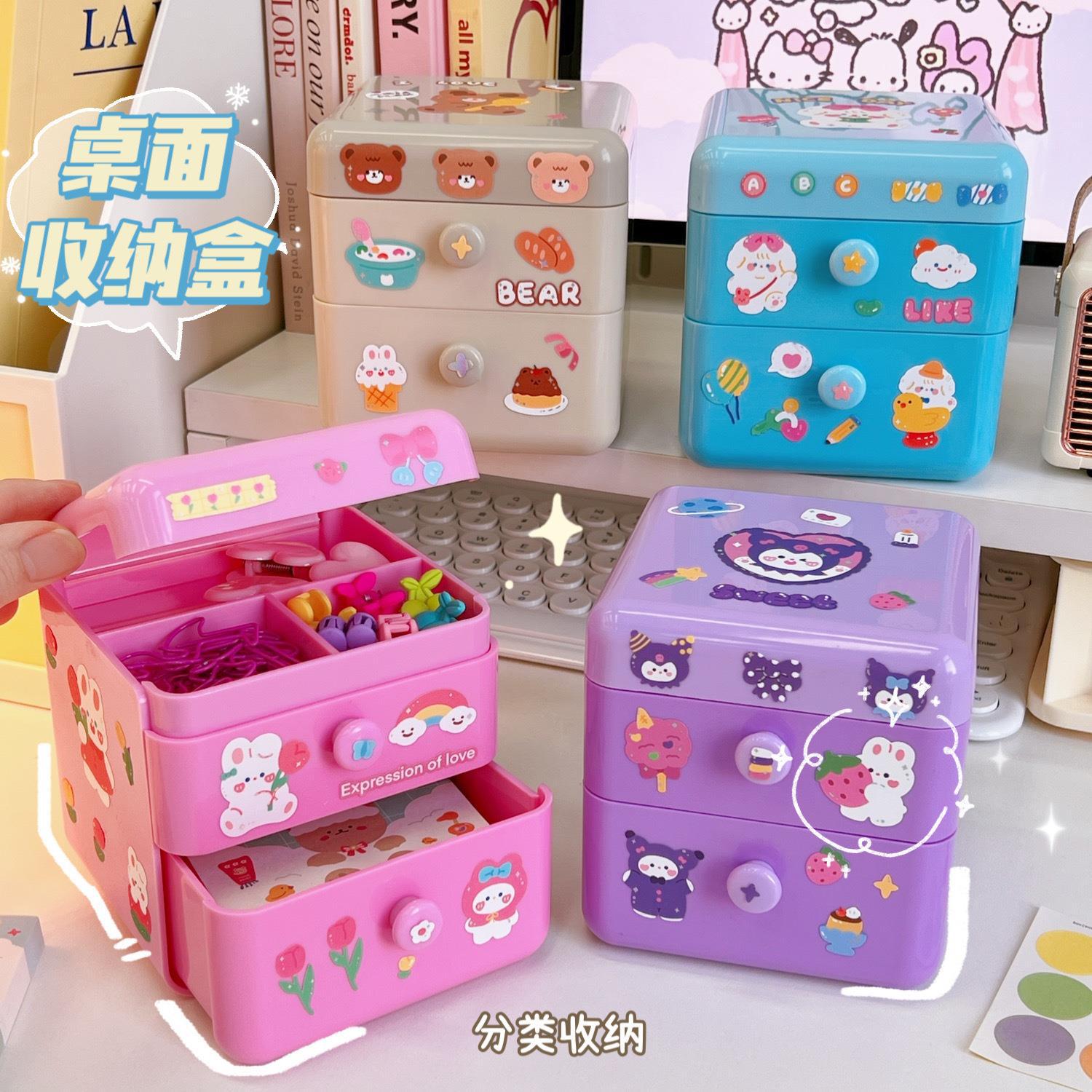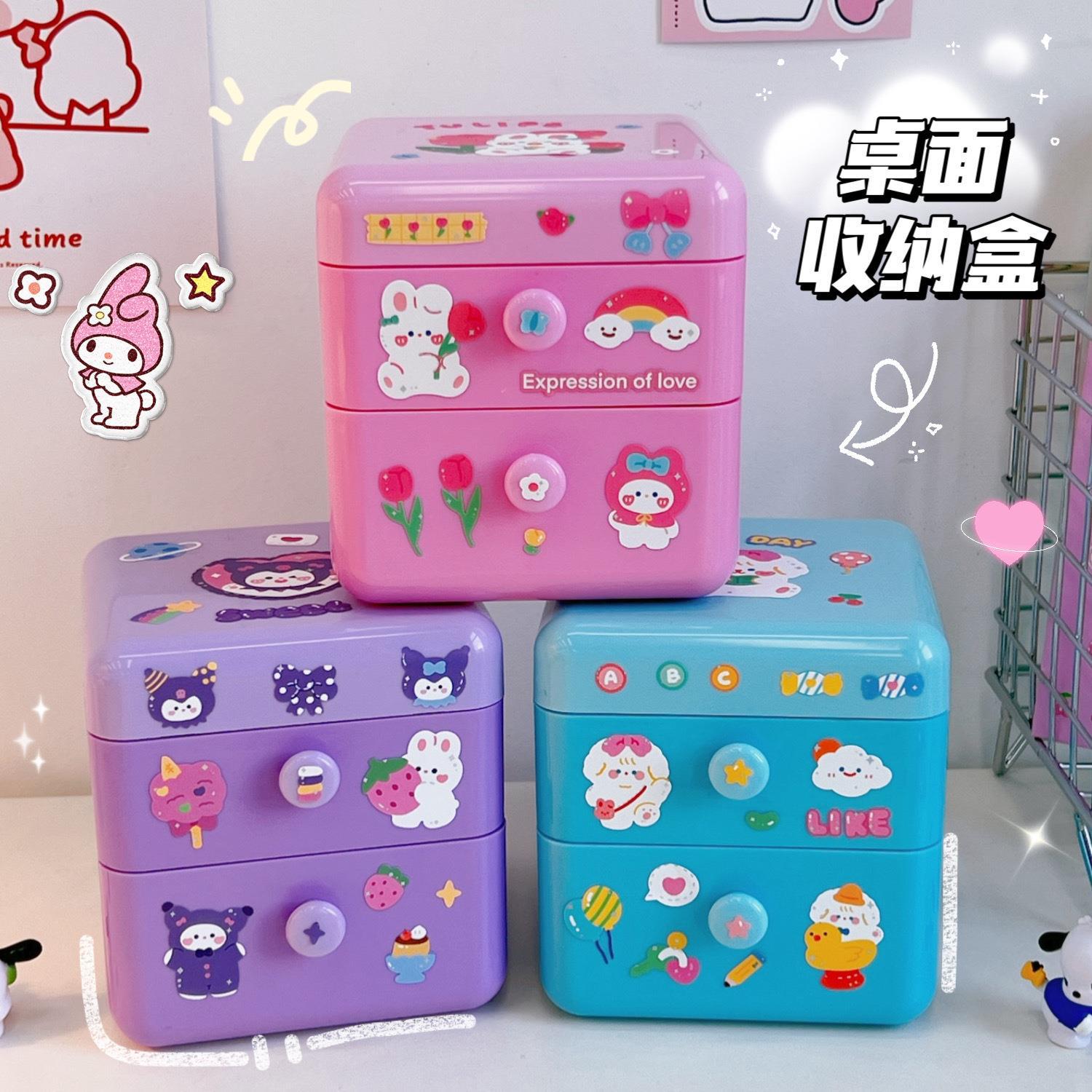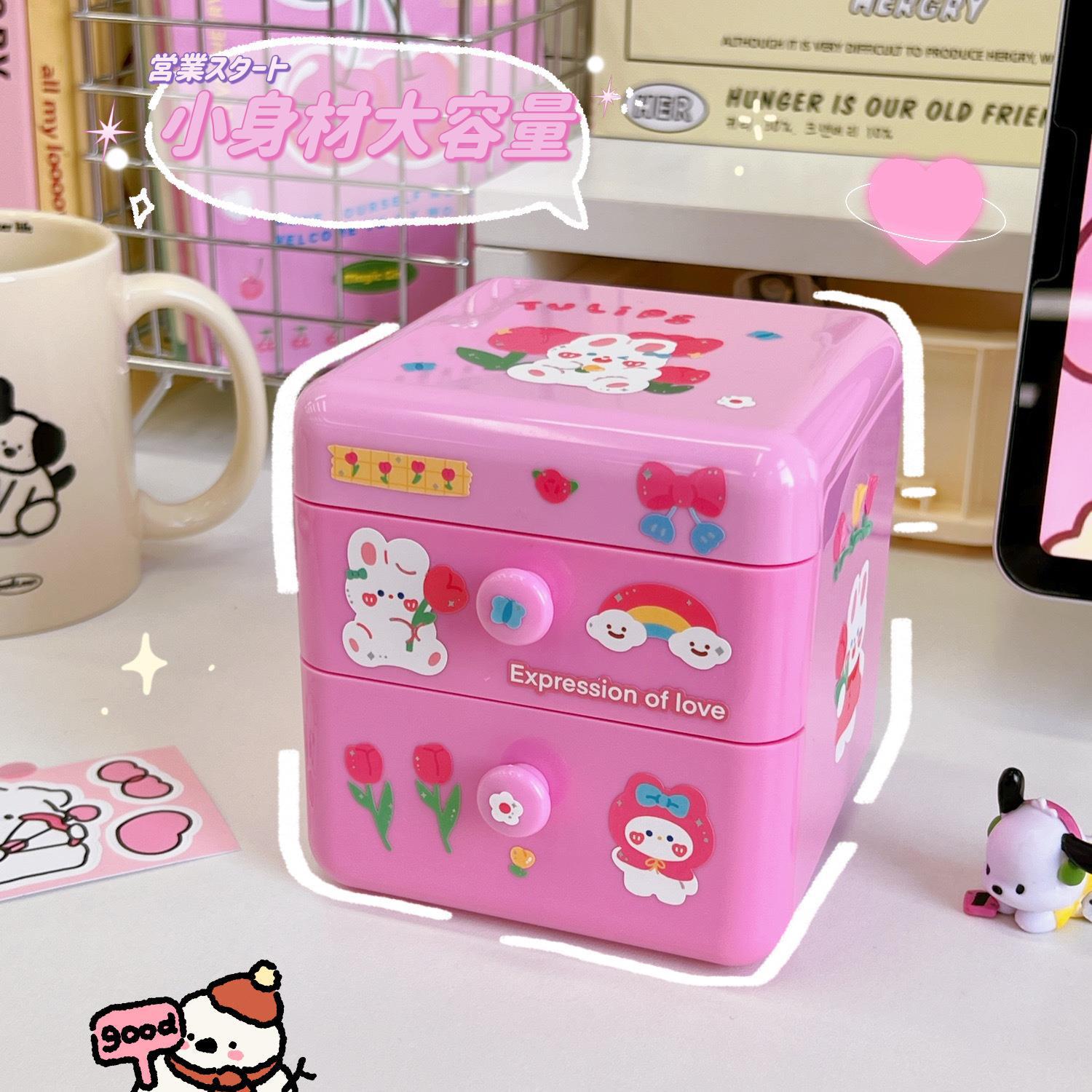 可爱创意学生桌面文具收纳盒ins时尚多功能家用翻盖带抽屉储物盒