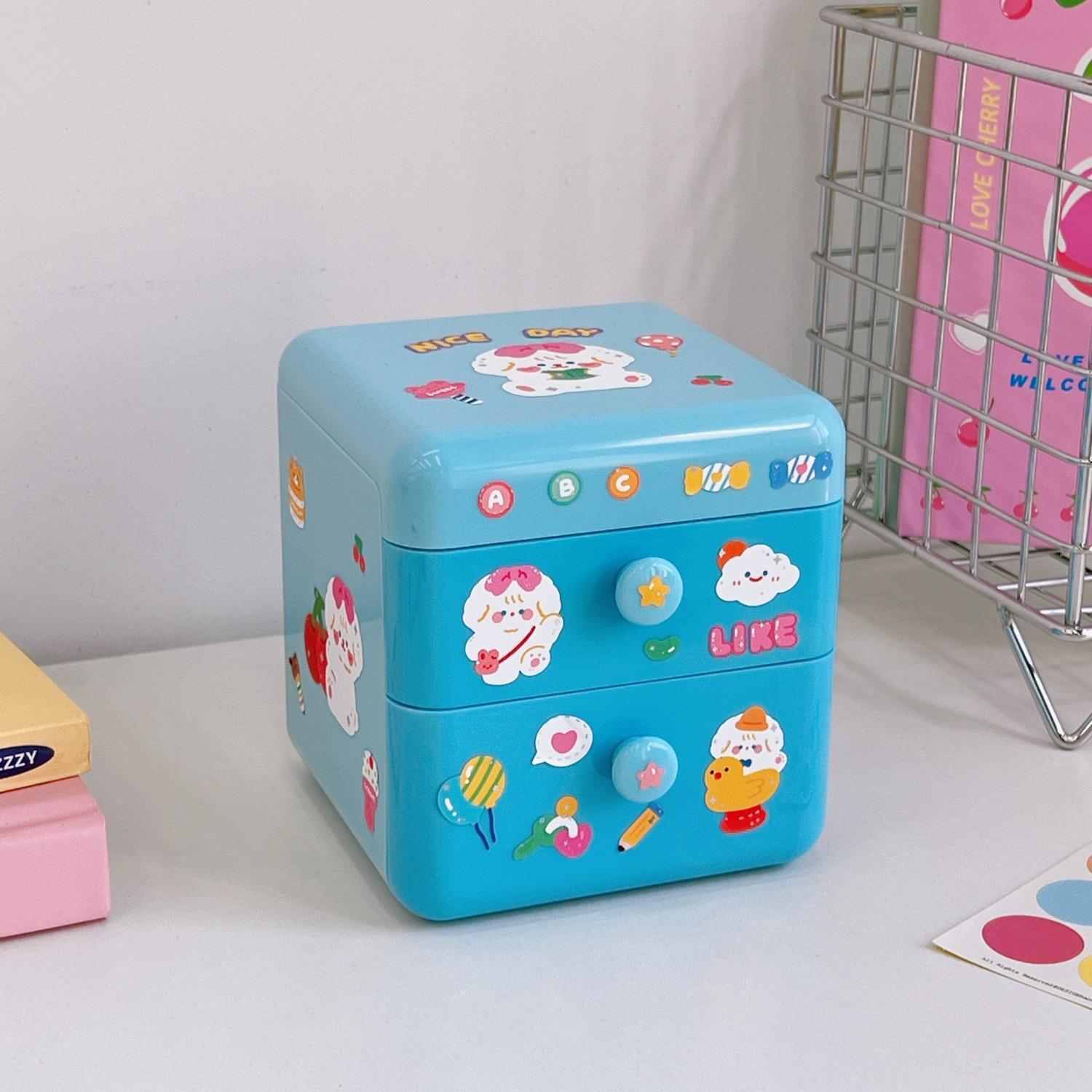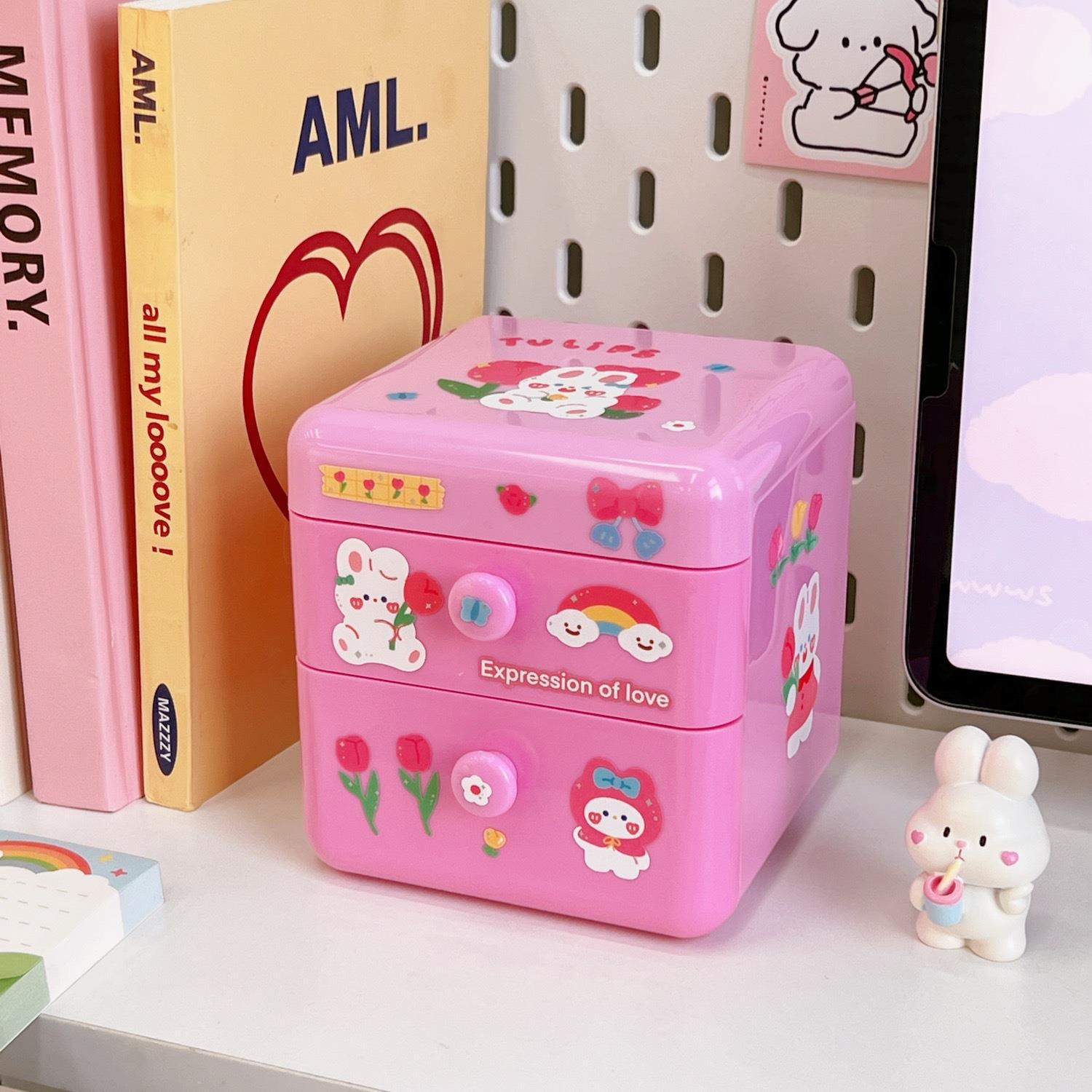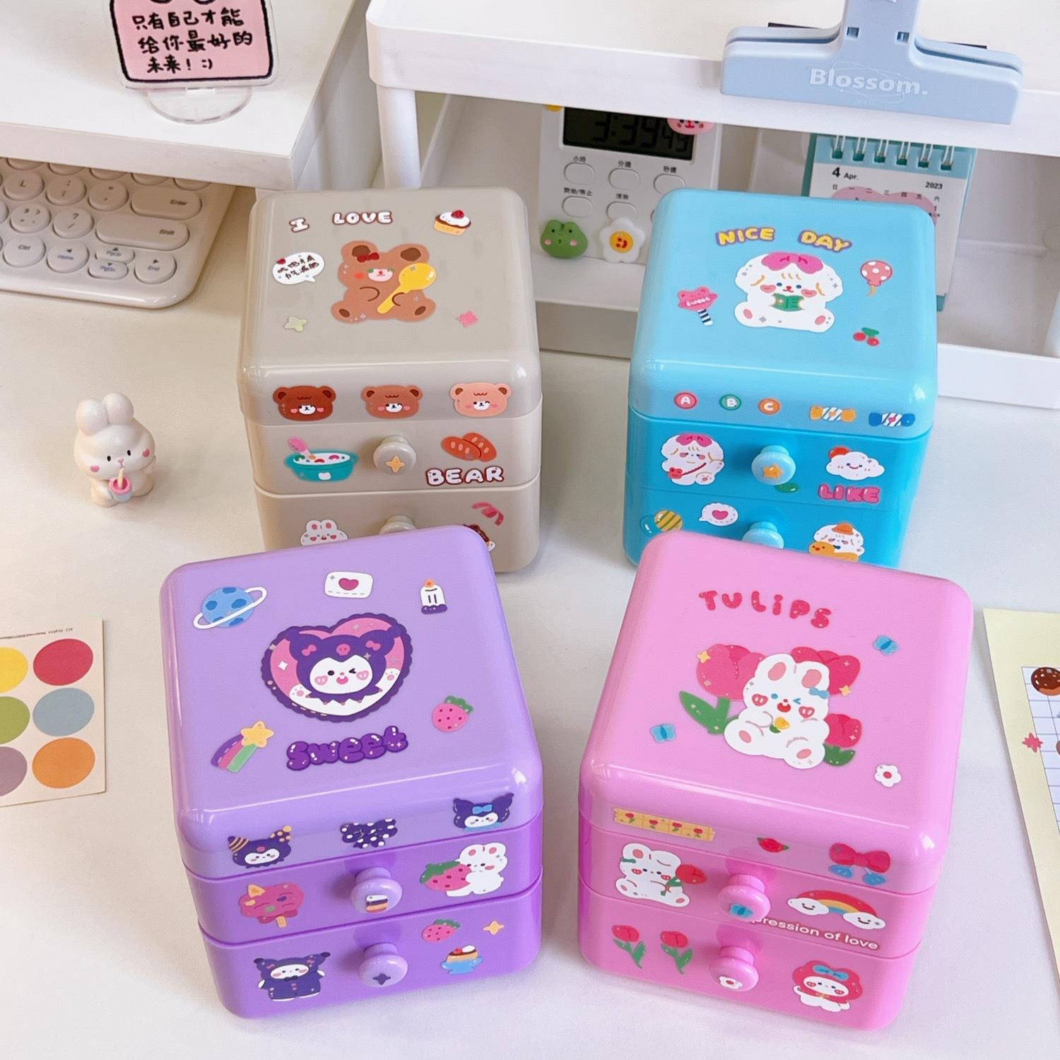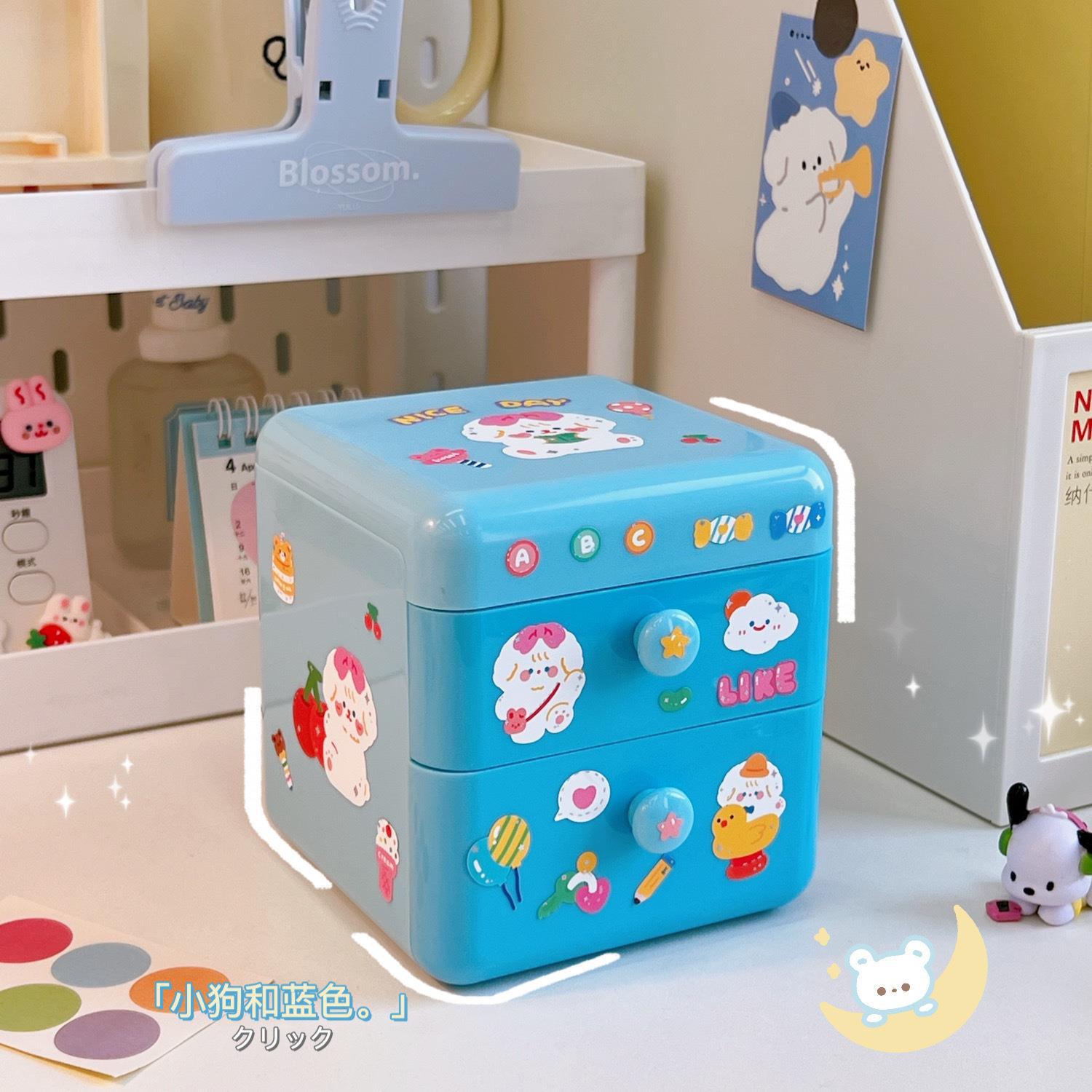 可爱创意学生桌面文具收纳盒ins时尚多功能家用翻盖带抽屉储物盒