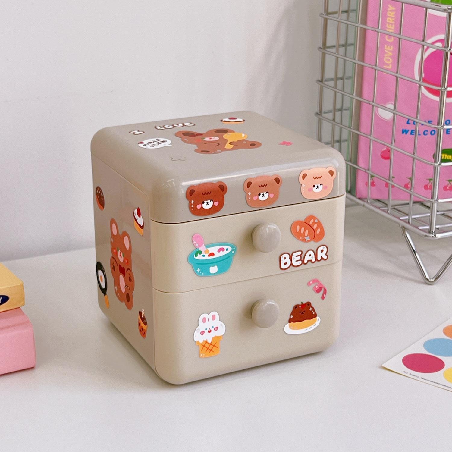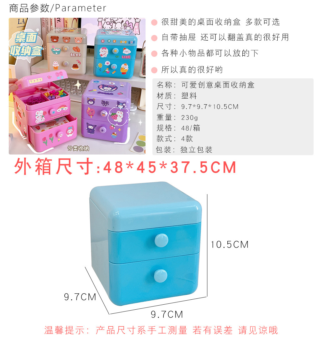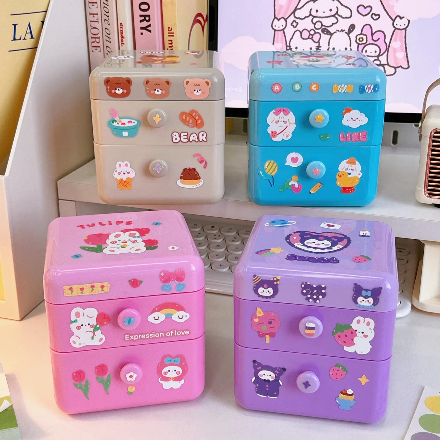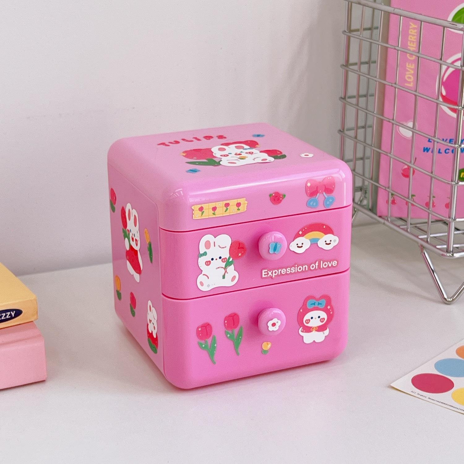 可爱创意学生桌面文具收纳盒ins时尚多功能家用翻盖带抽屉储物盒
