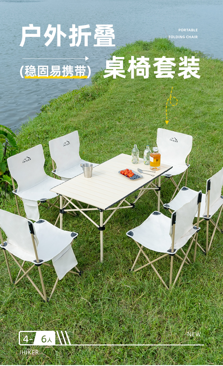 戶外摺疊桌椅蛋卷桌可攜式野餐桌椅擺攤桌子露營裝備全套用品套裝