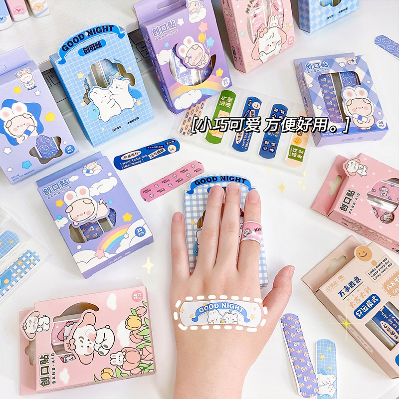 卡通防水创口贴20枚入盒装OK绷高颜值可爱学生随身装饰贴批发