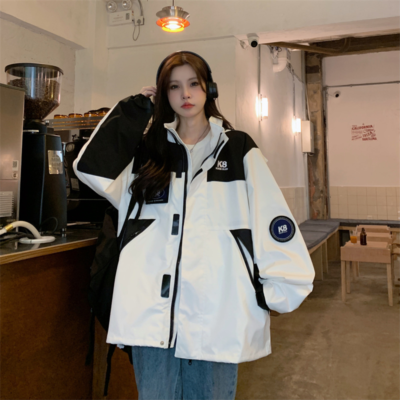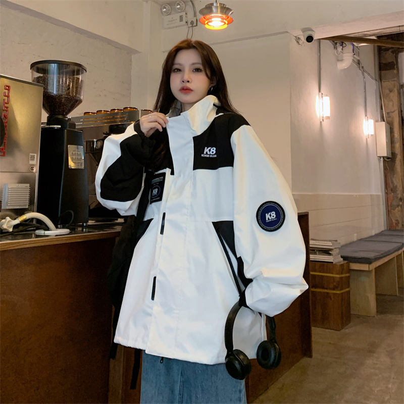 大尺碼2-300斤白色雙層外套白色衝鋒衣外套女秋冬季加棉戶外夾克