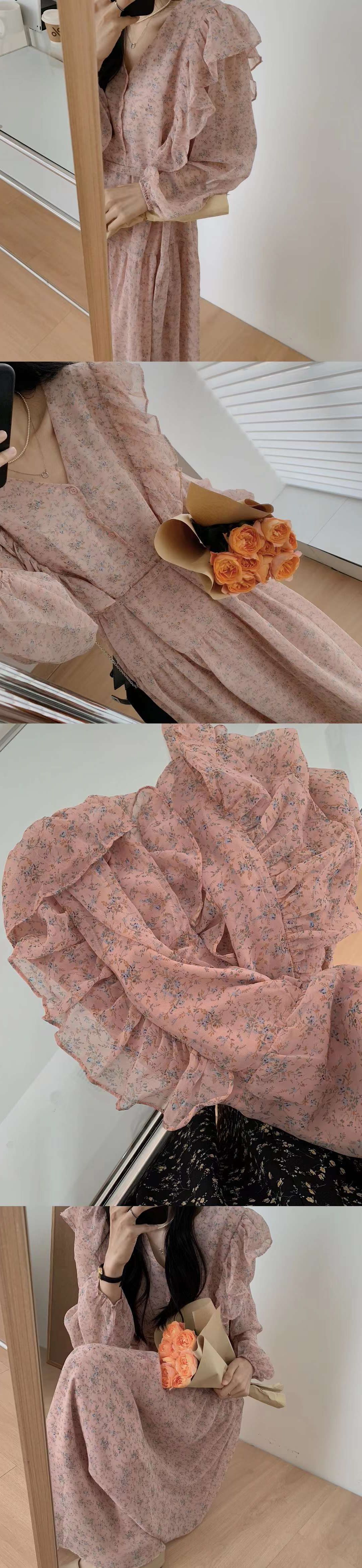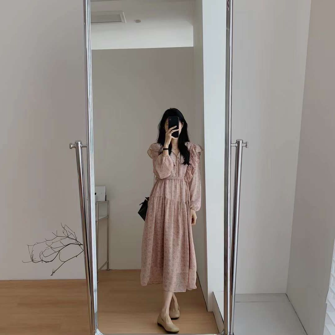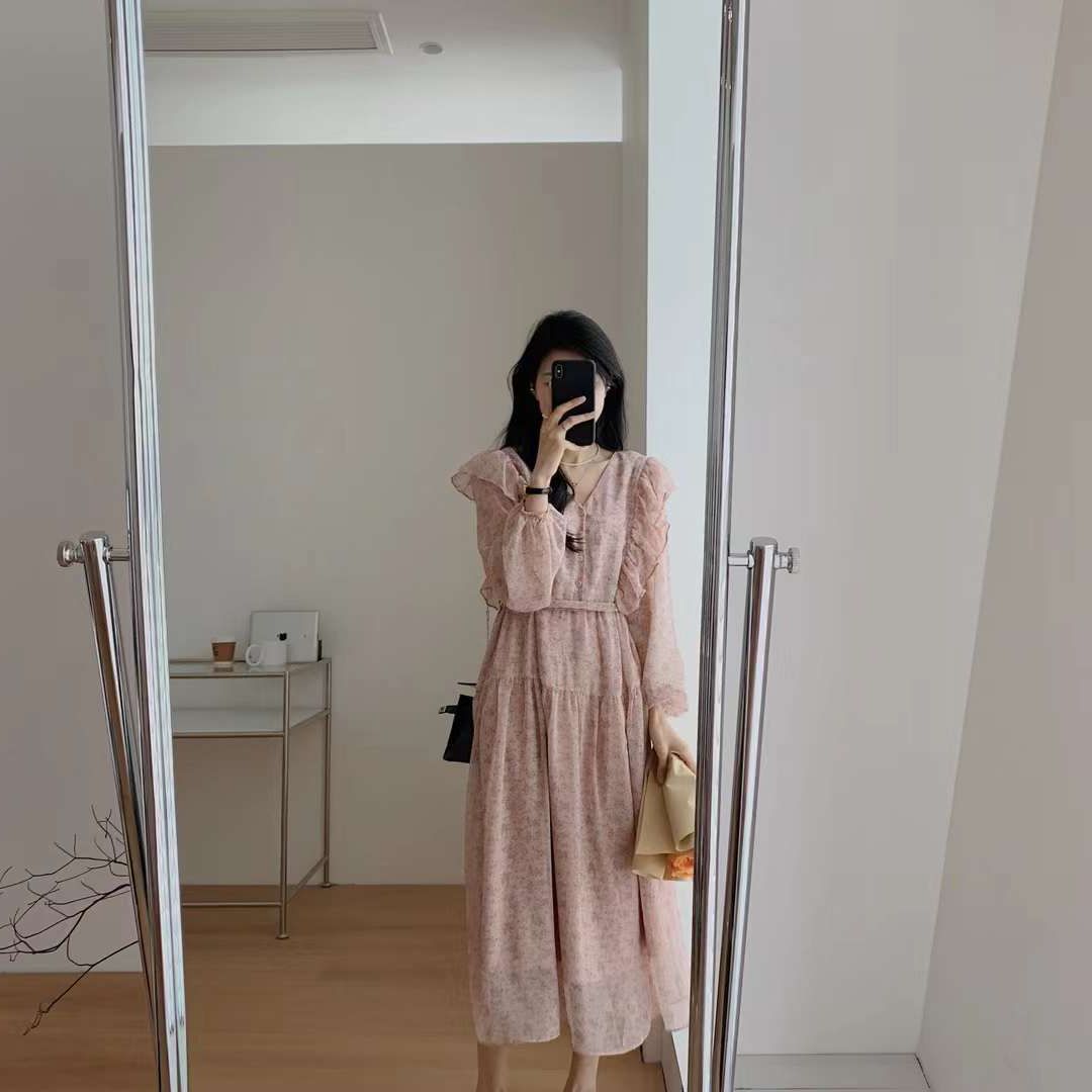 2023春季女装新款茶歇法式气质长裙子温柔显瘦仙女雪纺碎花连衣裙