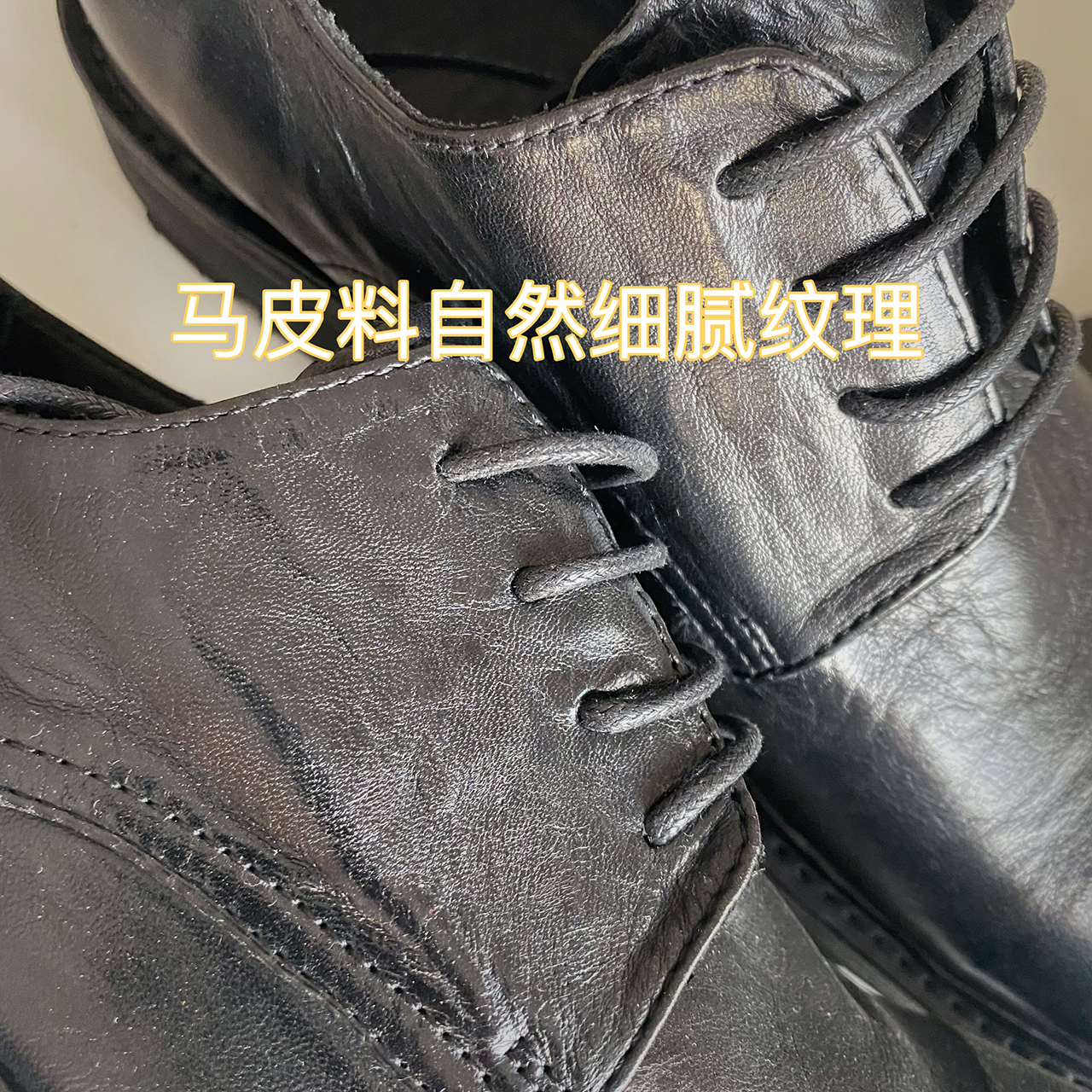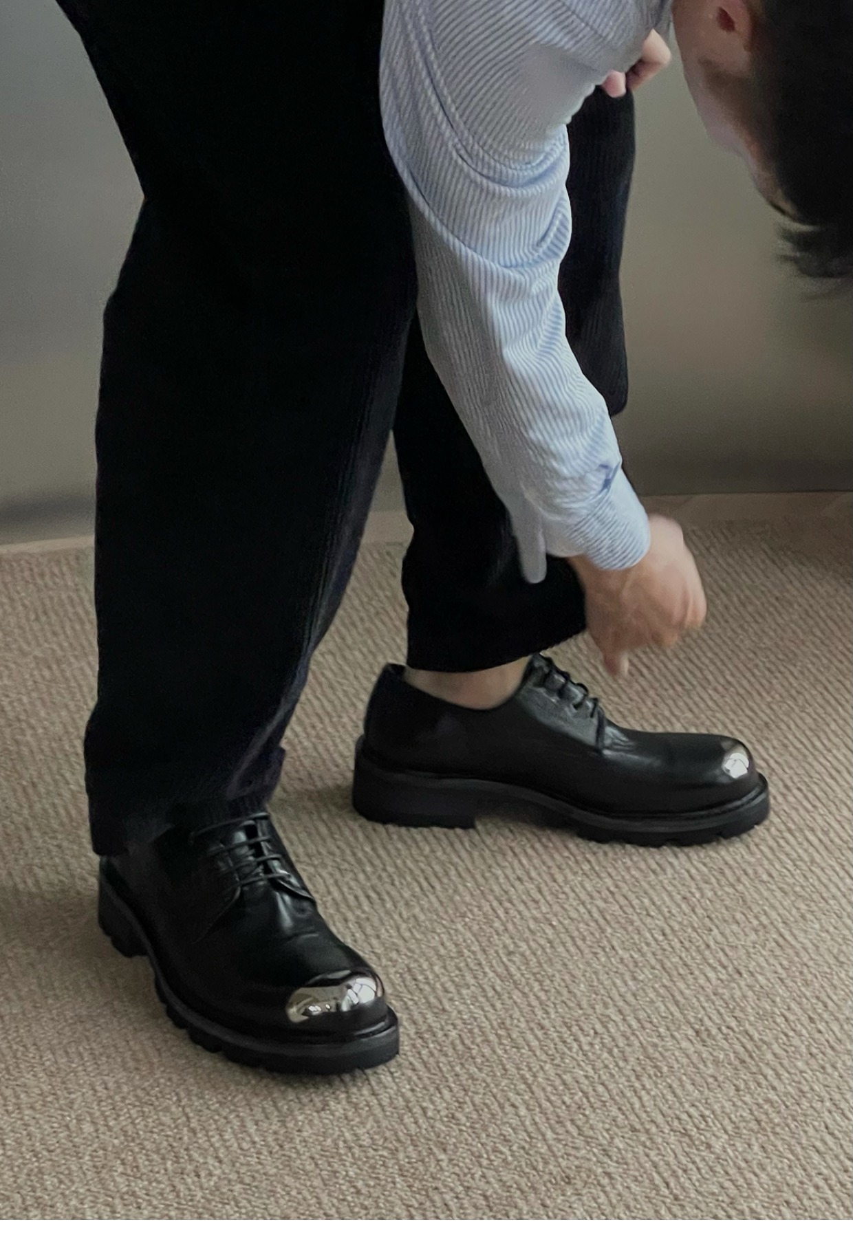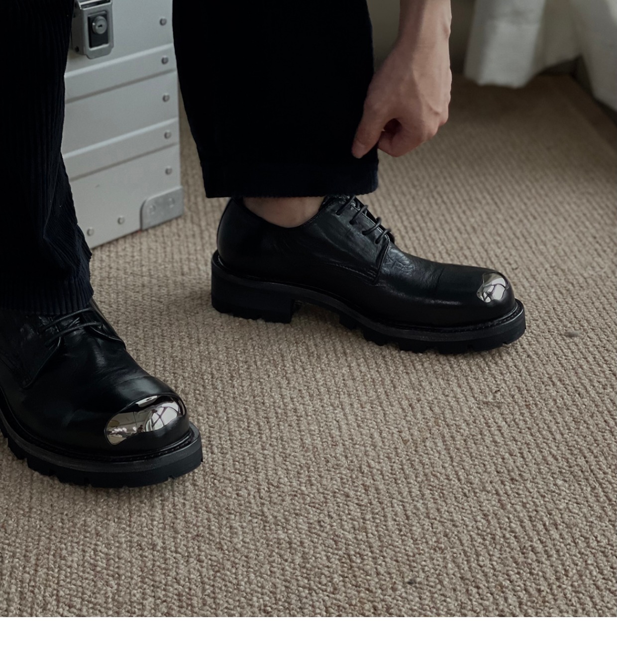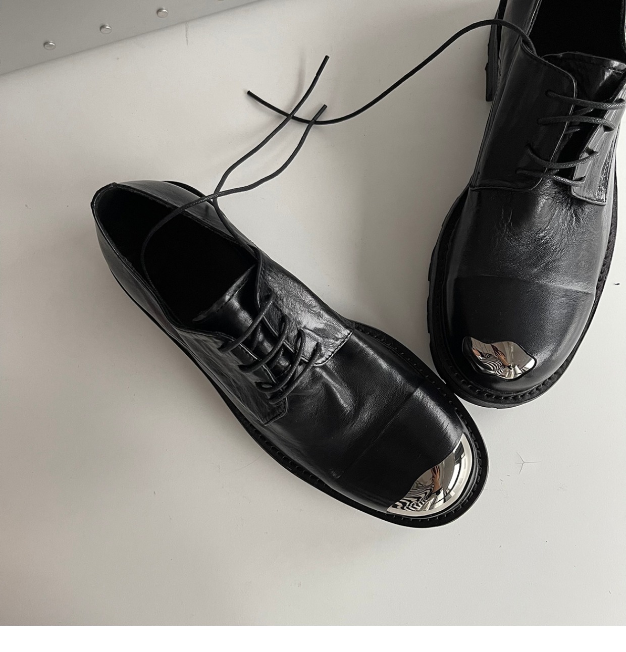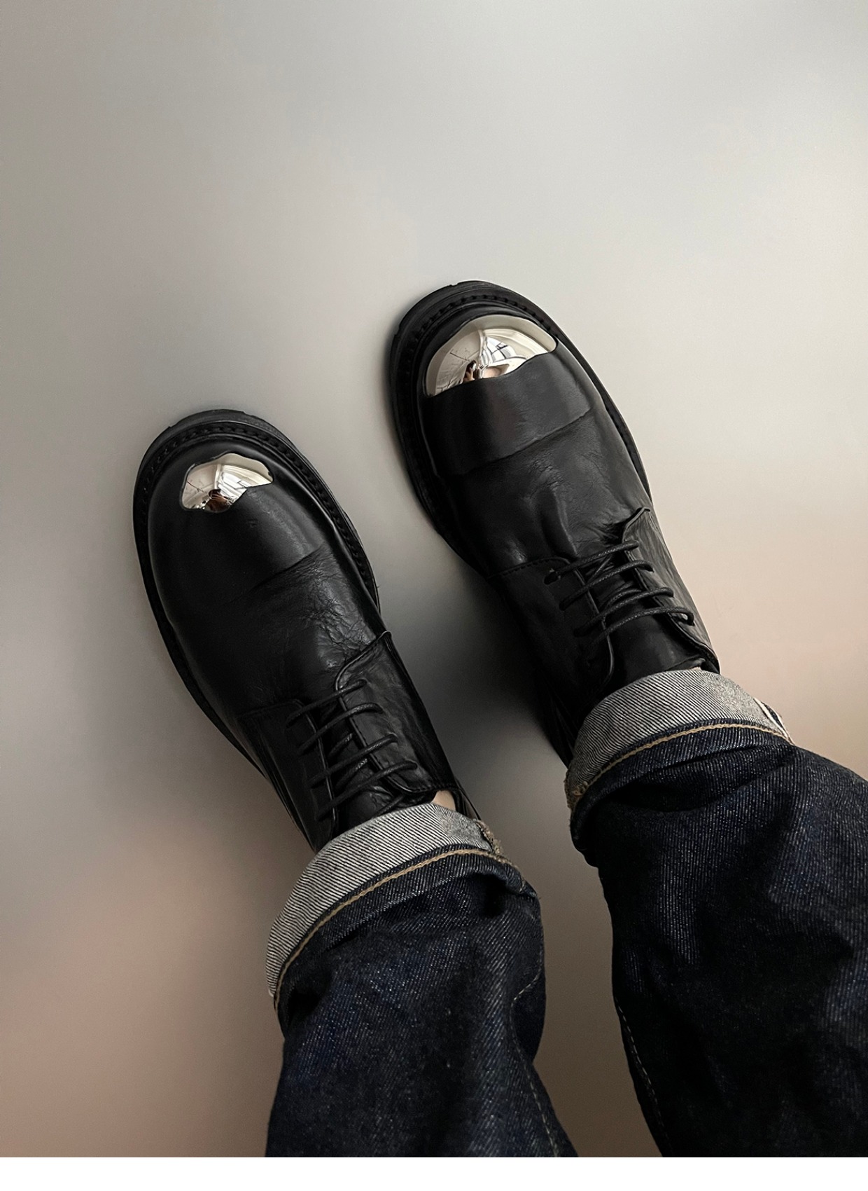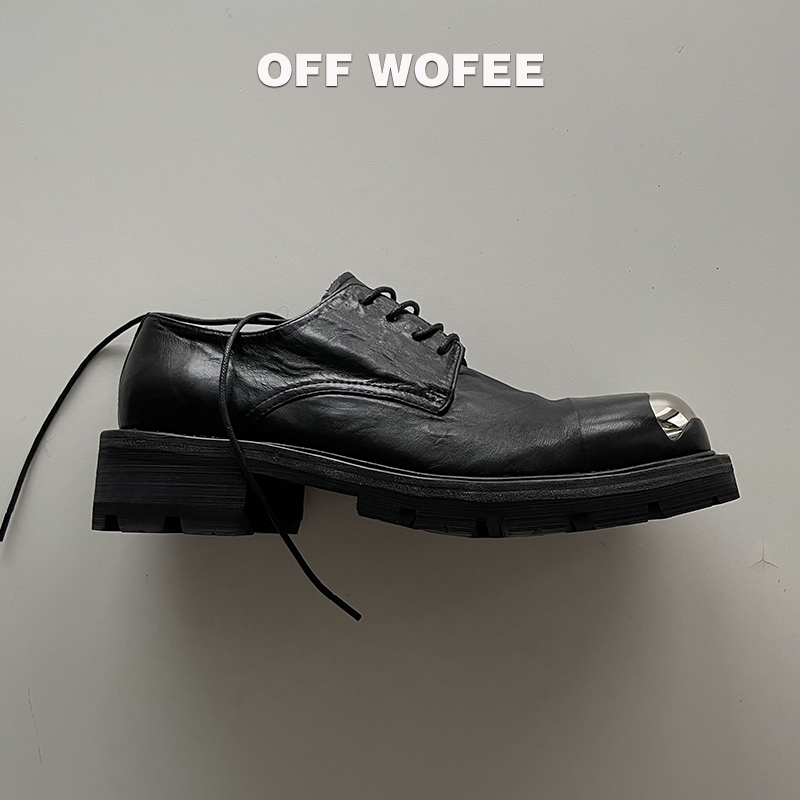 OFFWOFEE暗黑風鐵頭德比鞋圓頭皮鞋重工水洗馬皮vibe厚底鞋