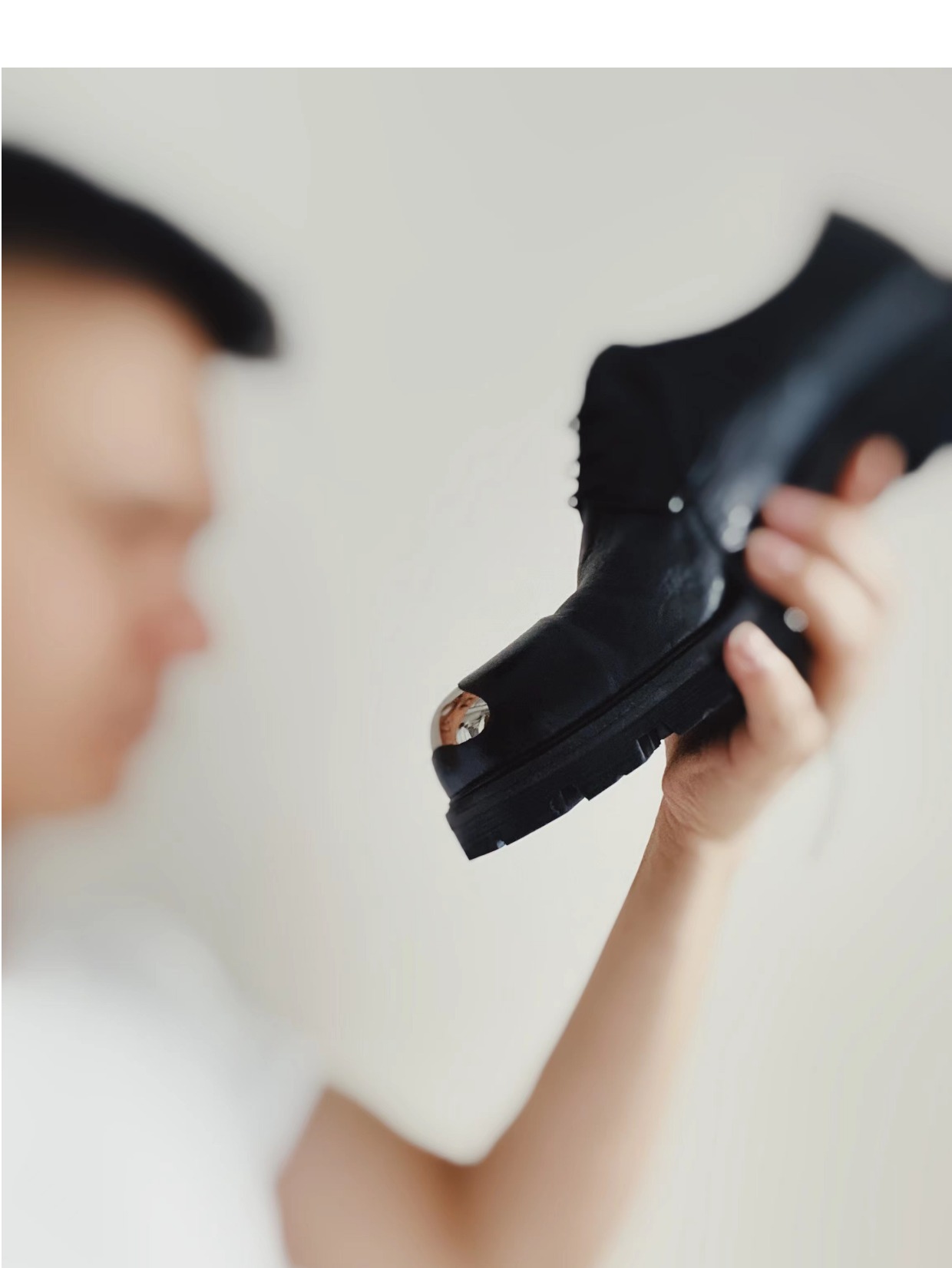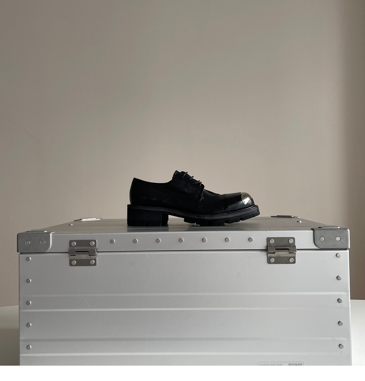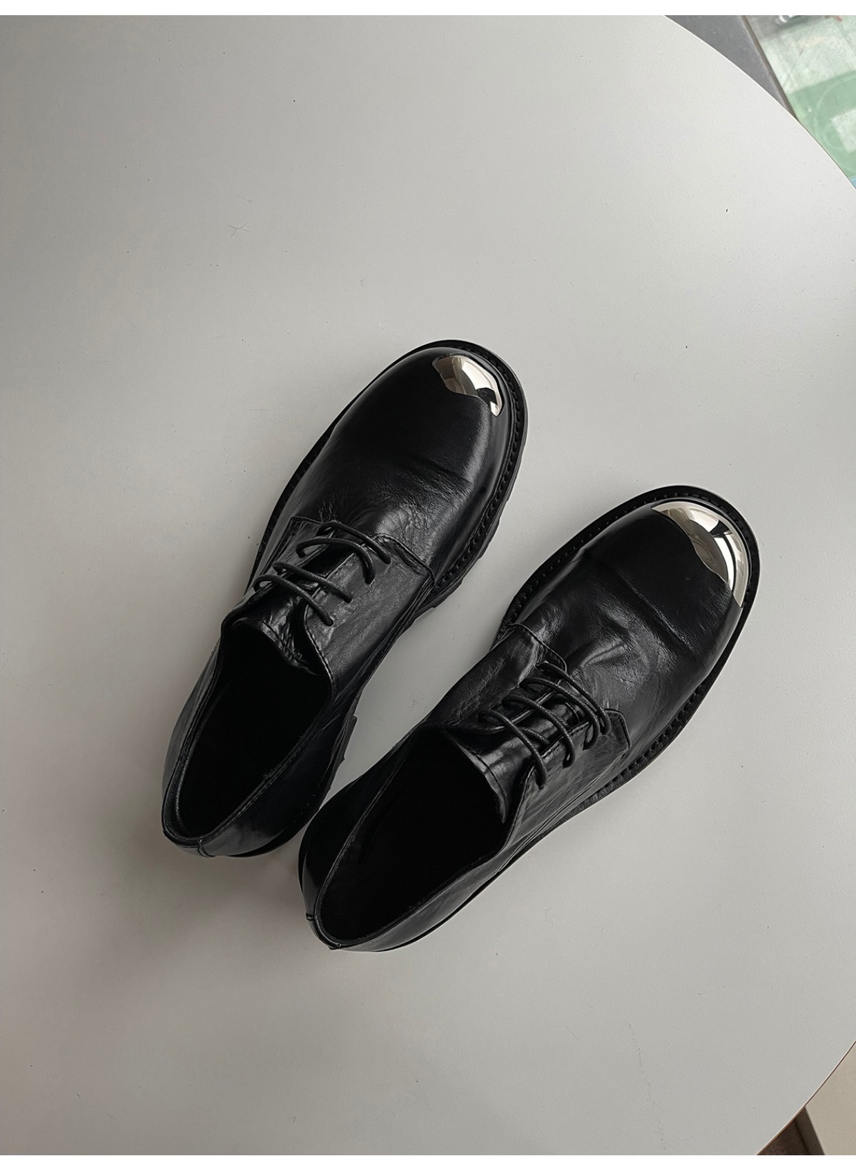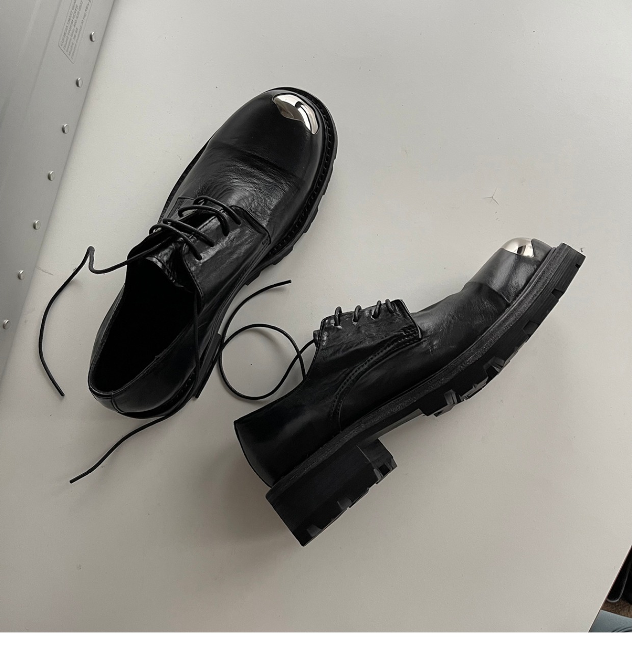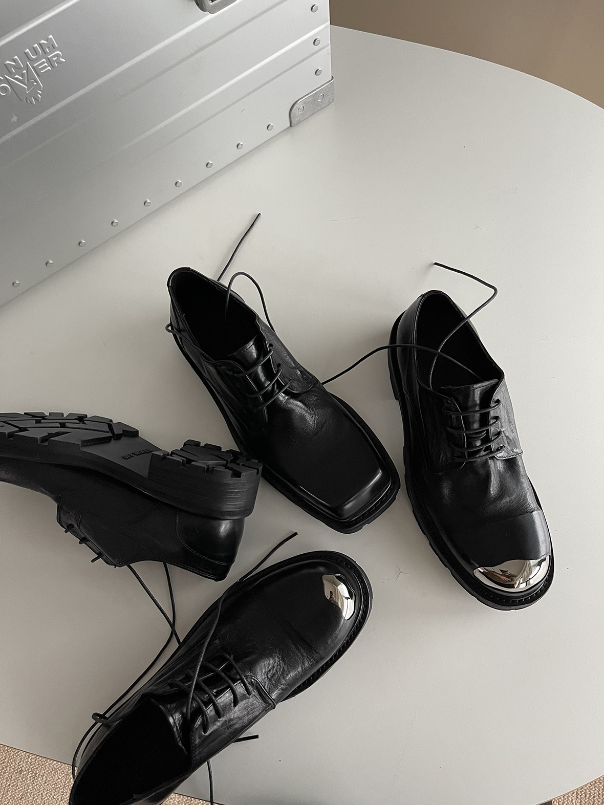 OFFWOFEE暗黑風鐵頭德比鞋圓頭皮鞋重工水洗馬皮vibe厚底鞋