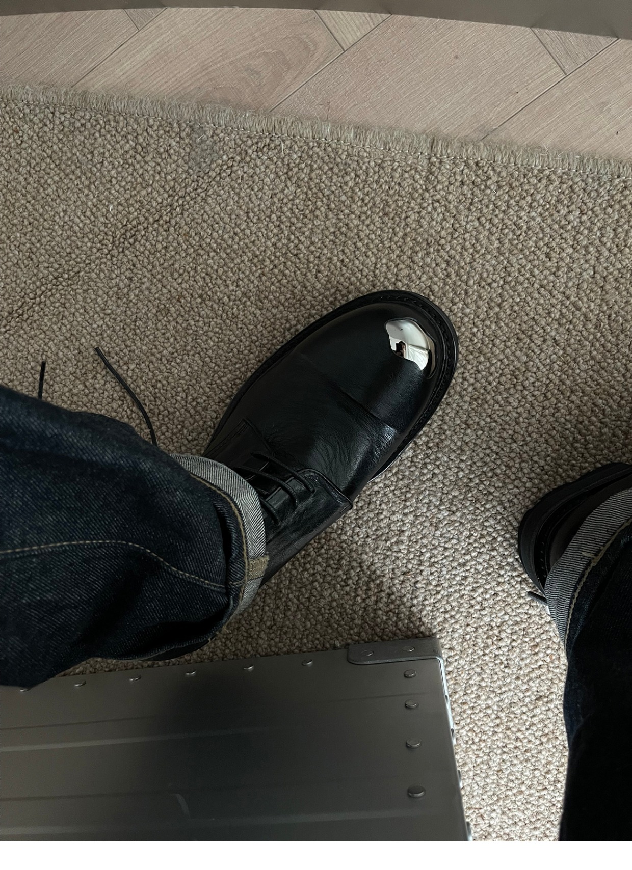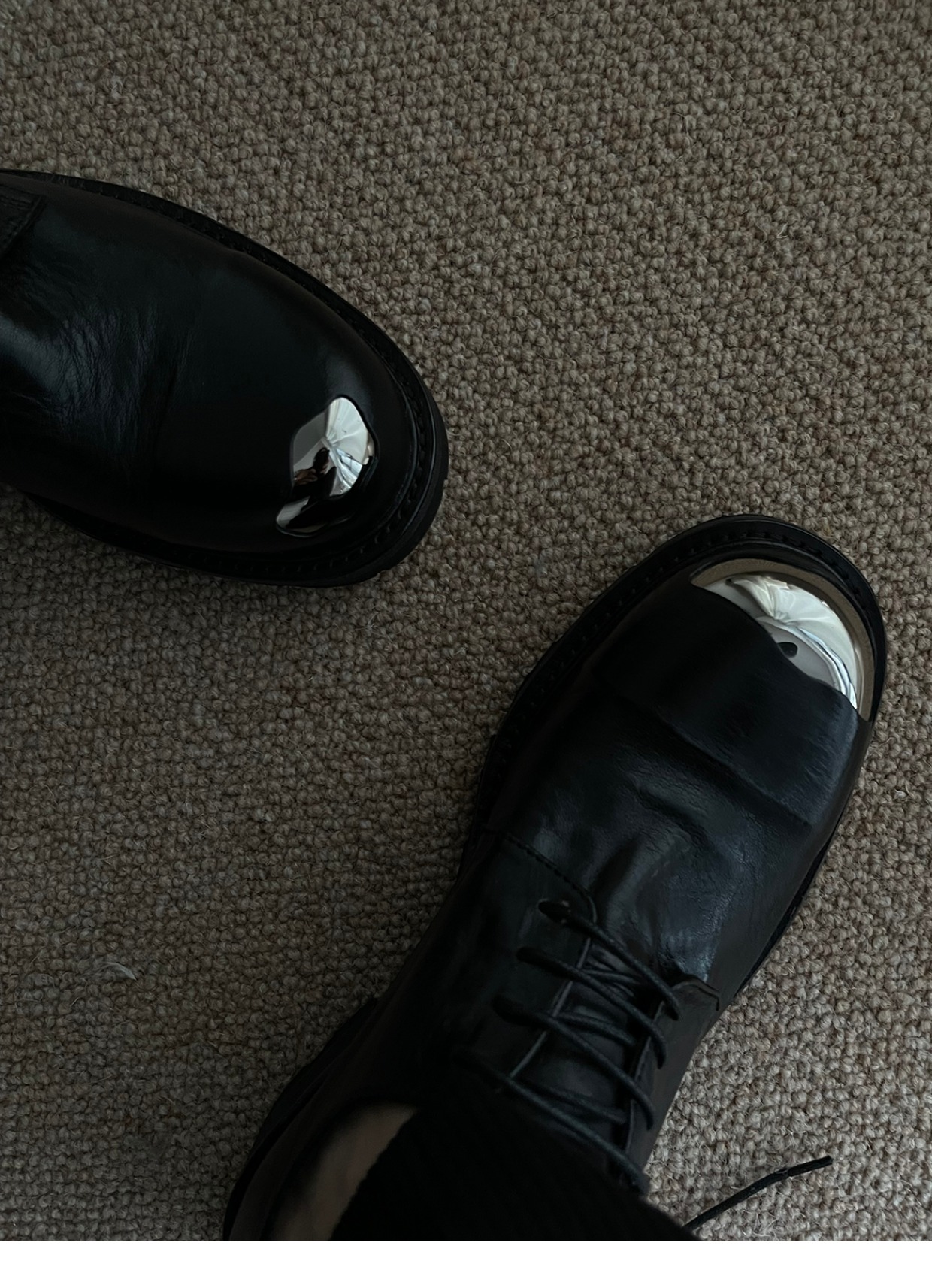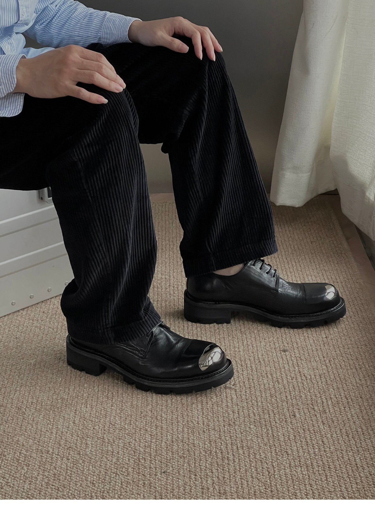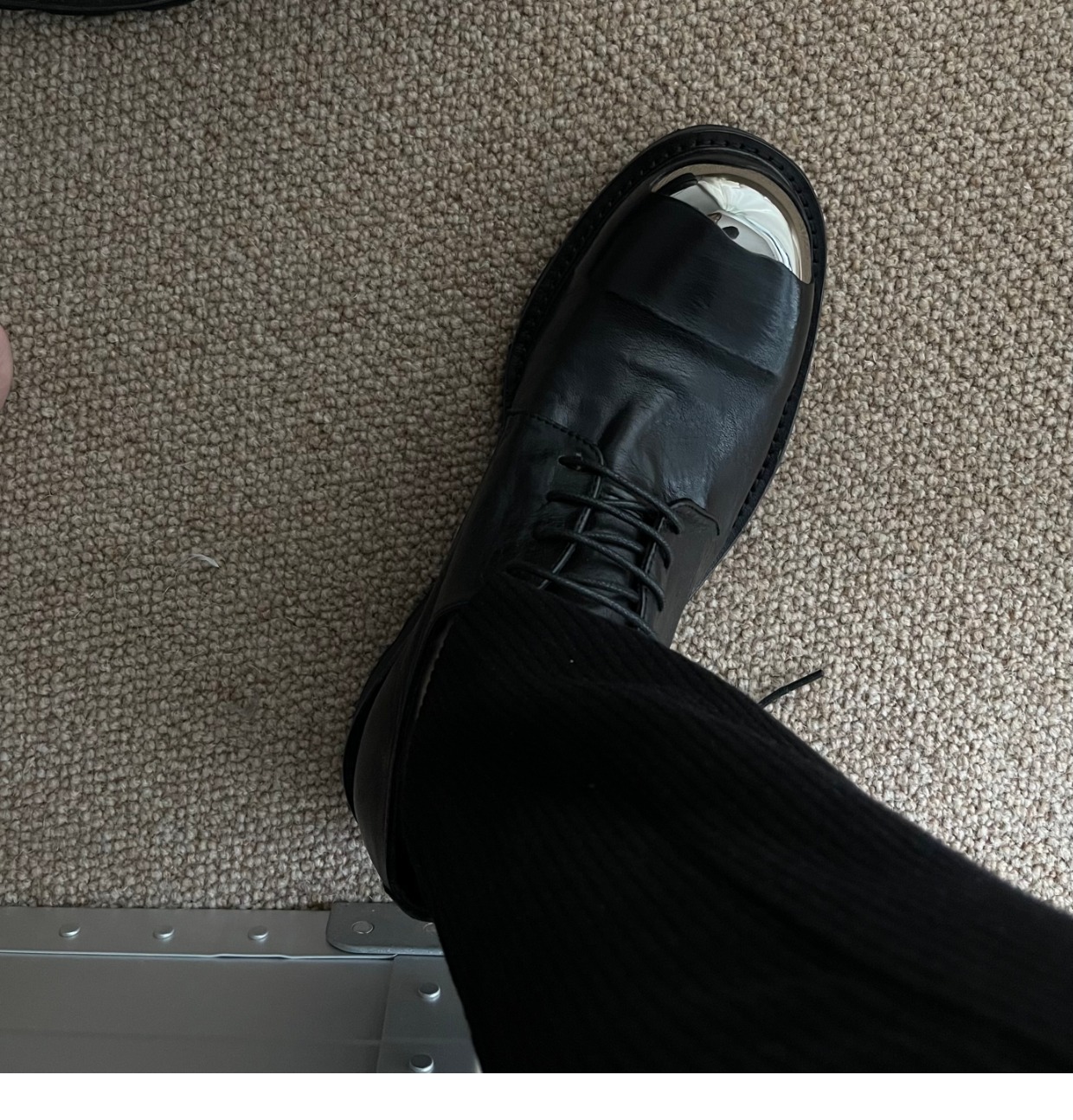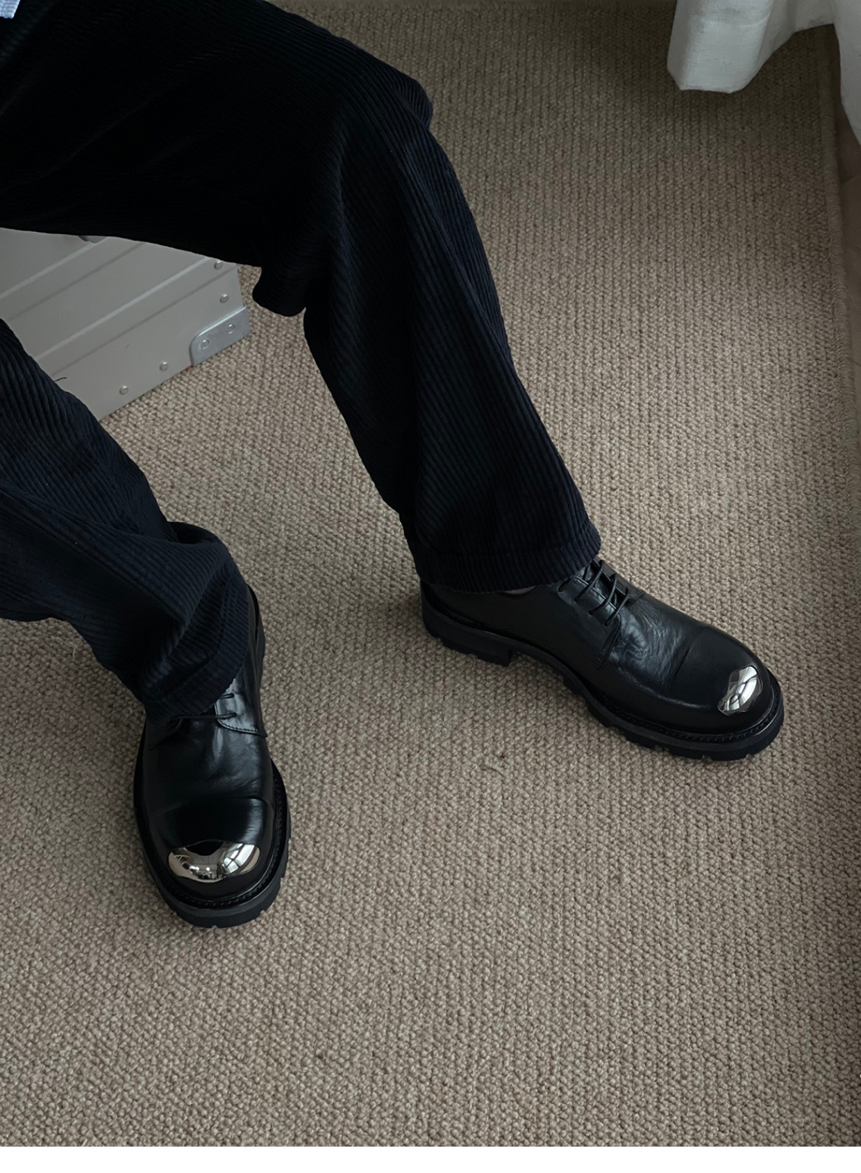 OFFWOFEE暗黑風鐵頭德比鞋圓頭皮鞋重工水洗馬皮vibe厚底鞋