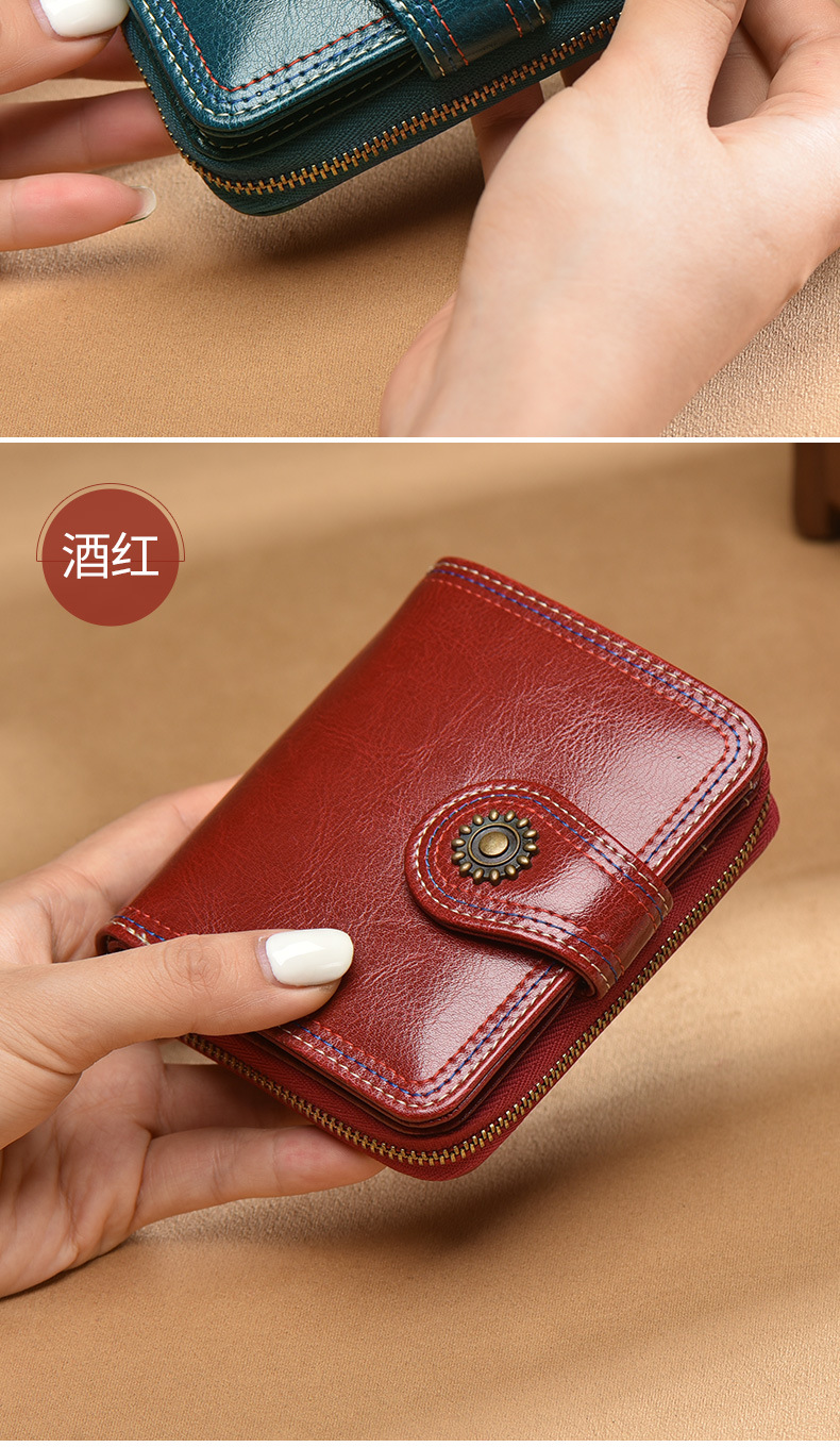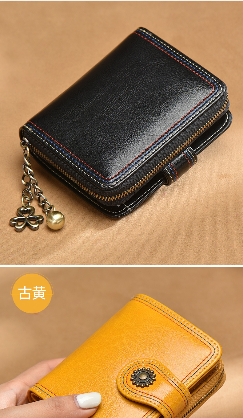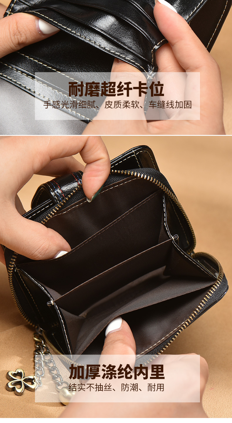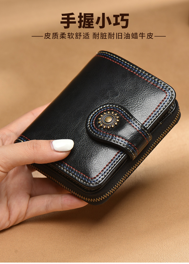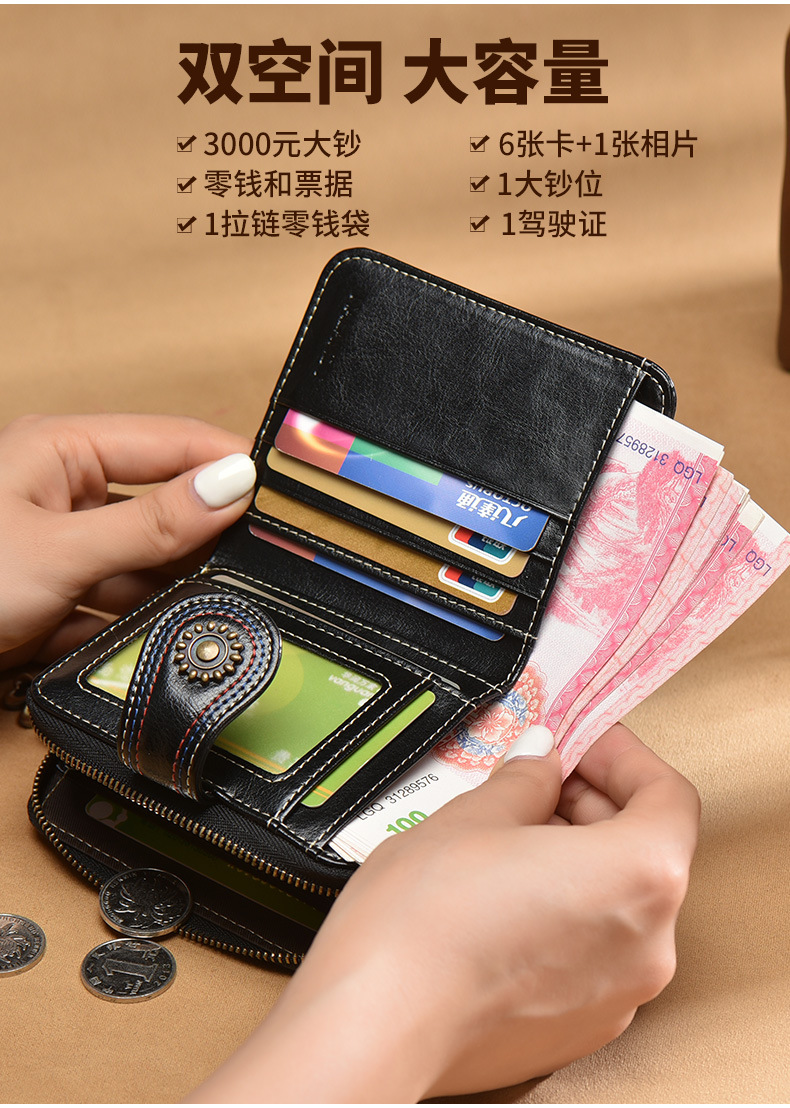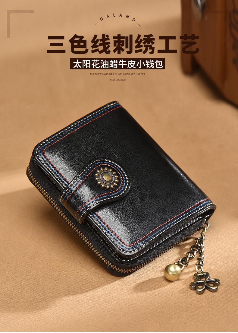 纳兰杜真牛皮短款钱包女新款折叠迷你小零钱包轻巧潮钱夹女