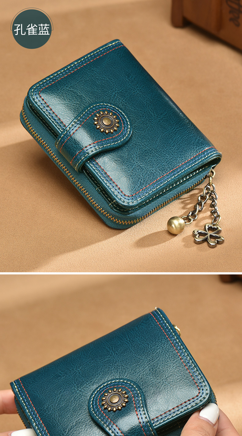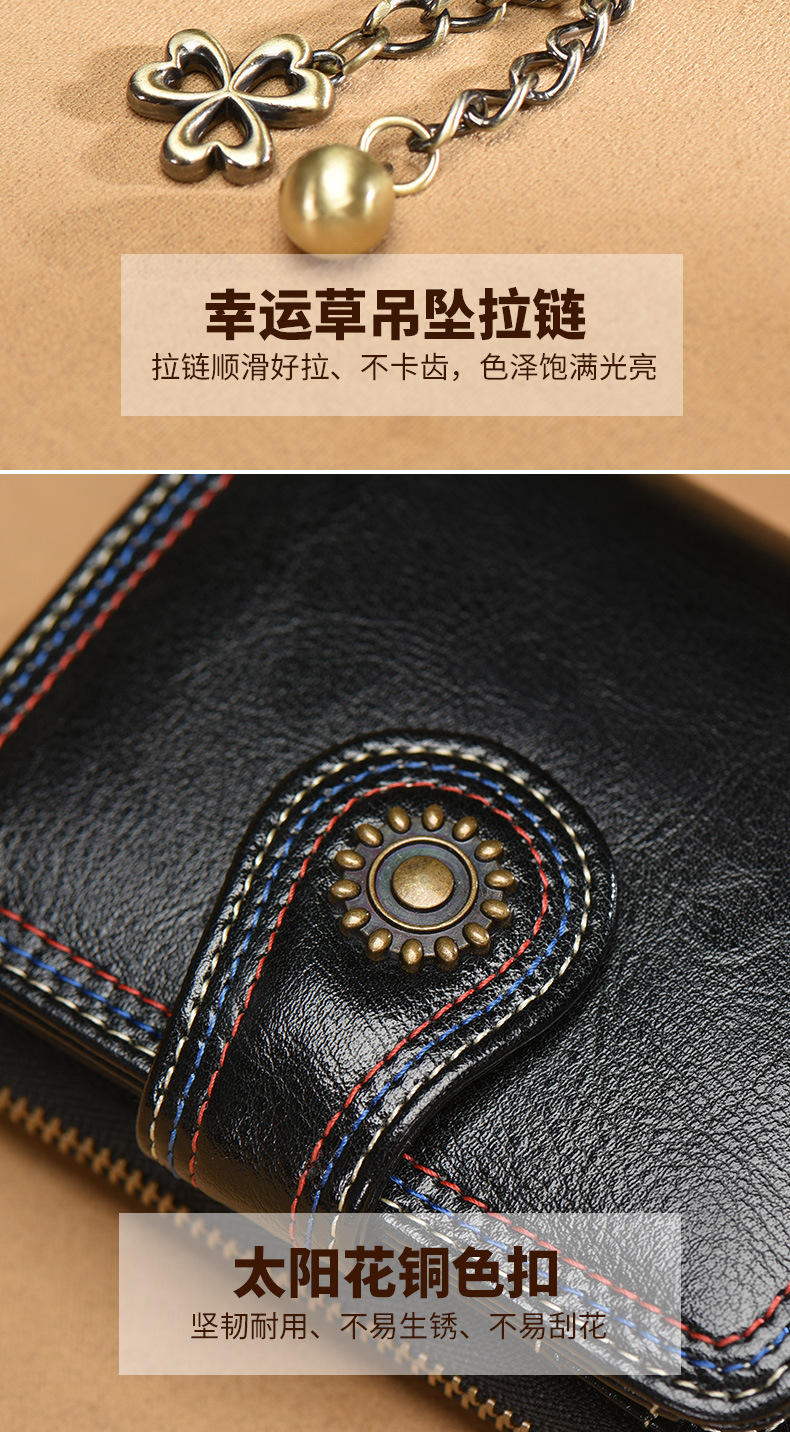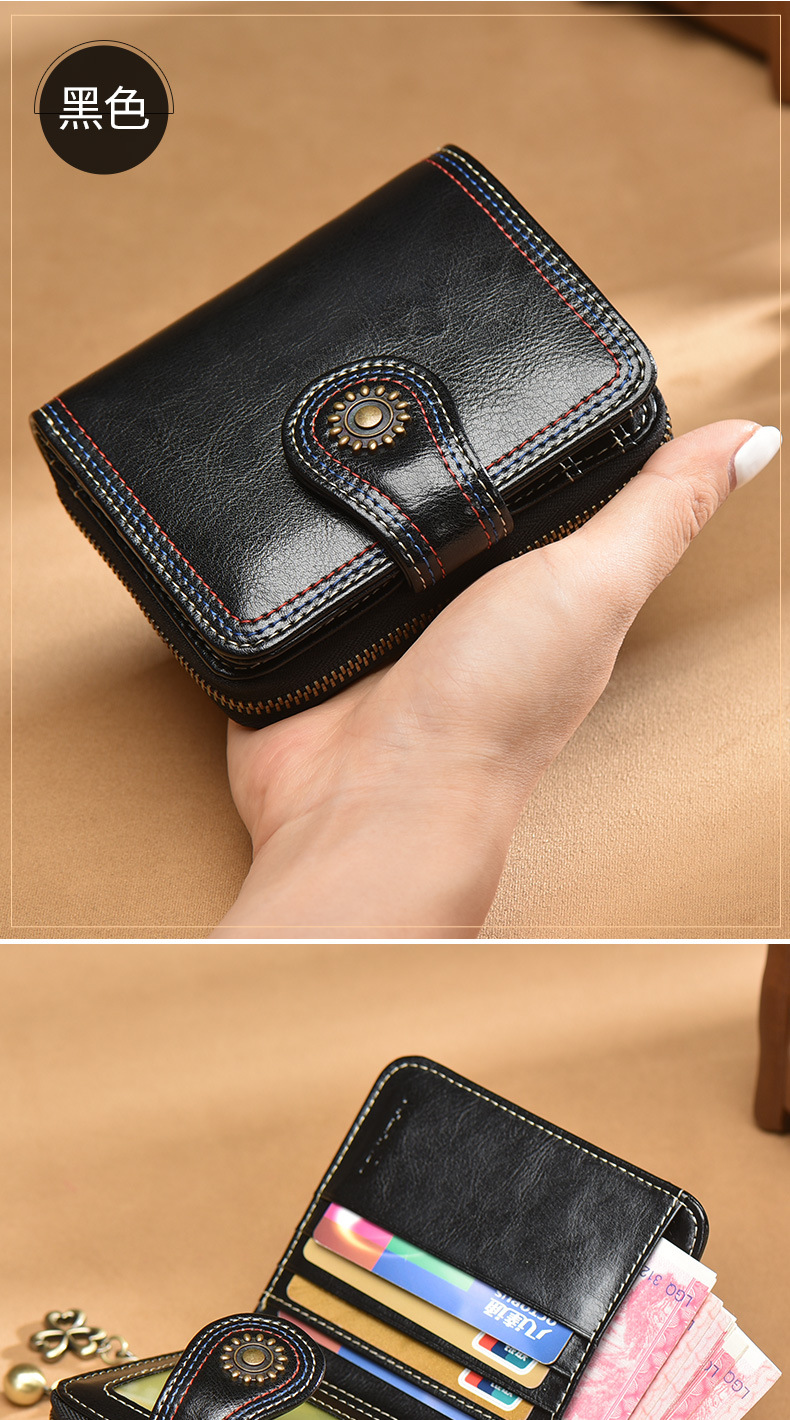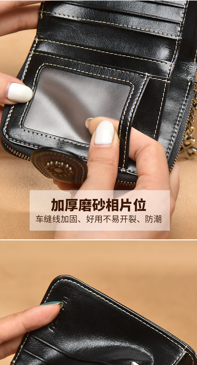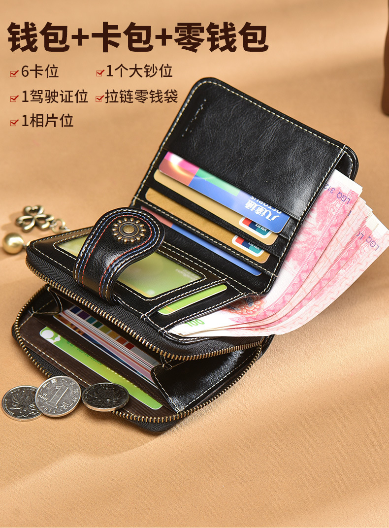 纳兰杜真牛皮短款钱包女新款折叠迷你小零钱包轻巧潮钱夹女