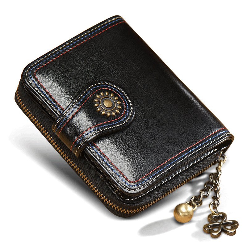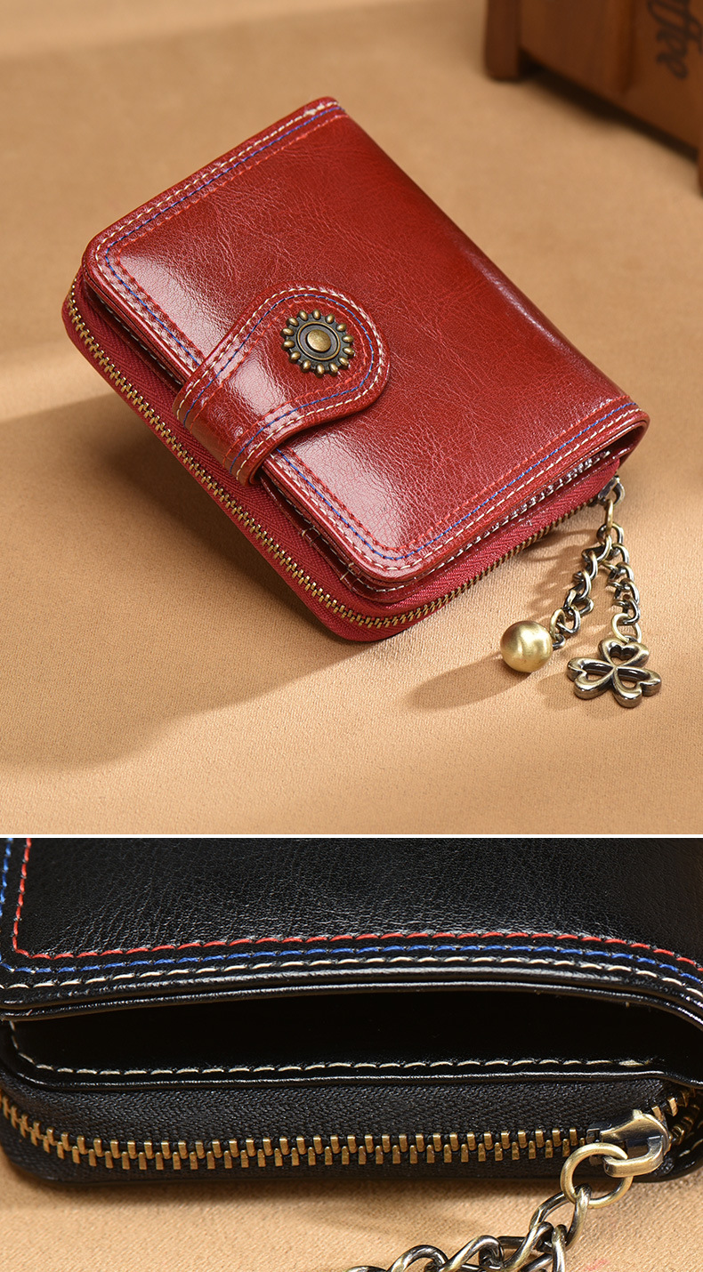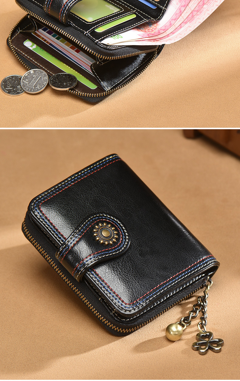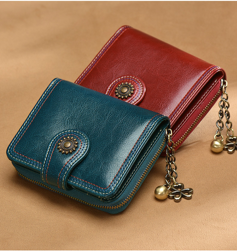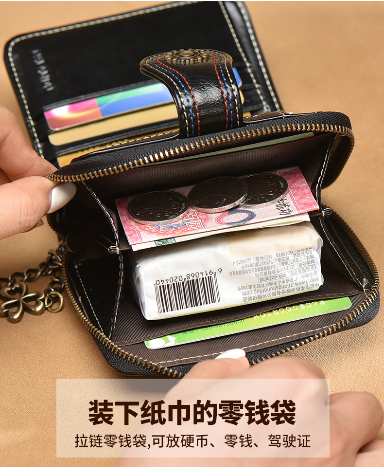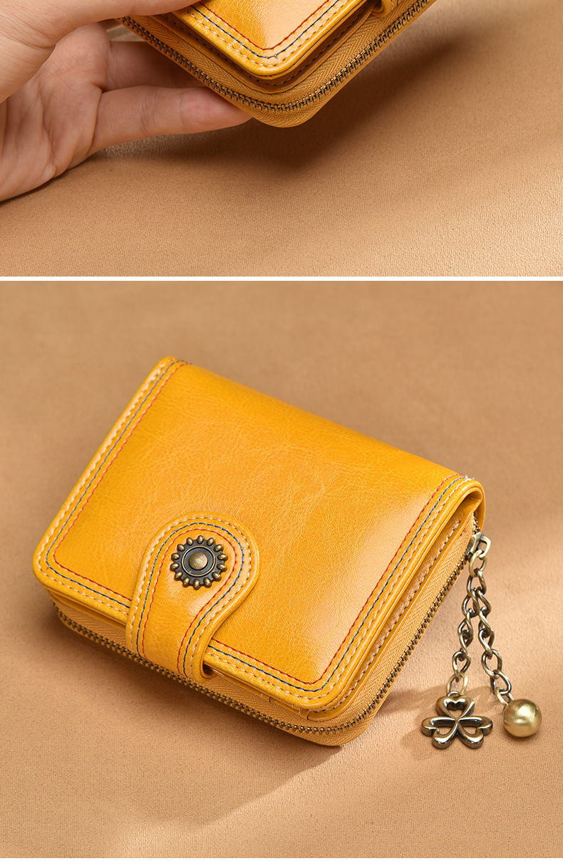 纳兰杜真牛皮短款钱包女新款折叠迷你小零钱包轻巧潮钱夹女