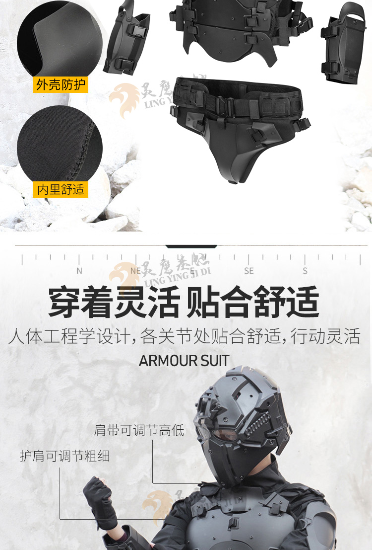 靈鷹盔甲套裝多功能迷彩馬甲防暴護肘胸襠戶外戰術背心護甲