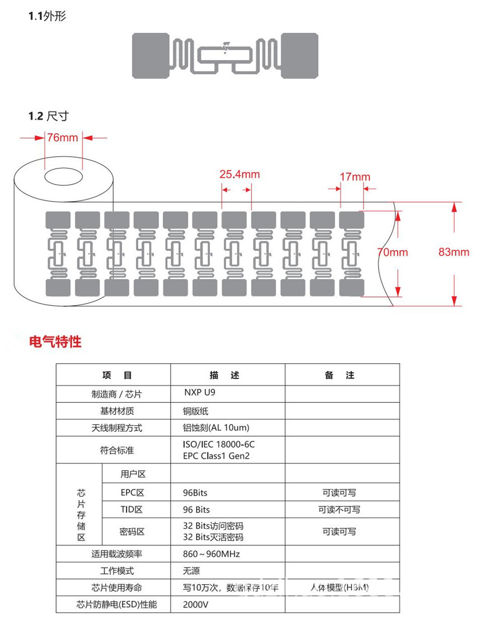 9662干inay超高频电子标签远距离智能识别巡检rfid防盗标签