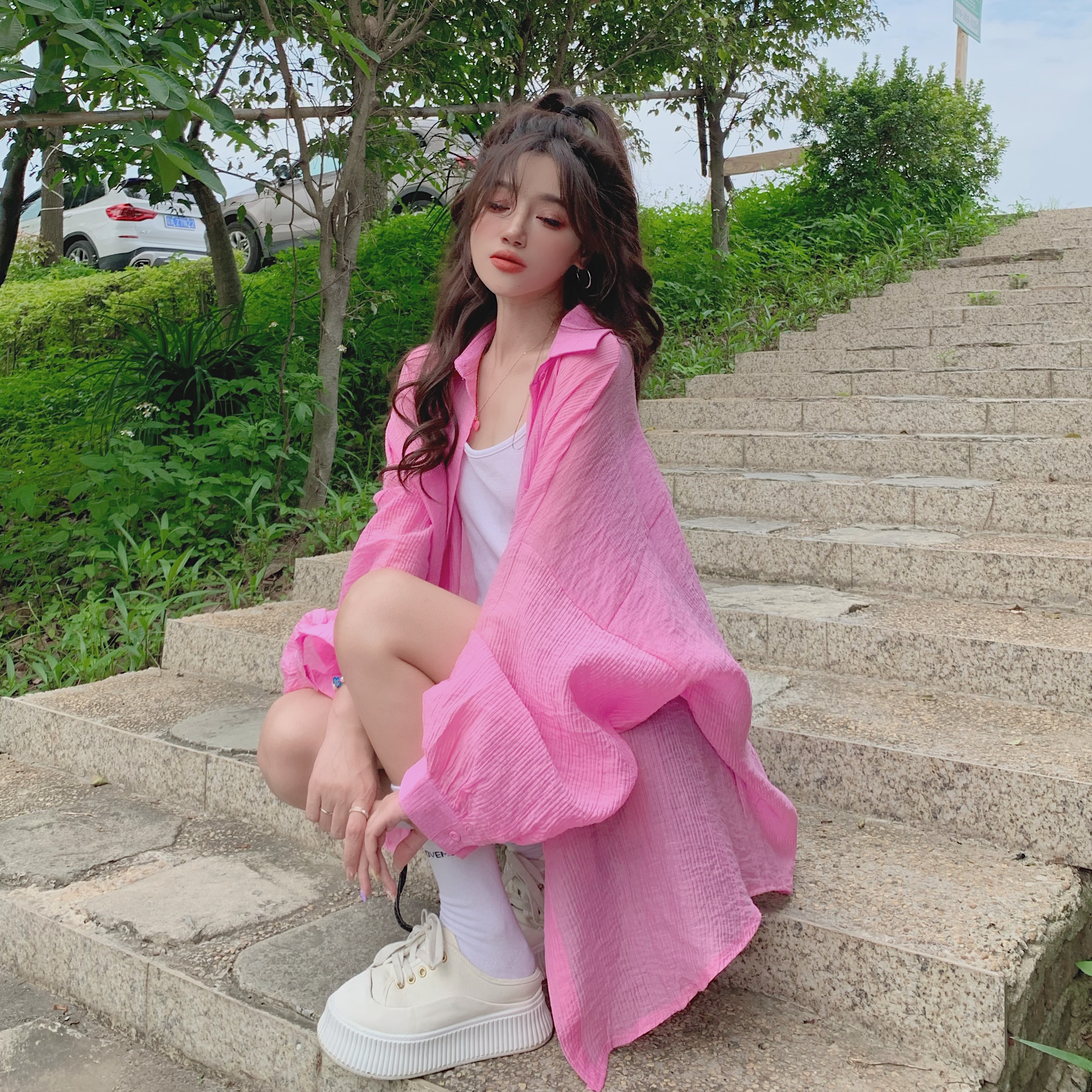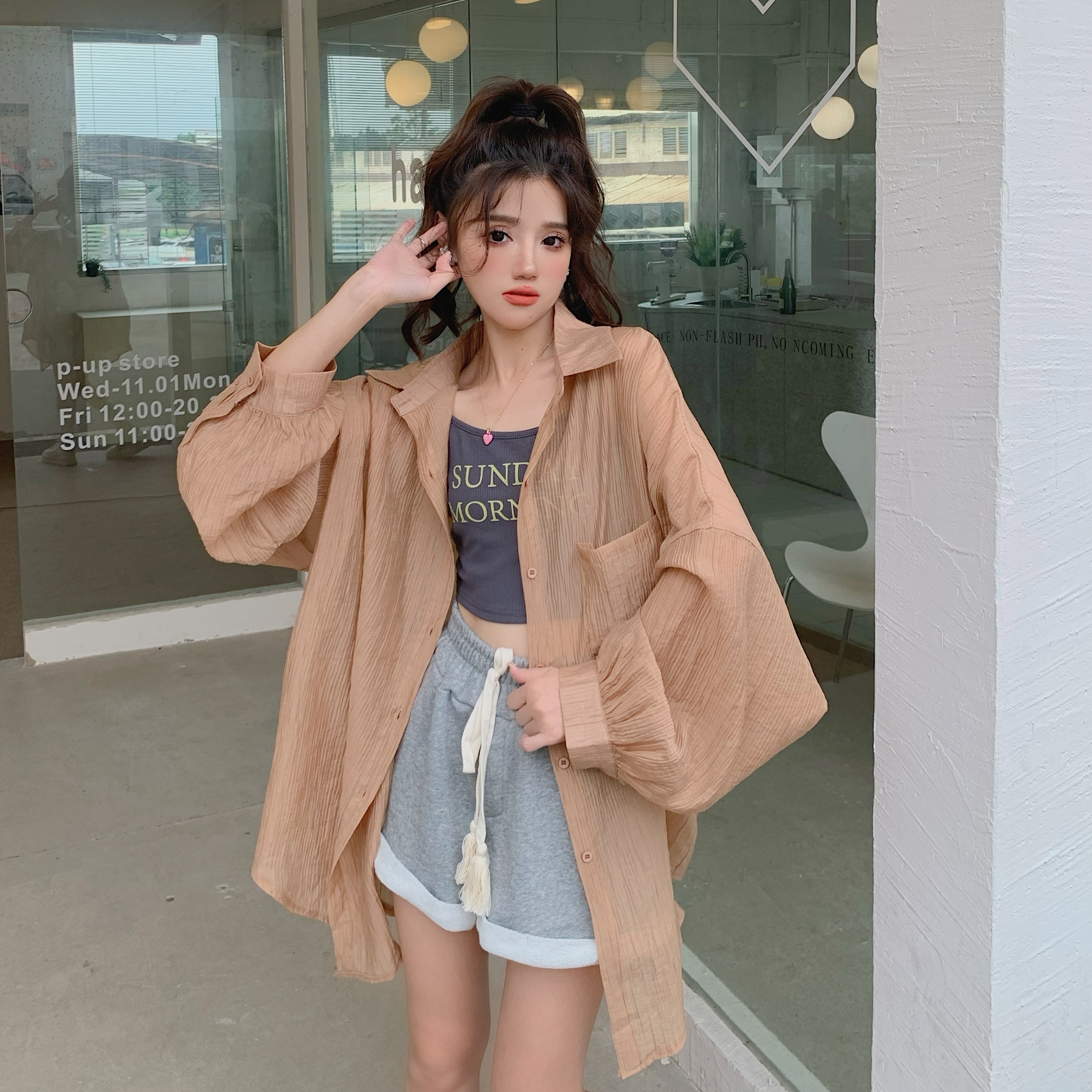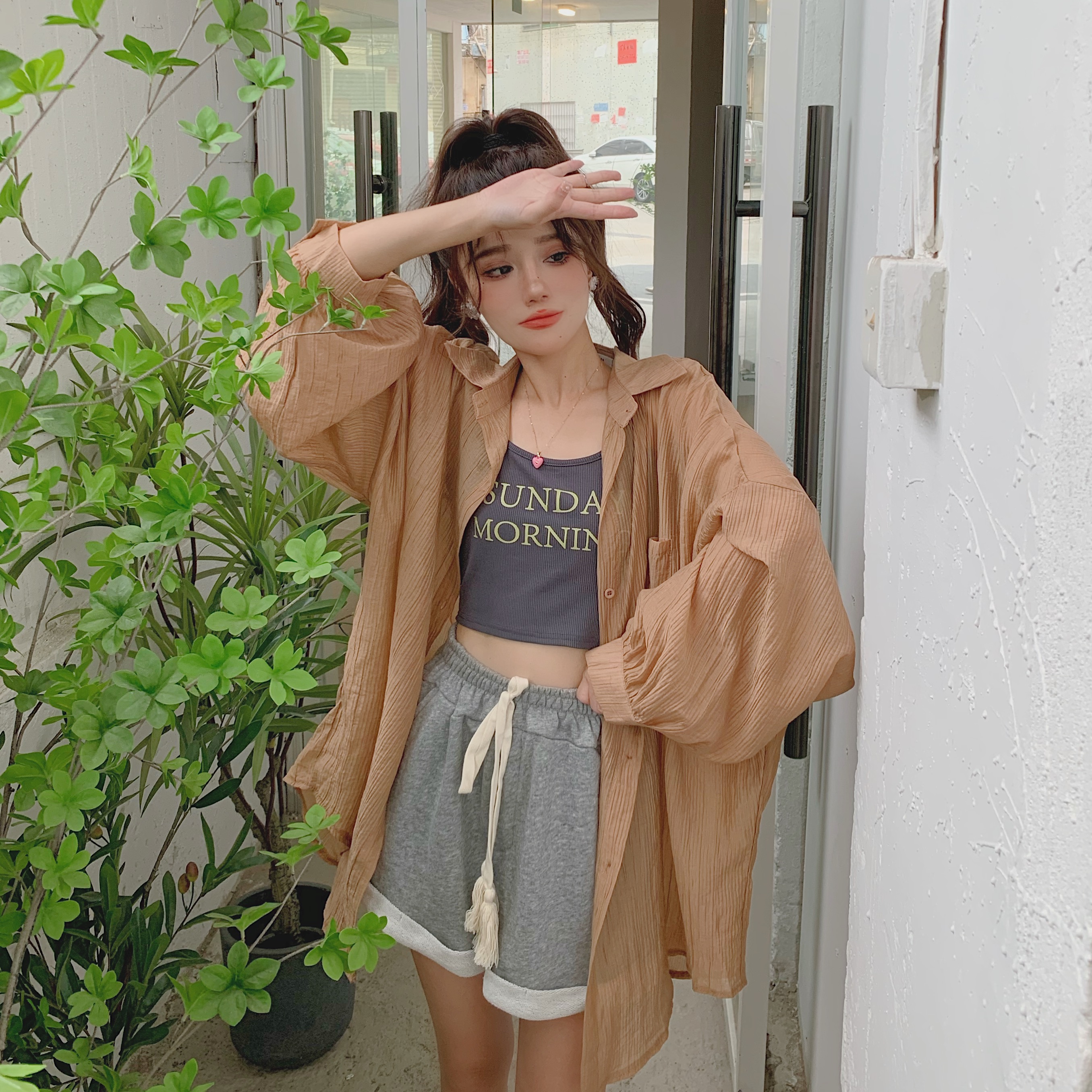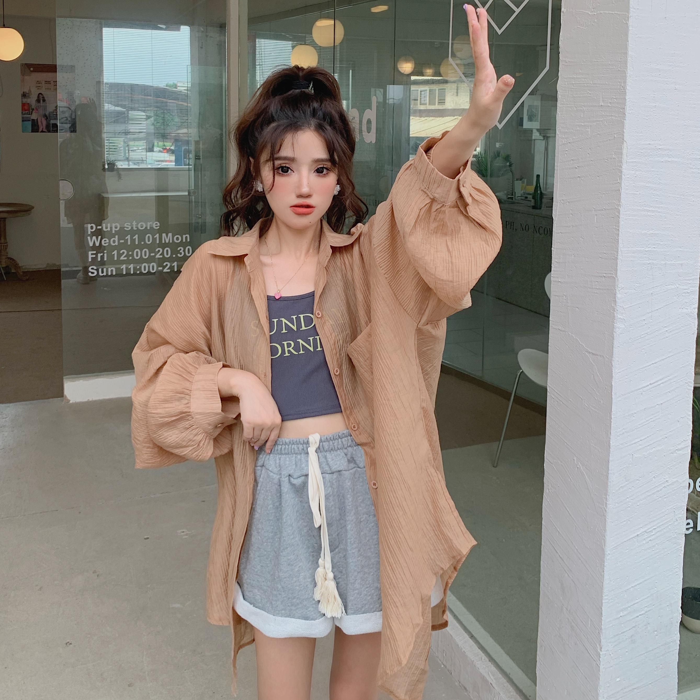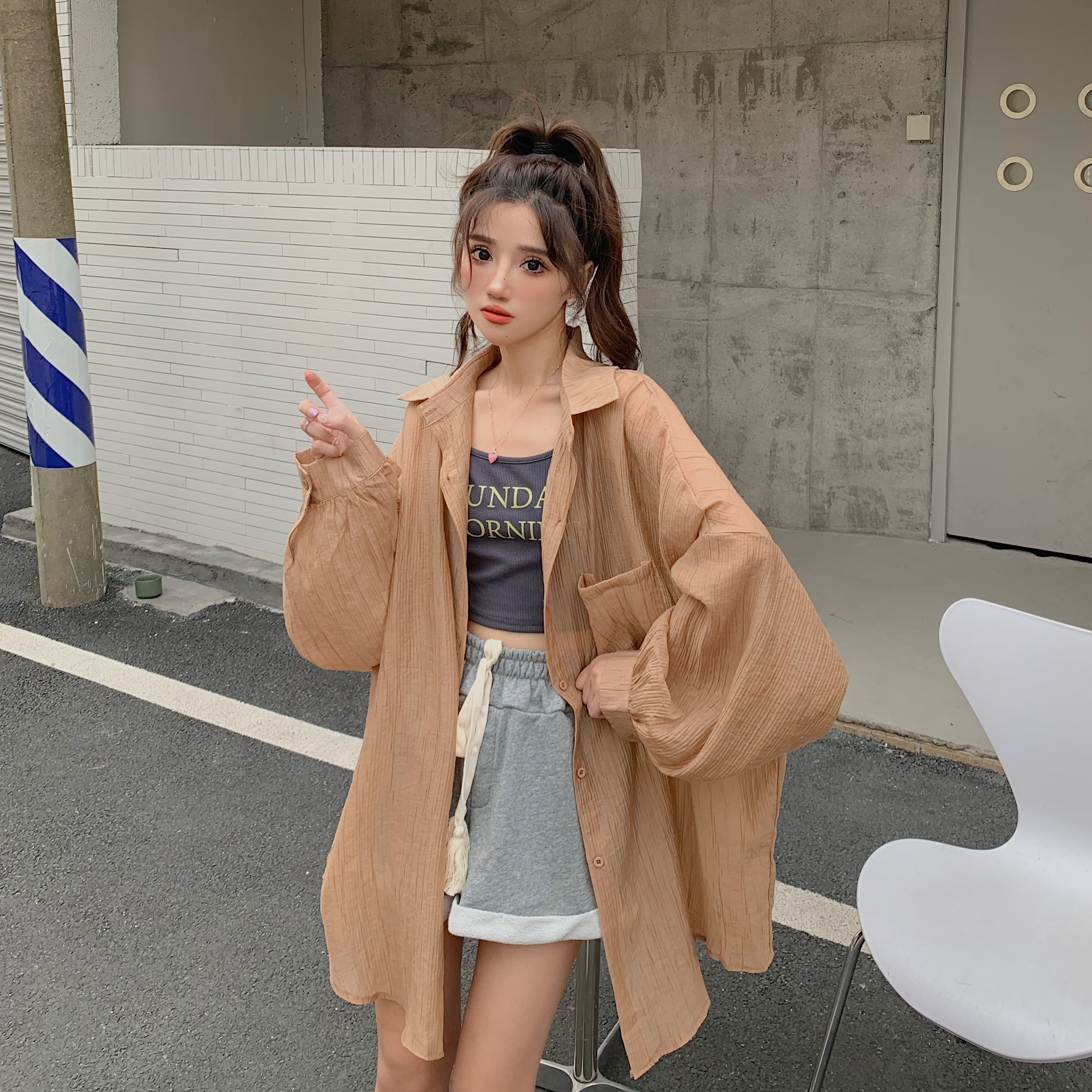 200斤胖妹妹女裝夏季ins壓皺薄款長袖襯衫加肥加大碼學生防曬襯衫