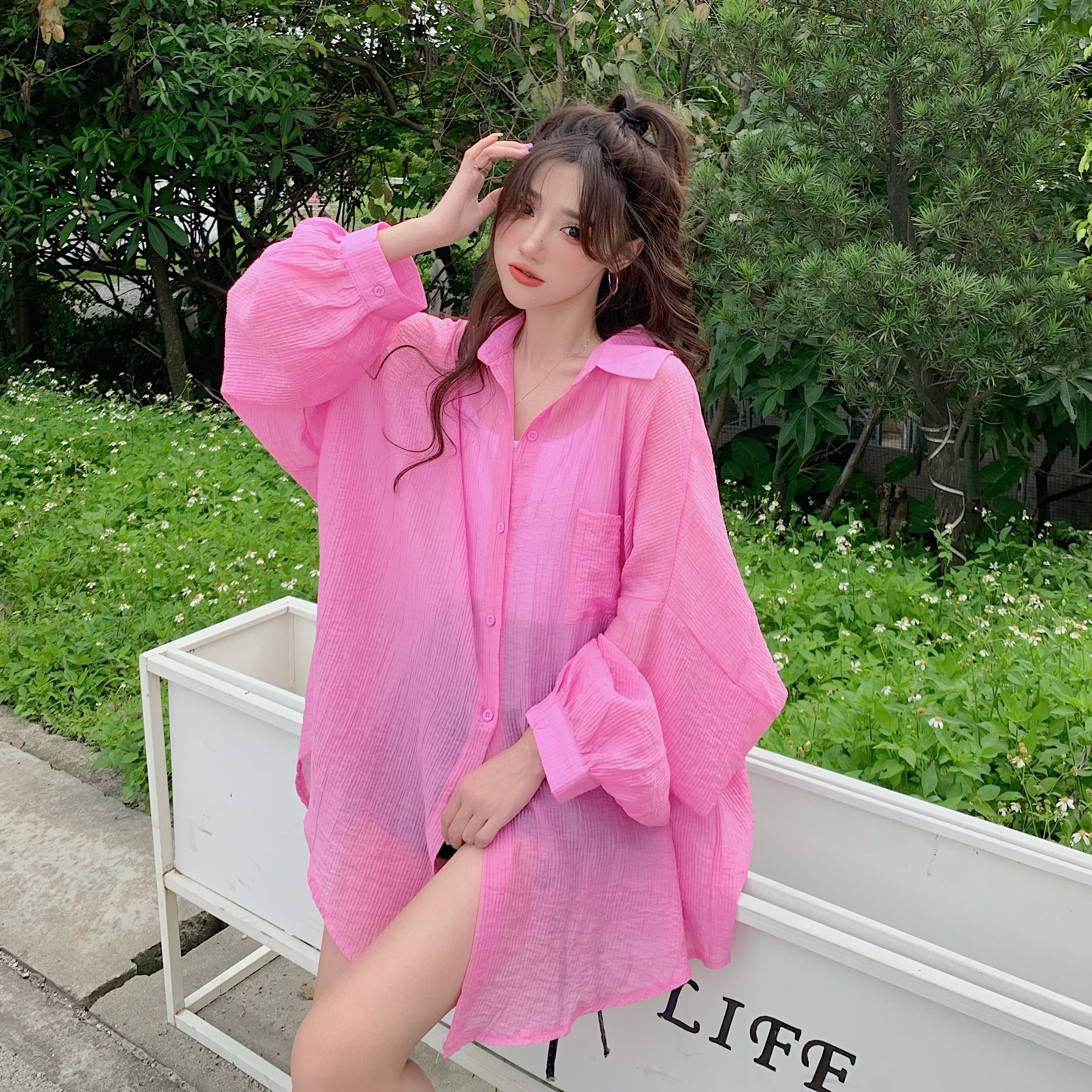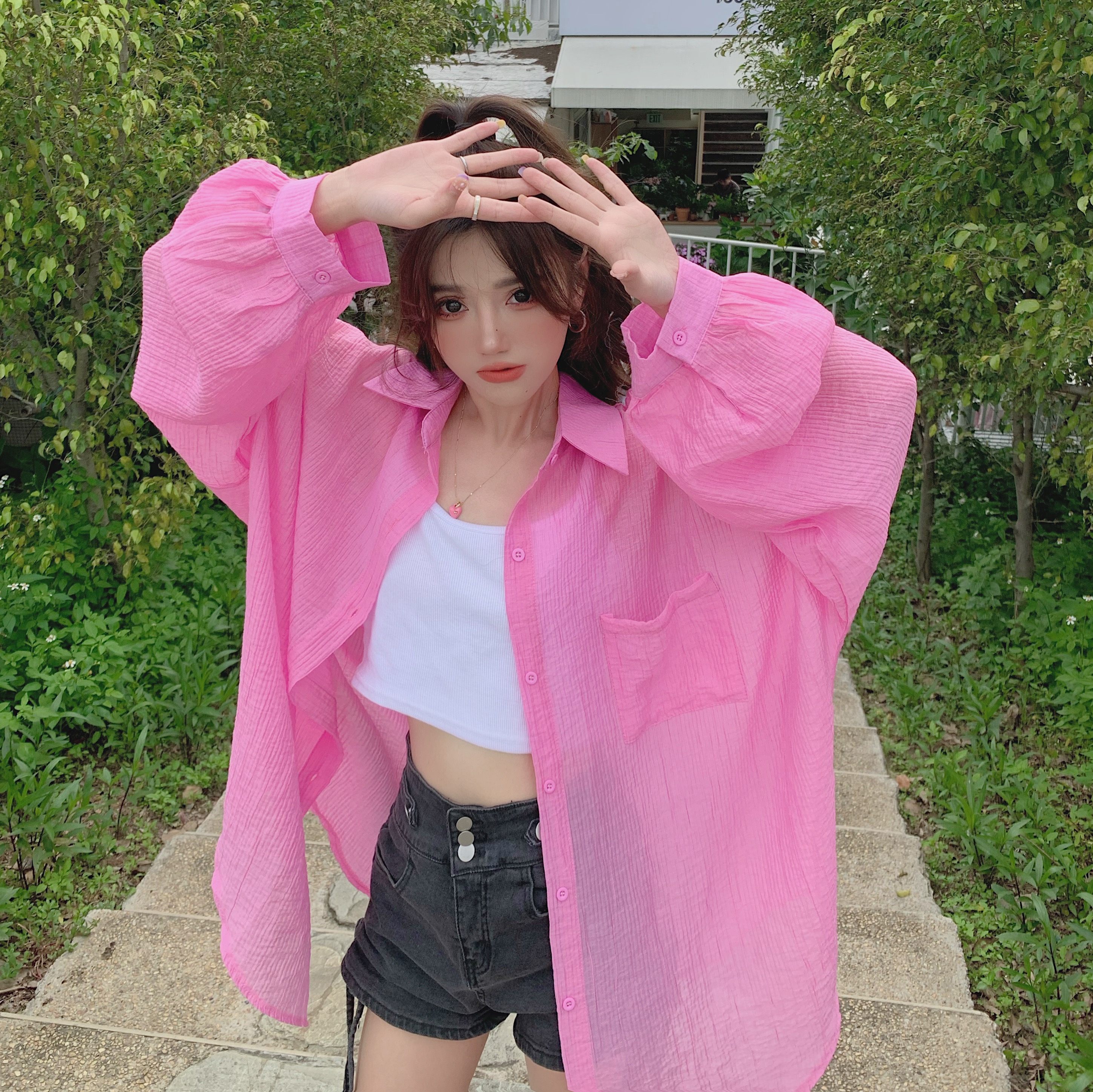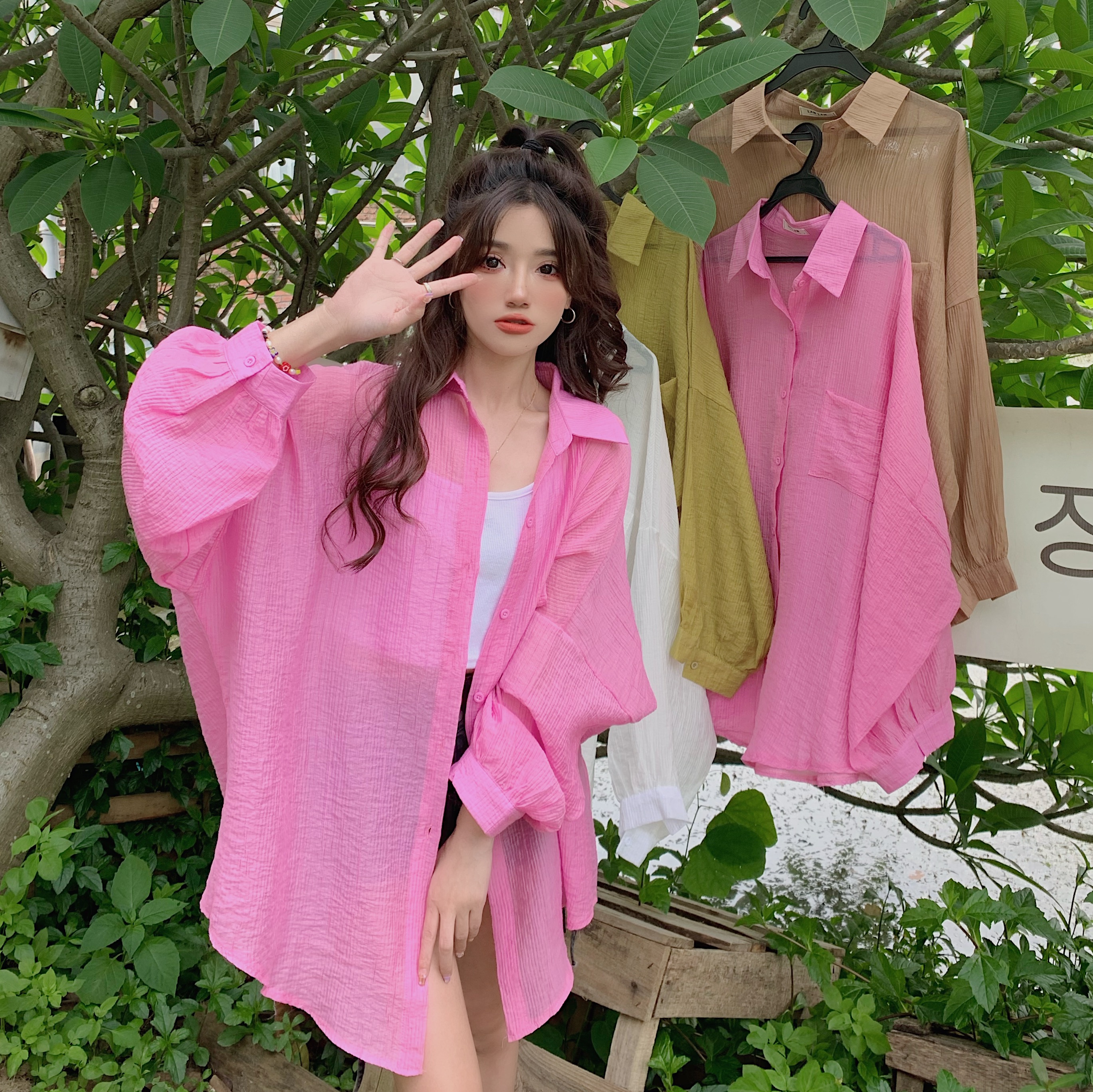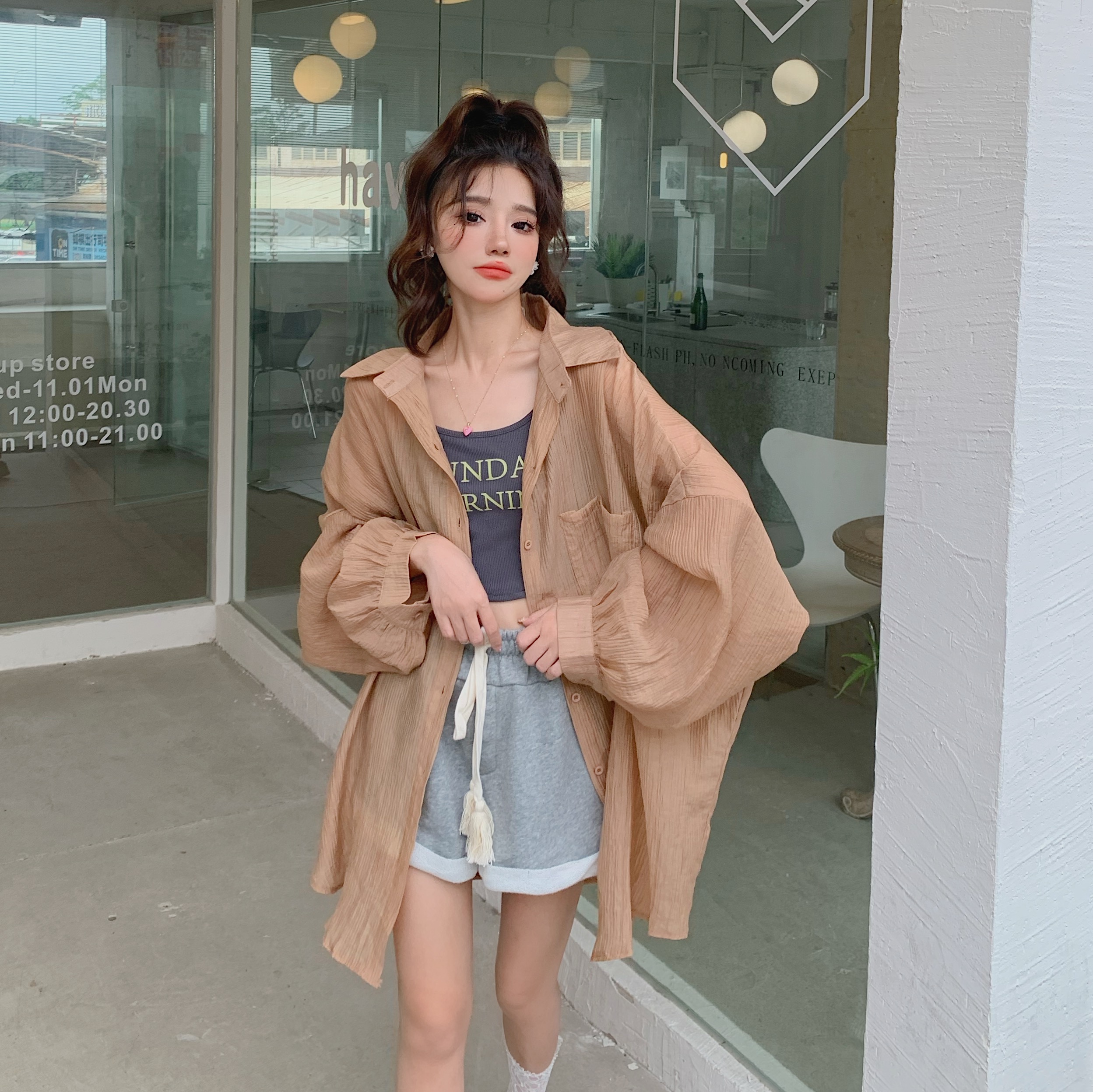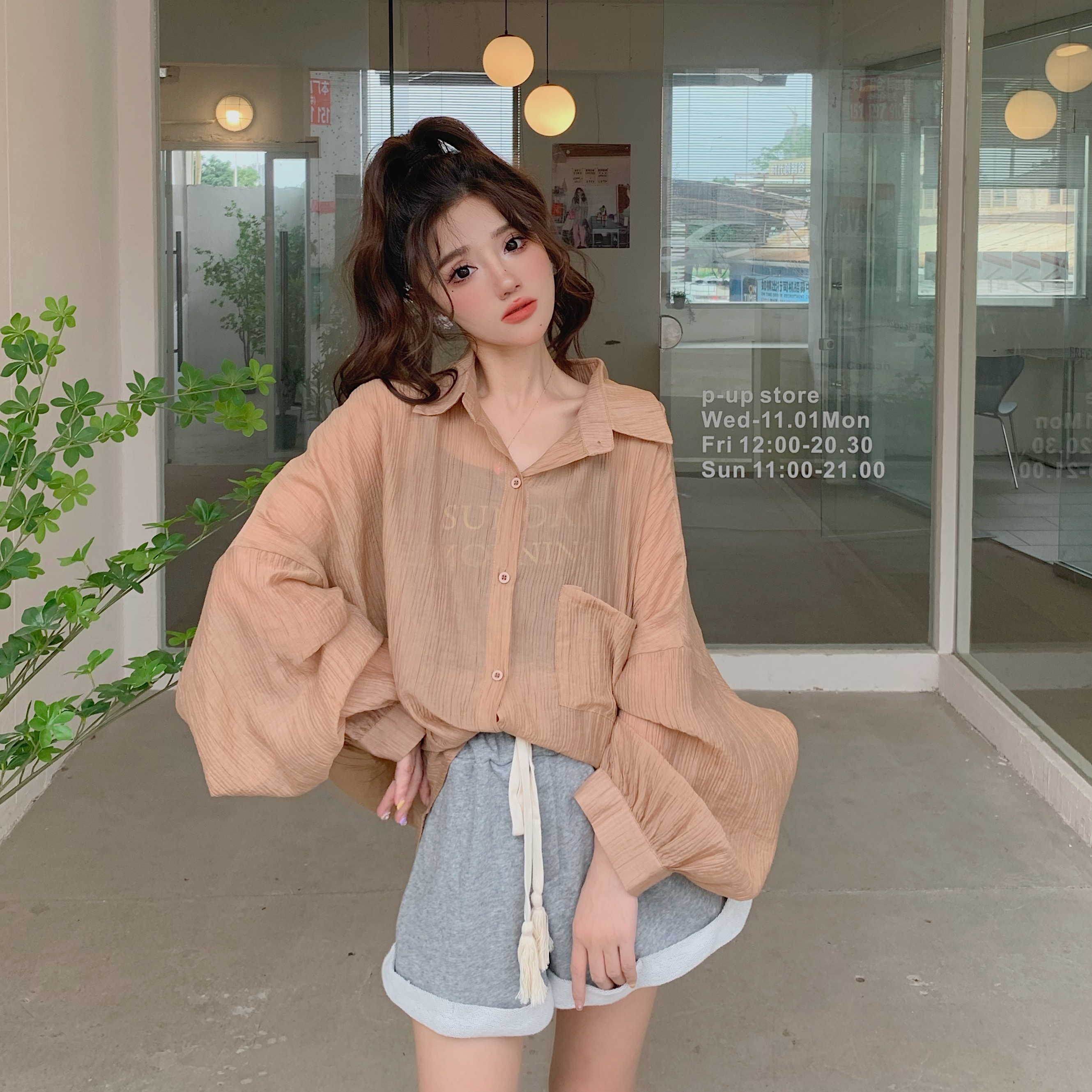 200斤胖妹妹女裝夏季ins壓皺薄款長袖襯衫加肥加大碼學生防曬襯衫