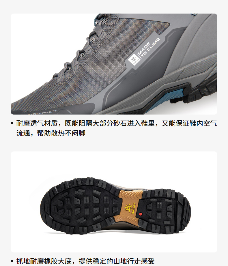 凱樂石登山鞋女中筒FLT防水徒步鞋防滑耐磨透氣跑山鞋男/地平線