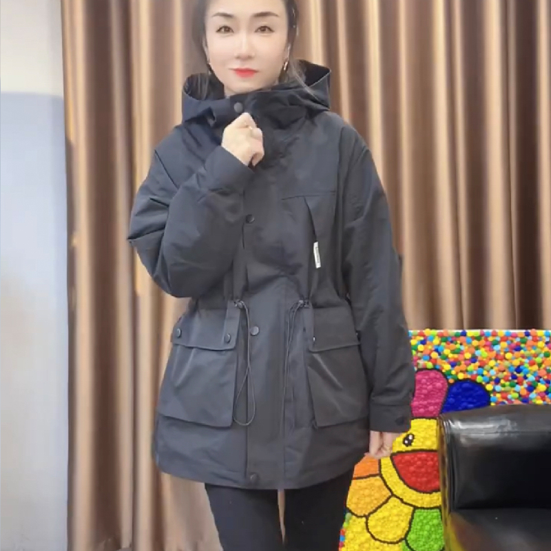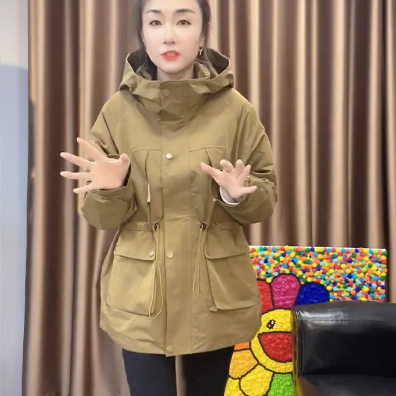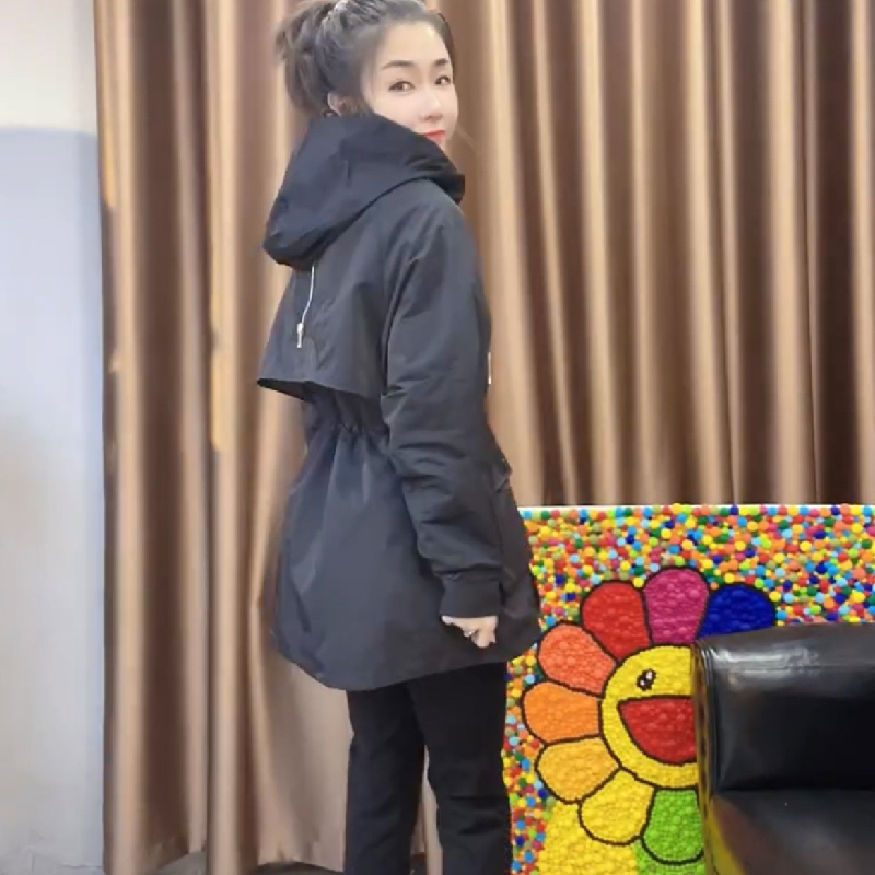 風衣外套女2023春秋新款時尚夾棉收腰休閒工作服薄棉服中長版衝鋒衣