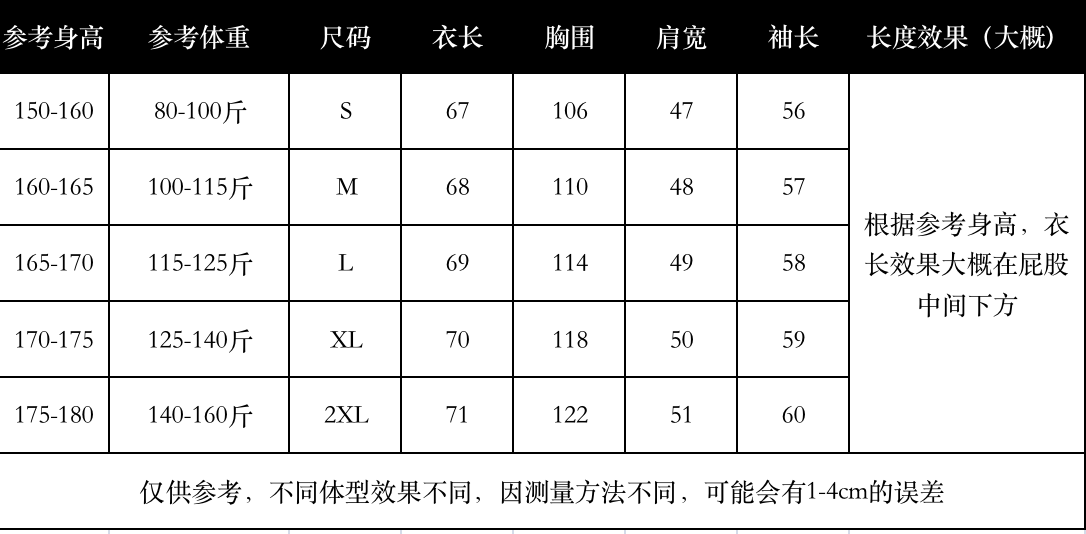 衣長 常規