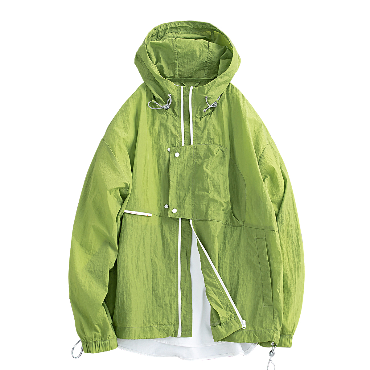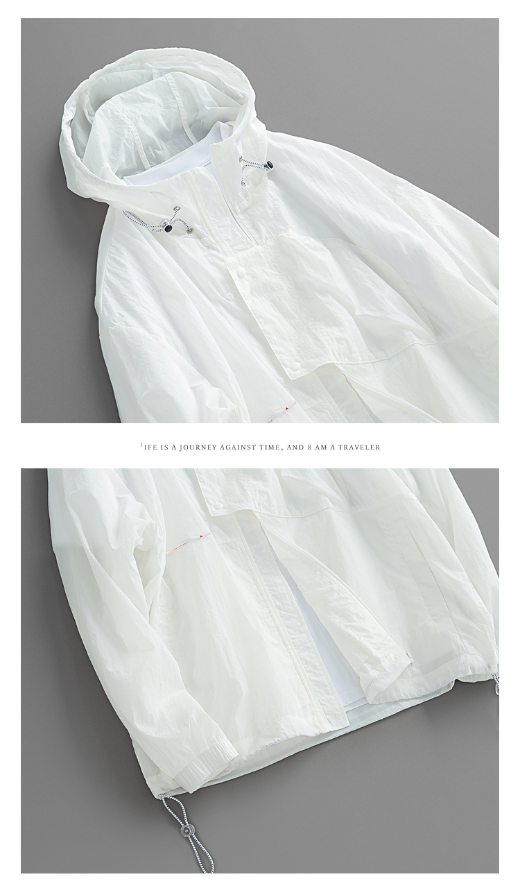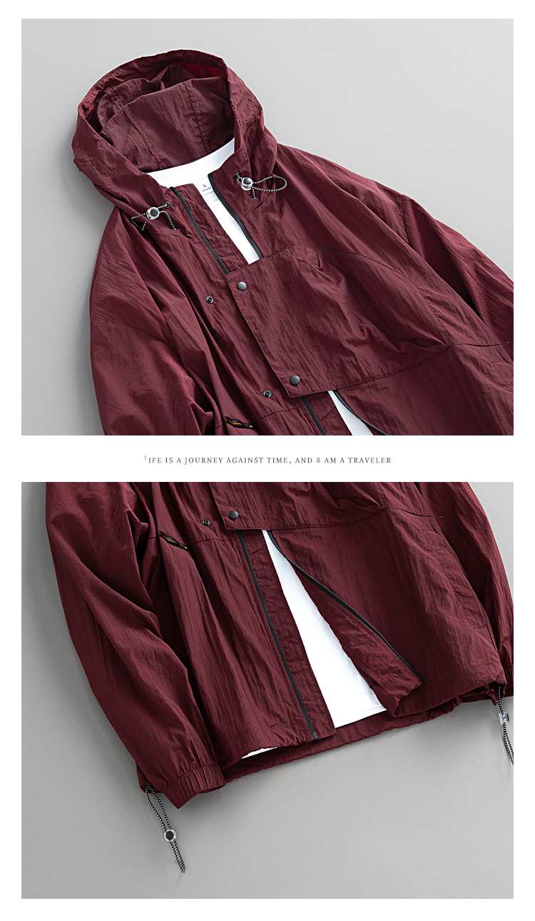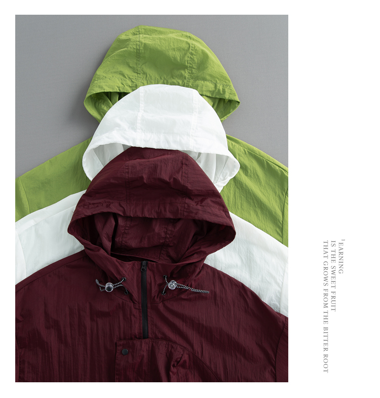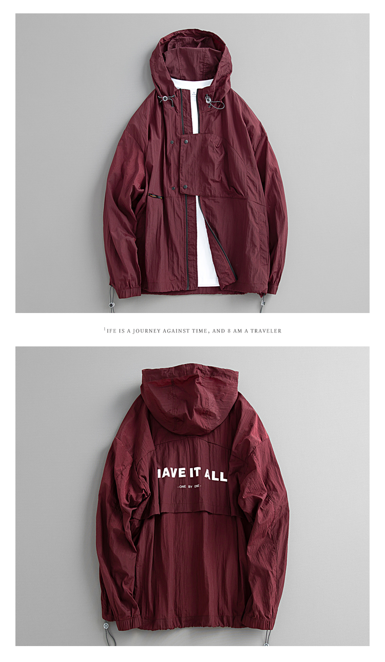 元古 清涼色塊面感日系連帽防曬服外套 夏季輕薄抽繩寬鬆夾克男潮