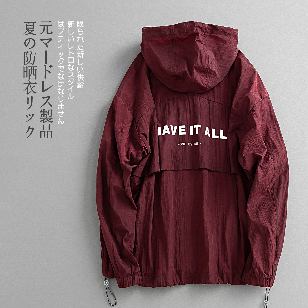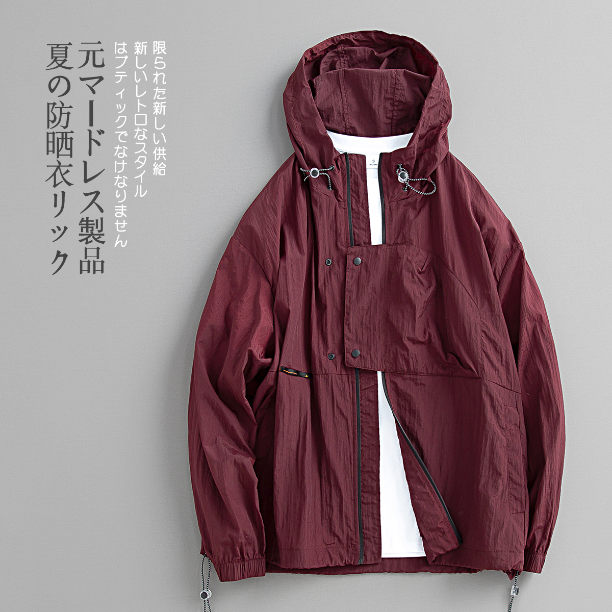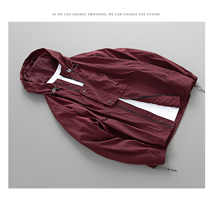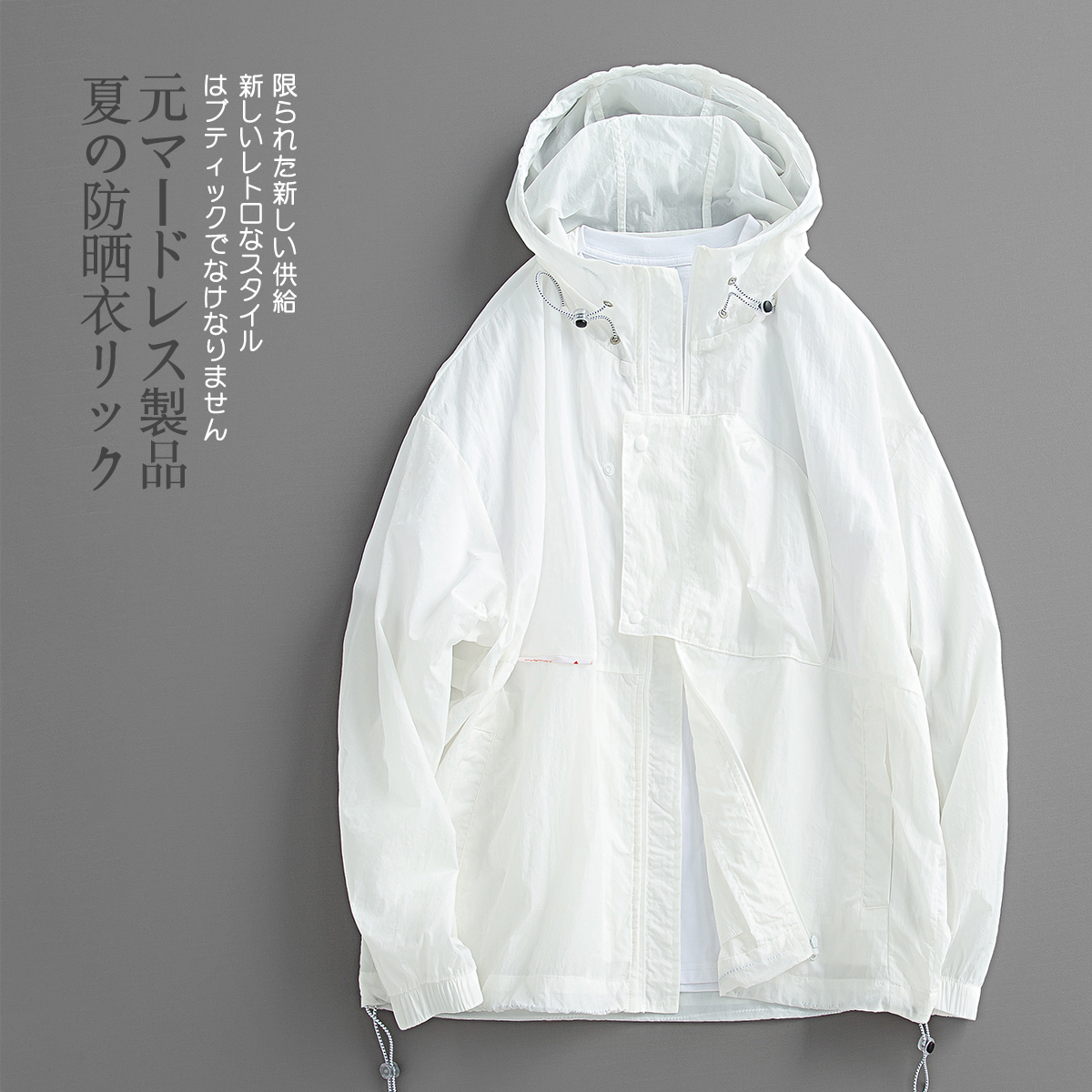 元古 清涼色塊面感日系連帽防曬服外套 夏季輕薄抽繩寬鬆夾克男潮