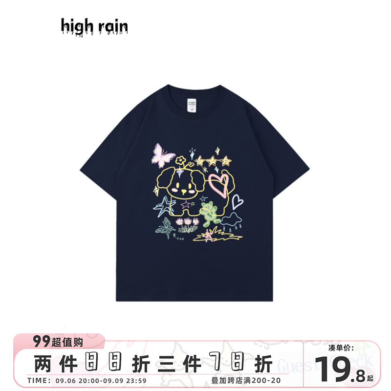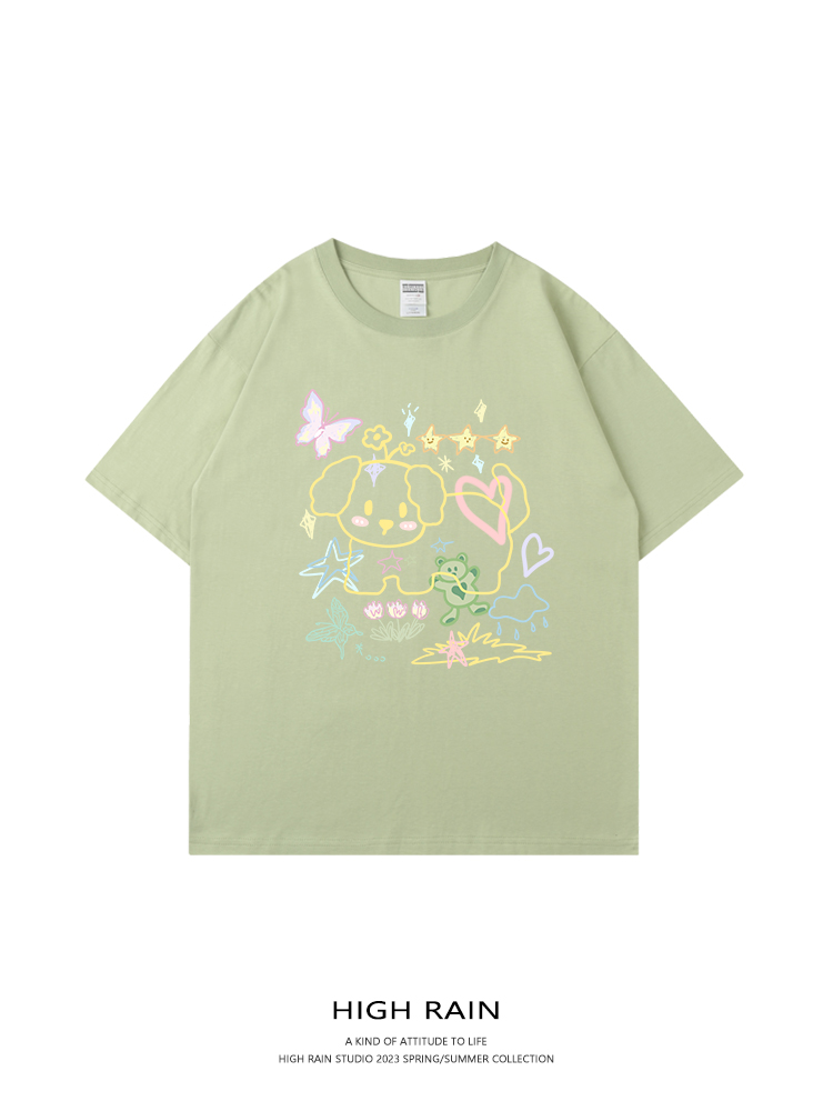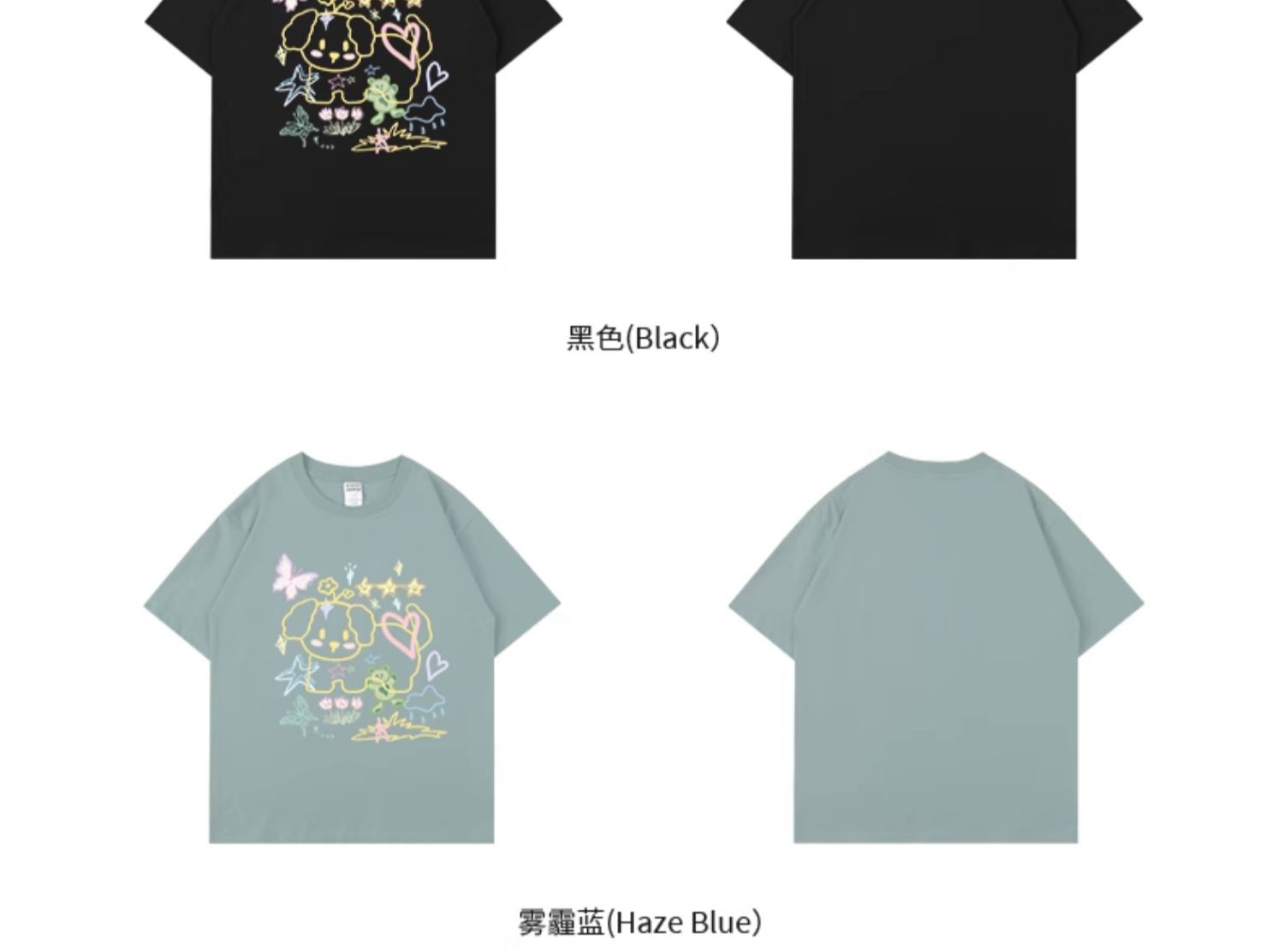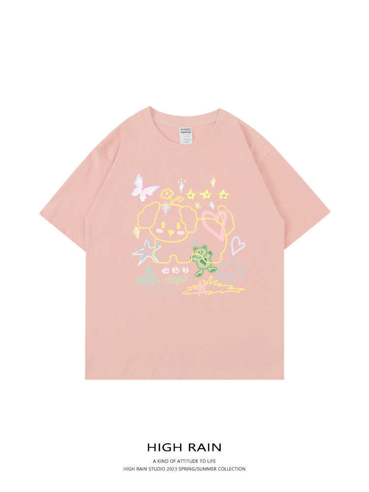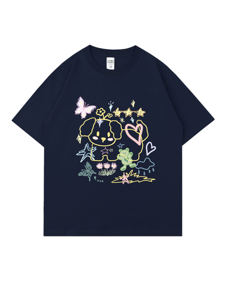 很潤工作室 設計感塗鴉狗狗短袖男女純棉T恤簡約分寬鬆情侶上衣