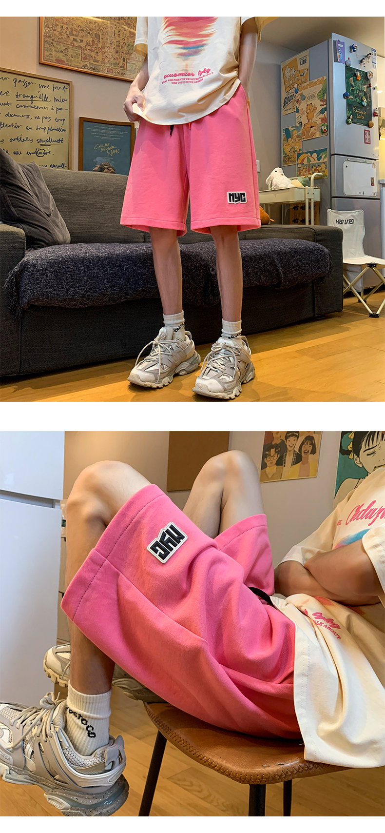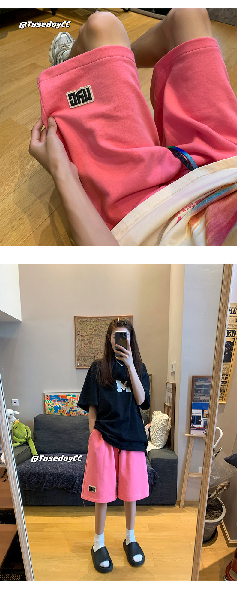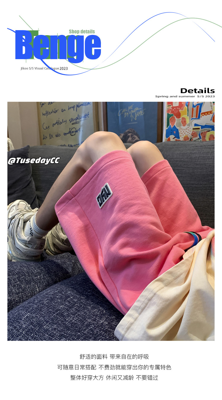 多巴胺粉色運動短褲女2023新款夏季薄款五分褲子寬鬆休閒純棉五分褲