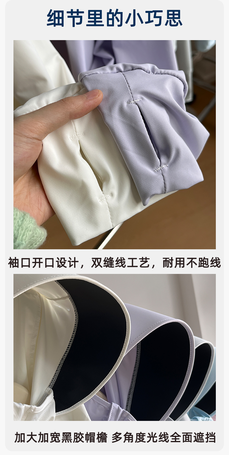 顏色分類 奶白色(黑膠帽簷),淺灰色(黑膠帽簷),淡黃色(黑膠帽簷),深灰色(黑膠帽簷),高級灰(黑膠帽簷),櫻花粉(黑膠帽簷),淡紫色(黑膠帽簷),天藍色(黑膠帽簷),卡其色(黑膠帽簷),墨綠色(黑膠帽簷),淡黃色(鬥篷款),冷萃白(鬥篷款),淺灰色(鬥篷款)