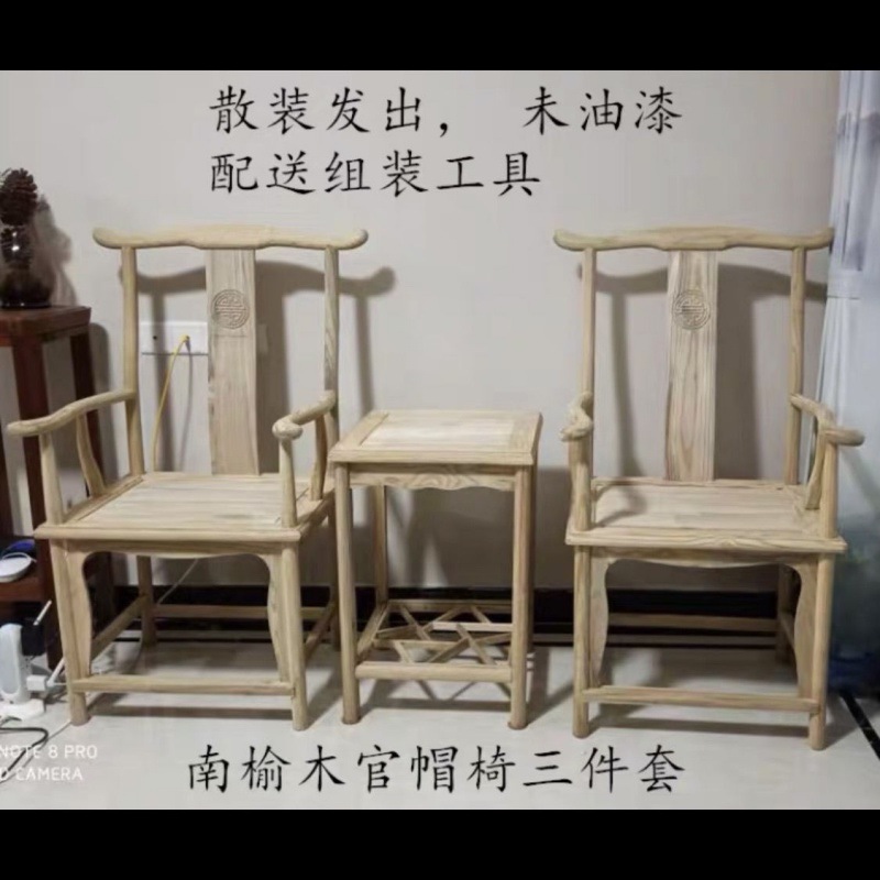 白坯椅榆木椅子实木靠背椅中式餐椅官帽扶手椅子胚圈椅仿古围实木
