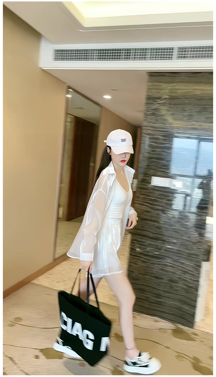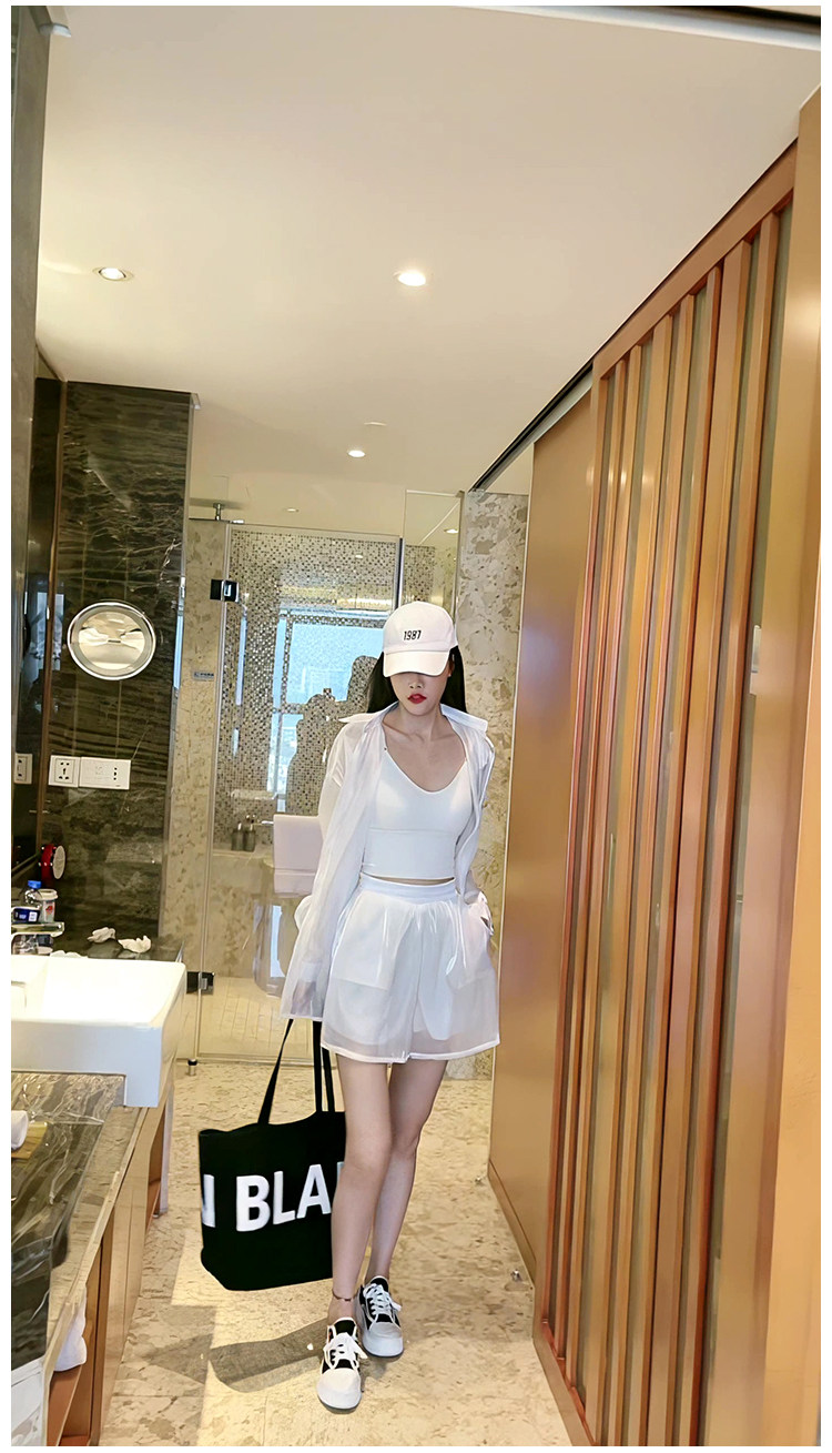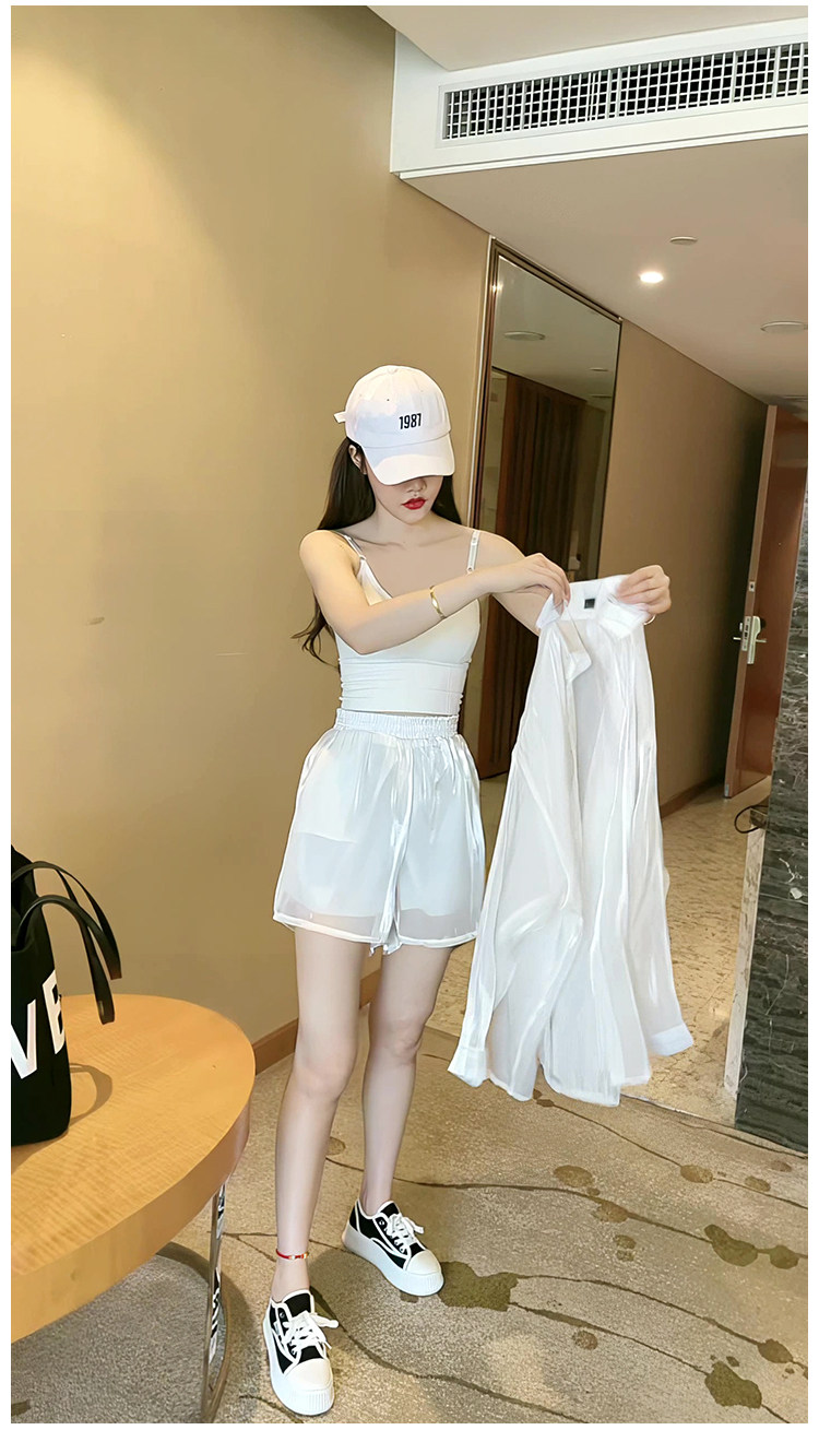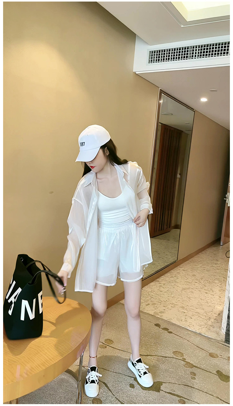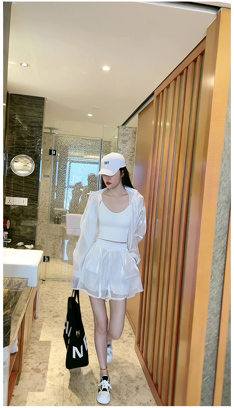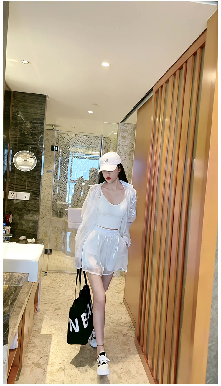 洋派炸街時尚套裝女2023新款人魚姬珠光襯衫防曬衣闊腿短褲兩件套