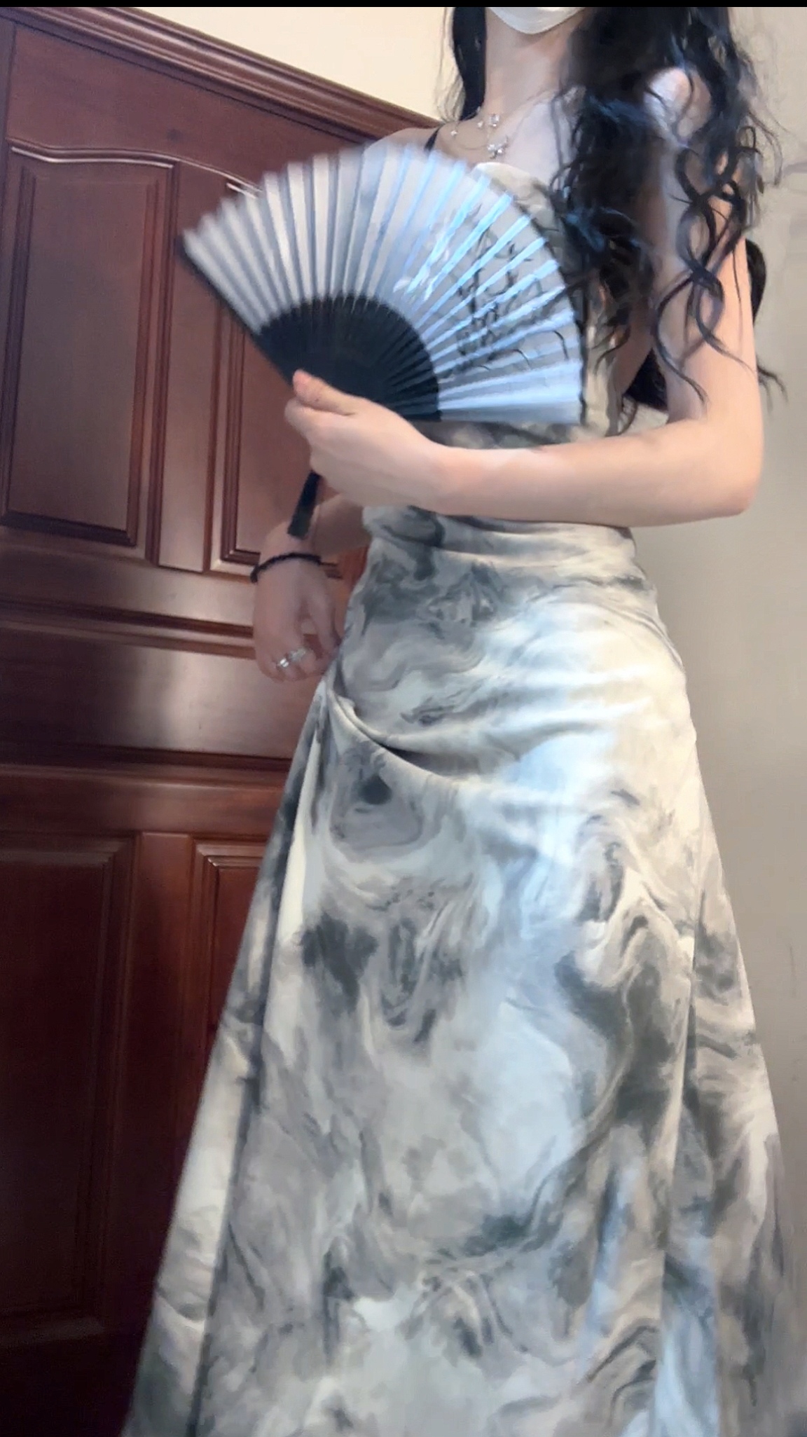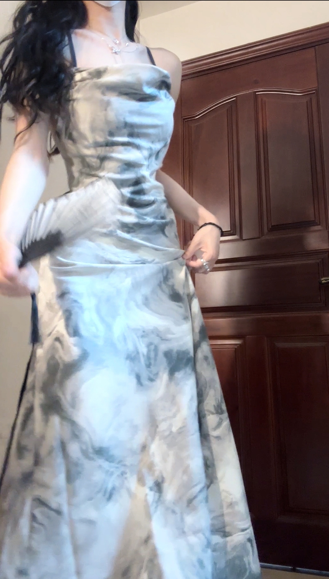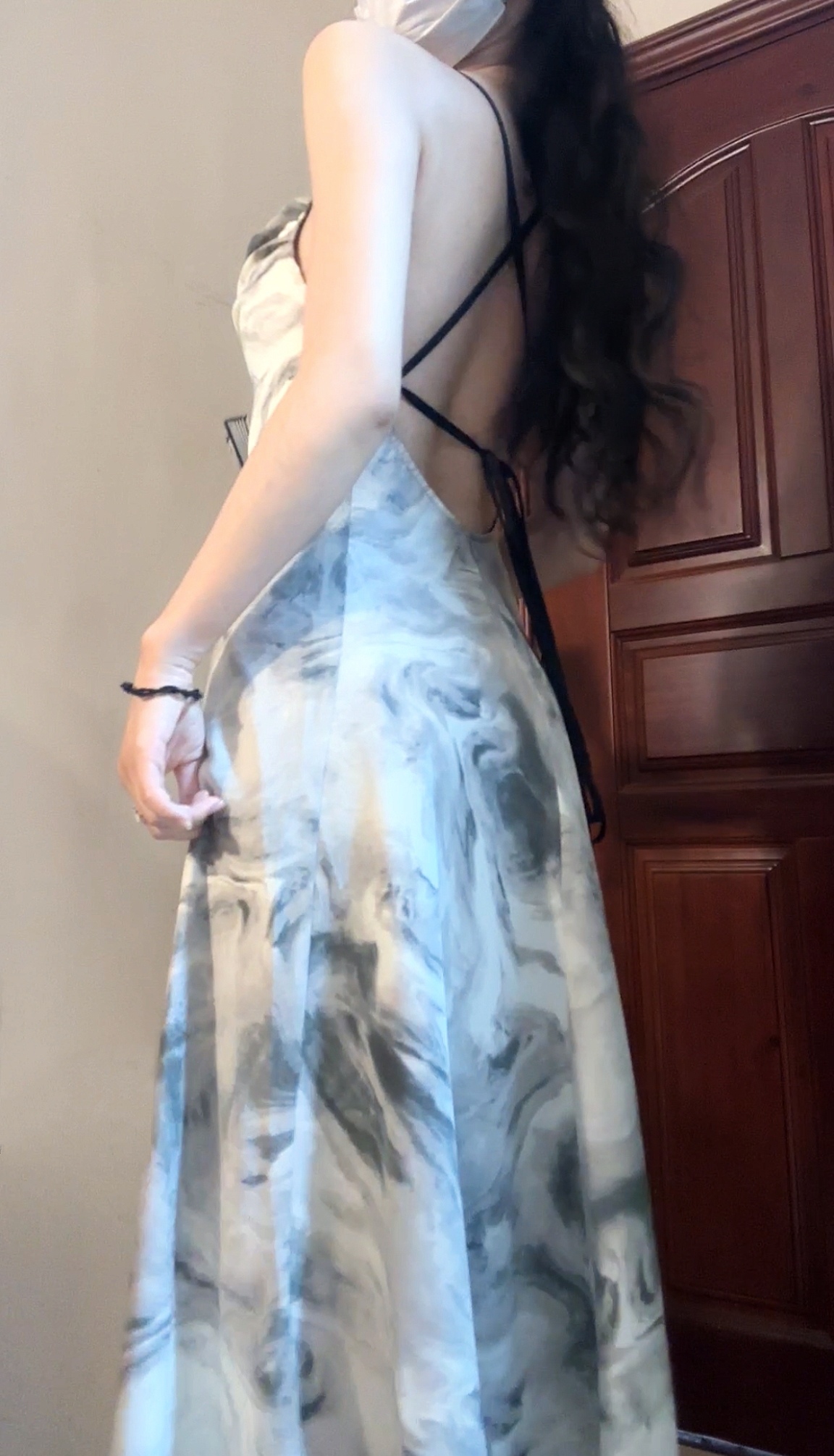 復古水墨畫洋裝女裝夏季純欲風性感露背吊帶裙紮染裙子法式長裙
